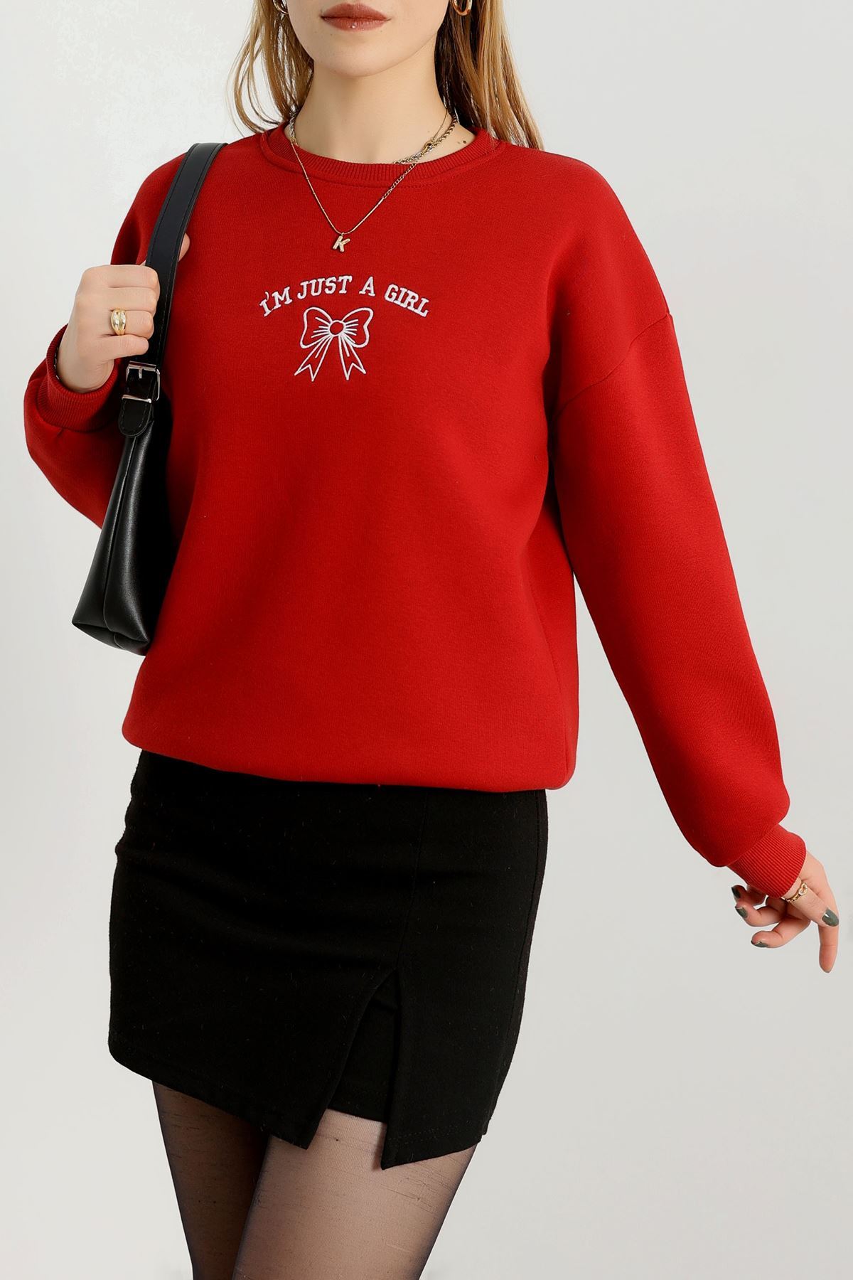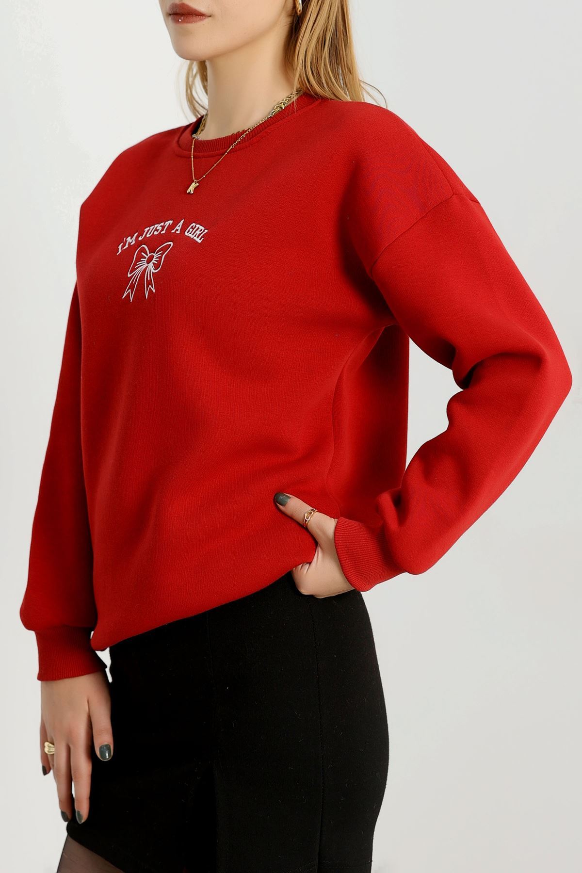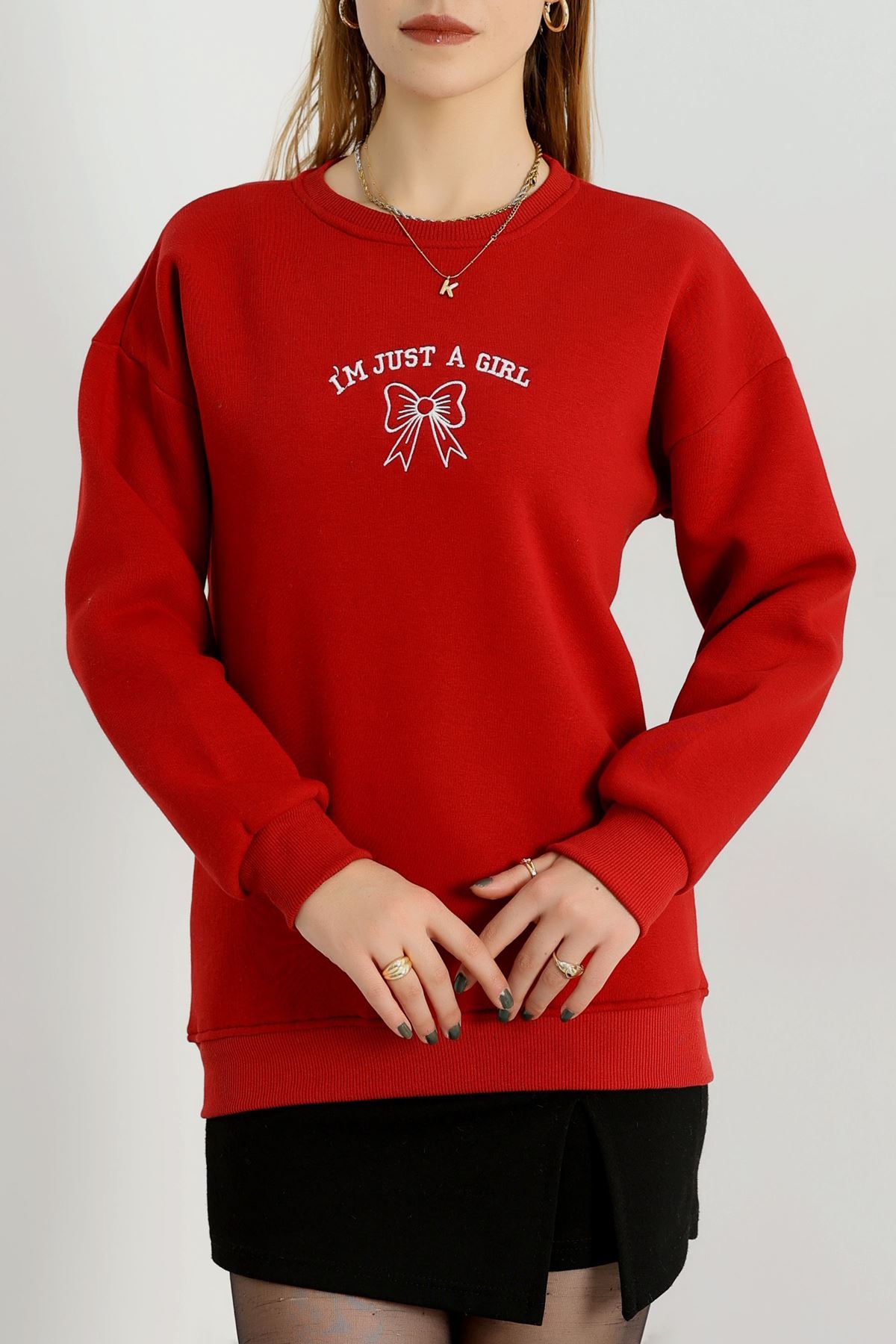 3 İplik Bisiklet Yaka Sweat Bordo - 42245.1878.