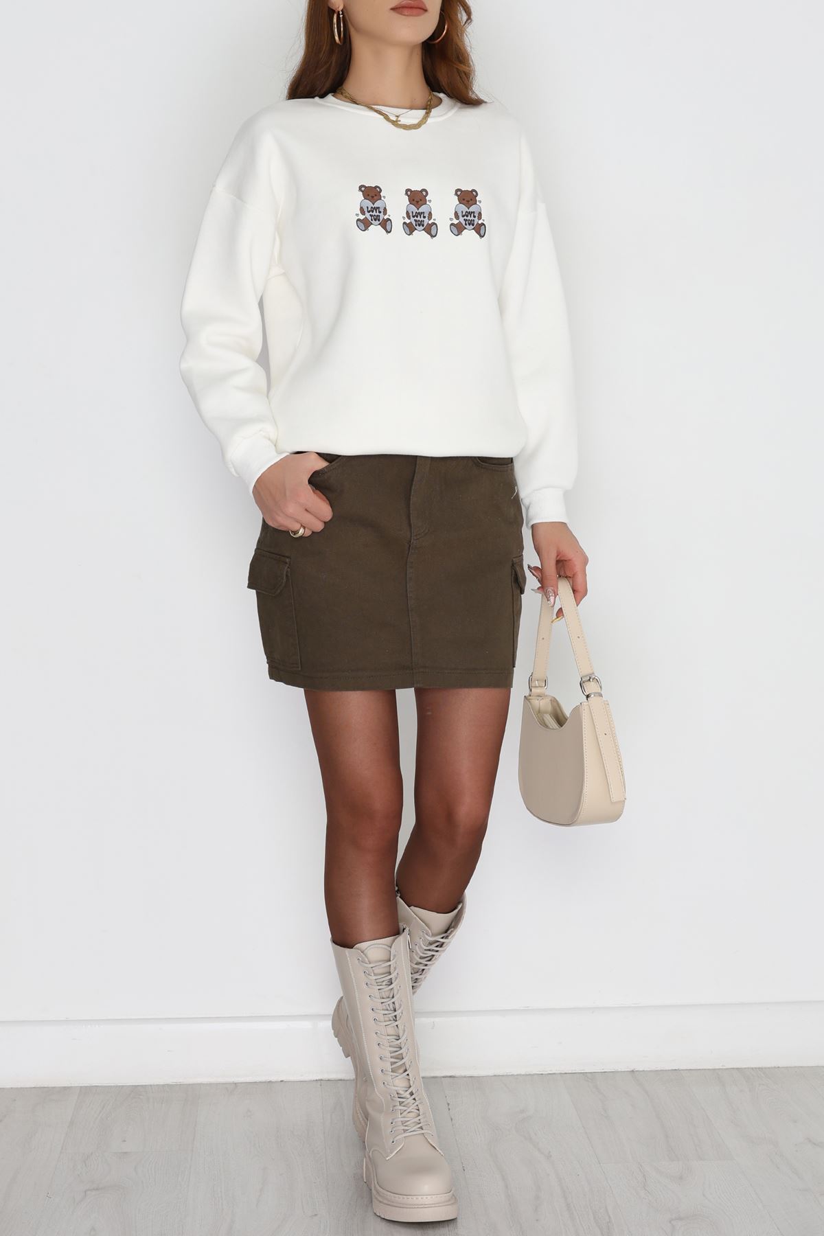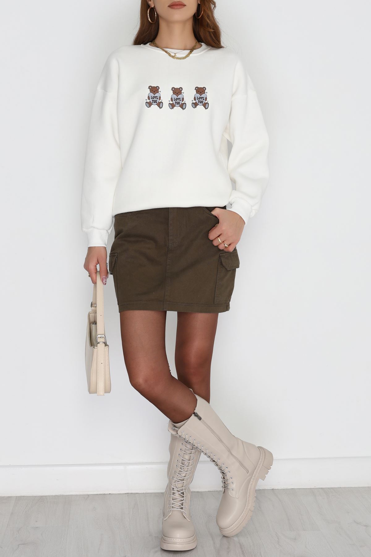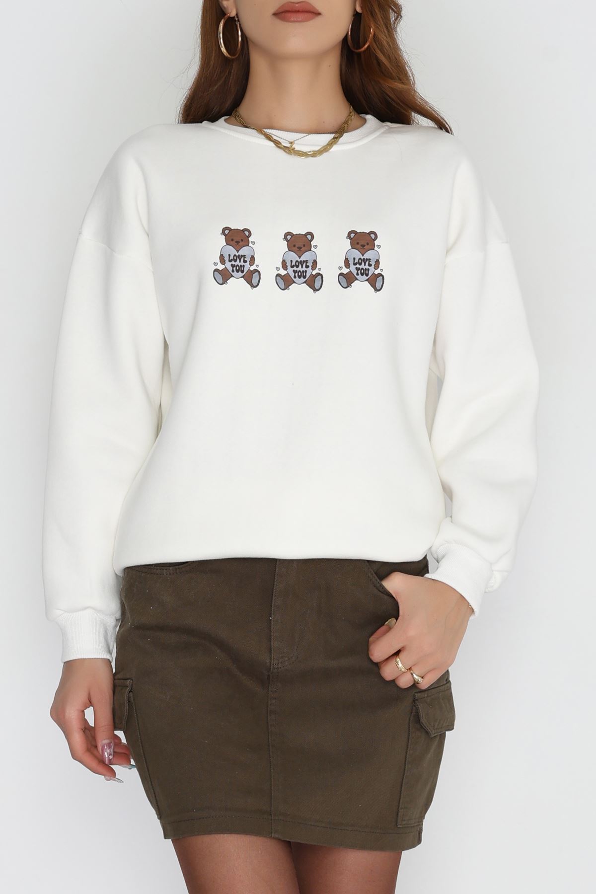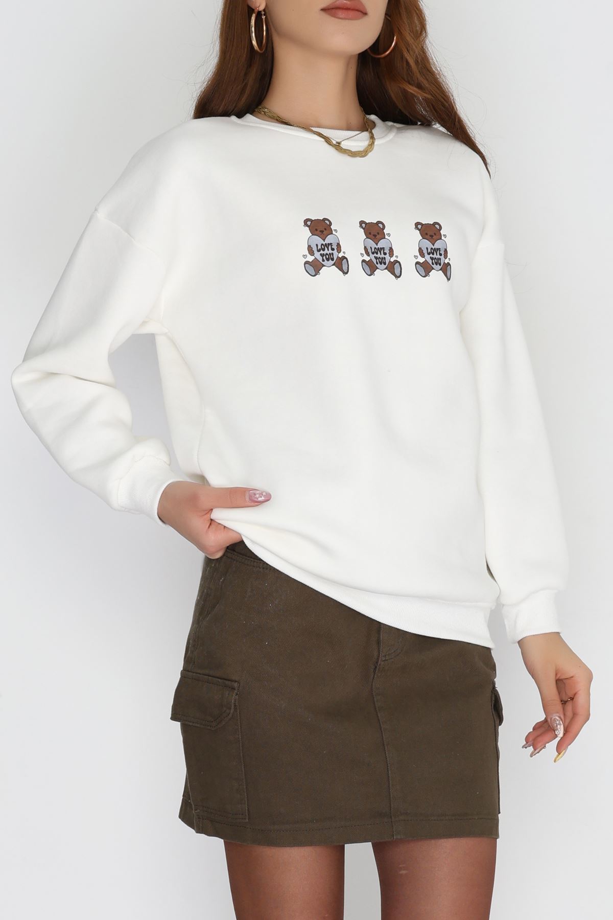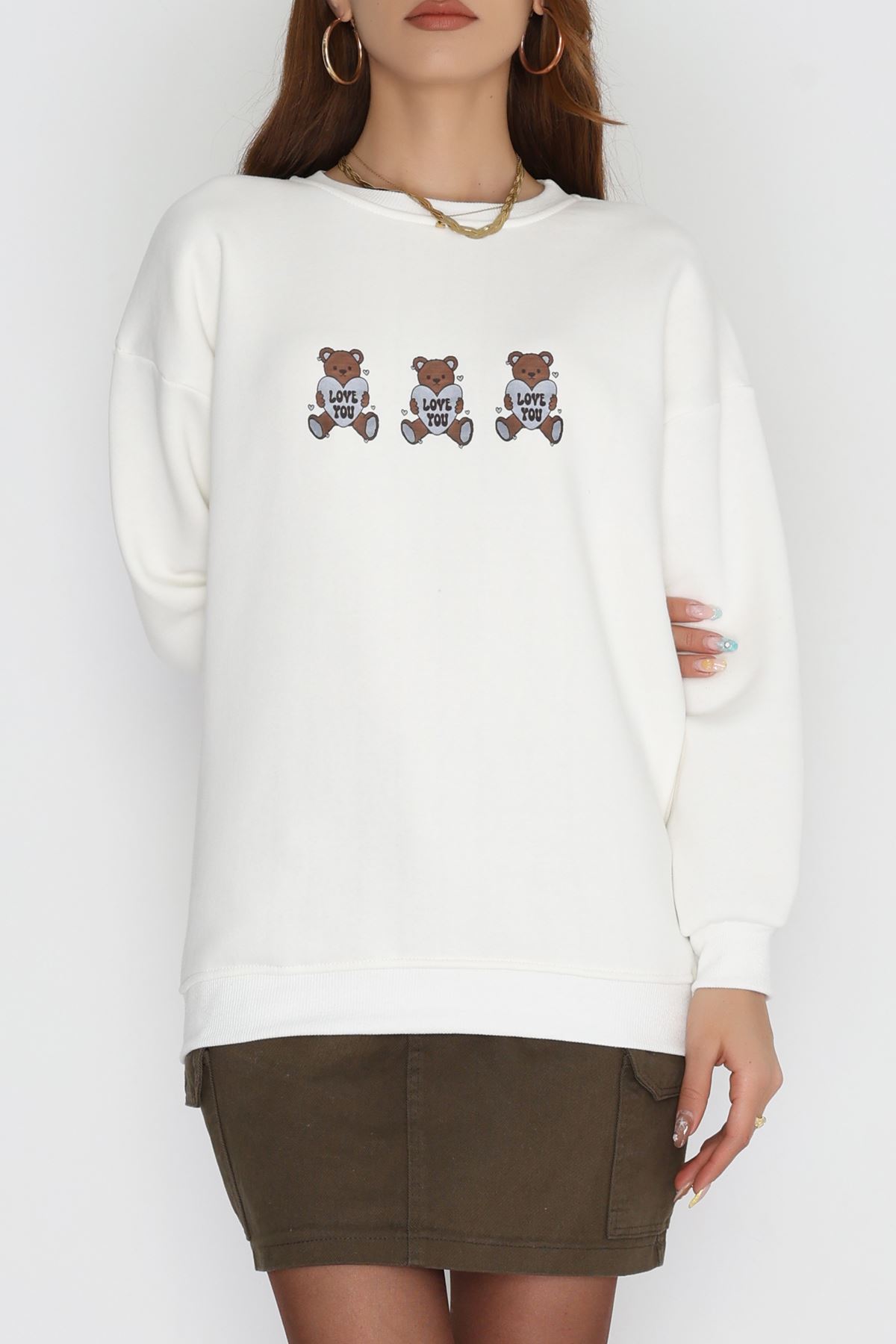3 İplik Baskılı Sweat Ekru - 42244.1878.