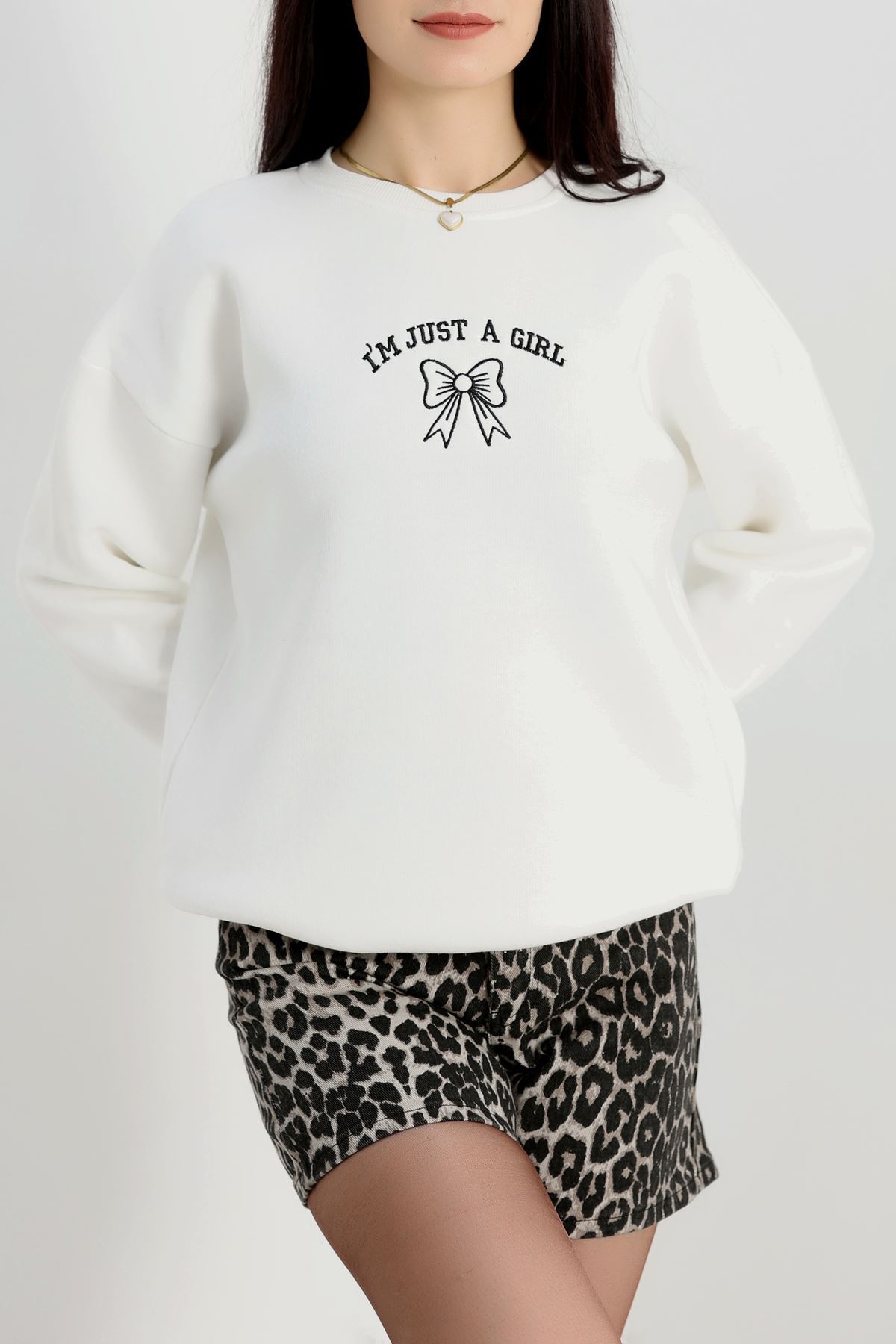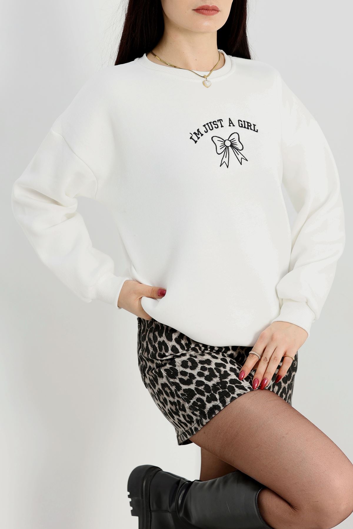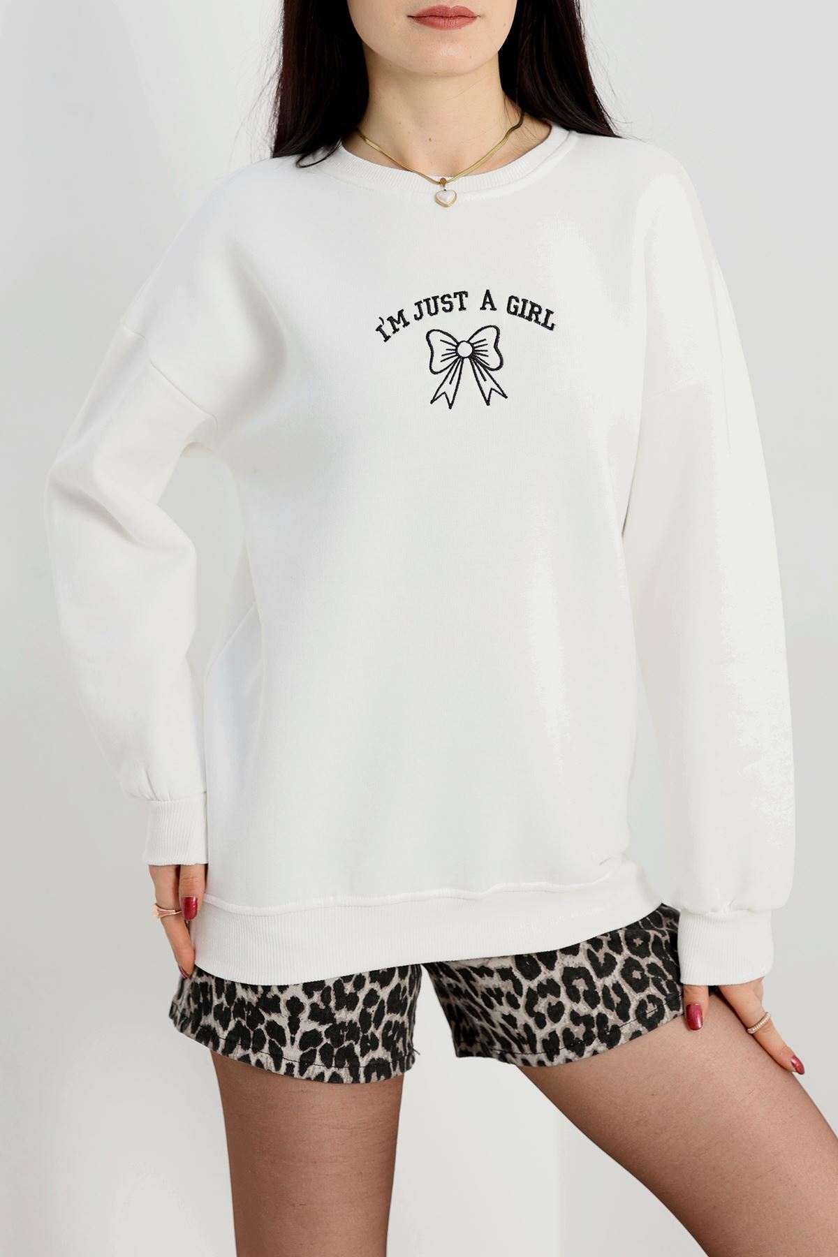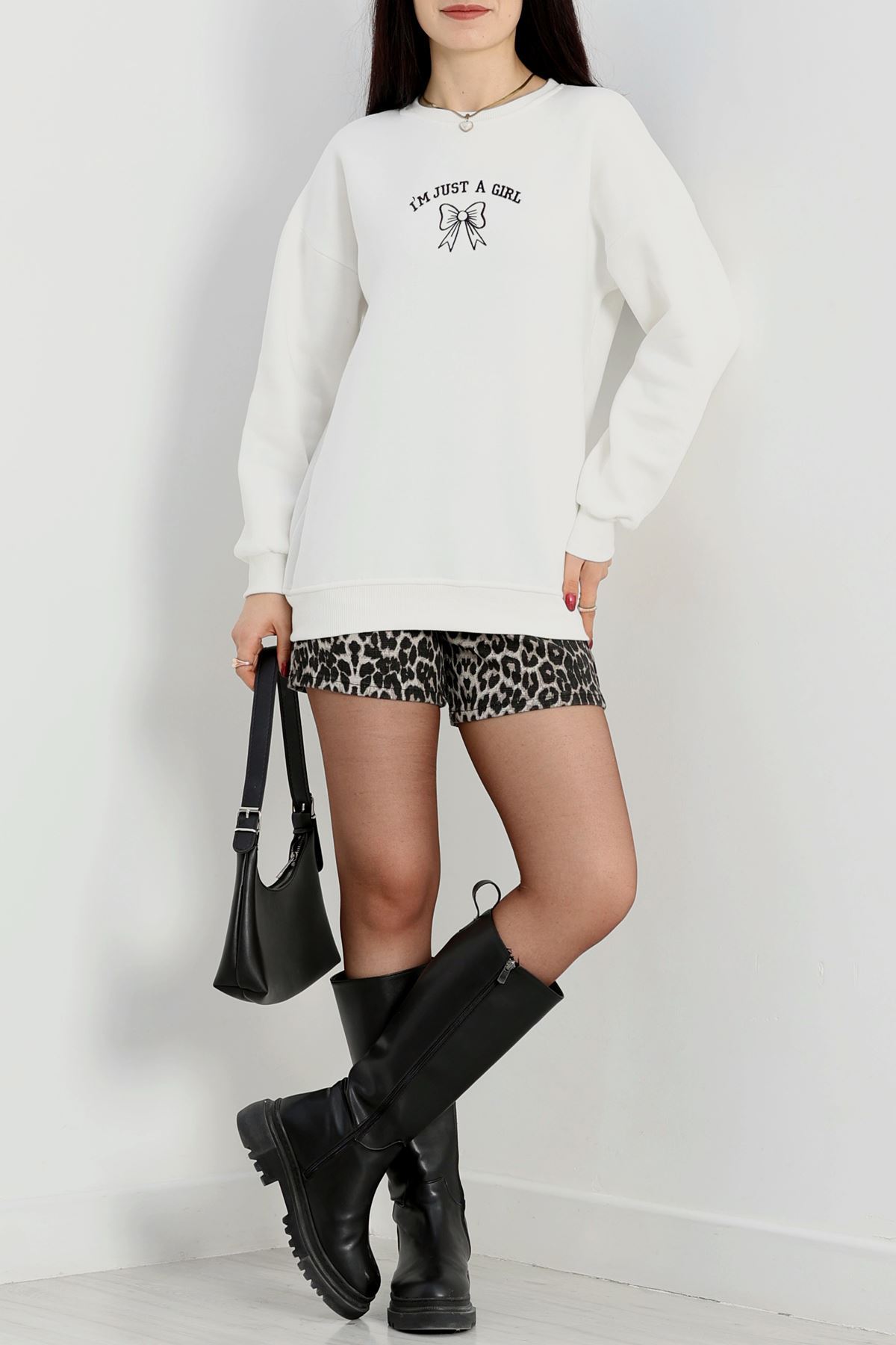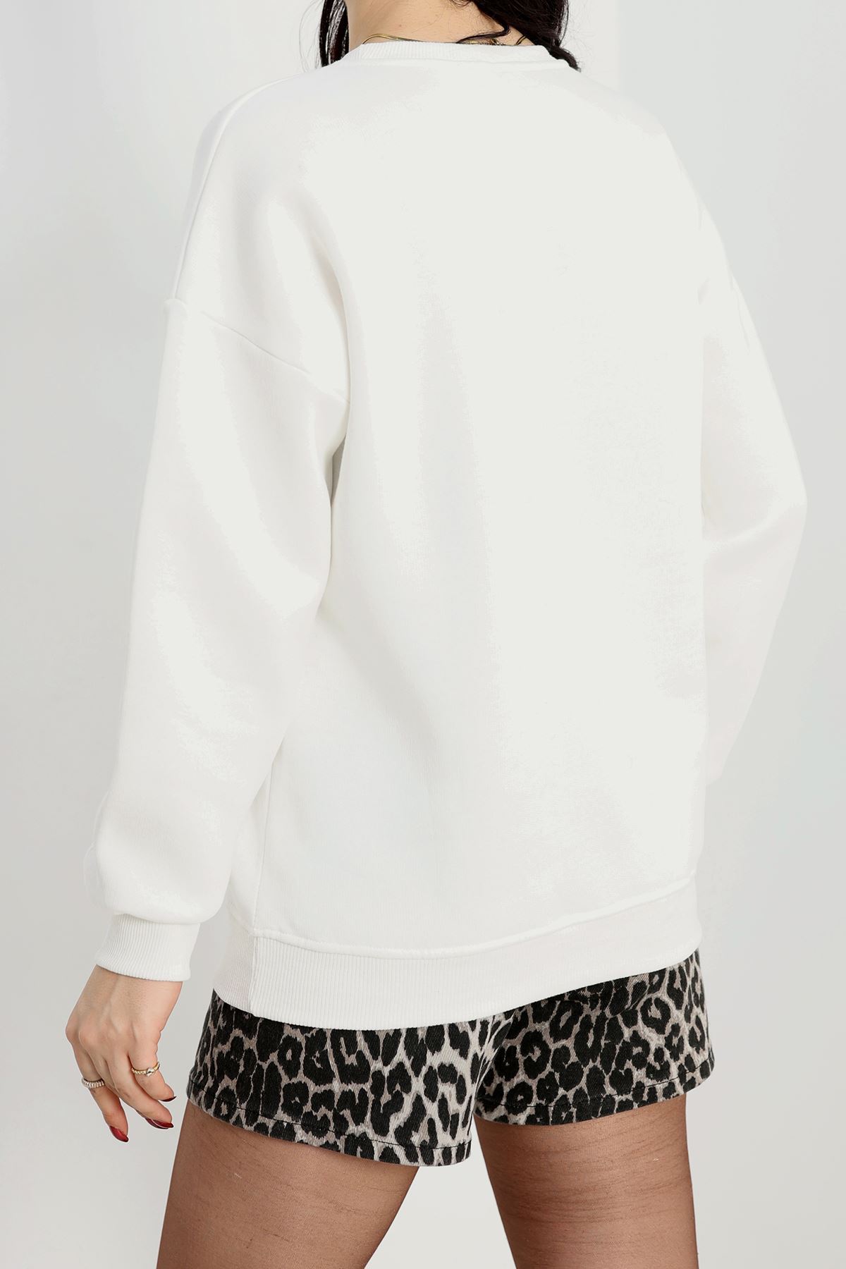 3 İplik Bisiklet Yaka Sweat Ekru - 42245.1878.