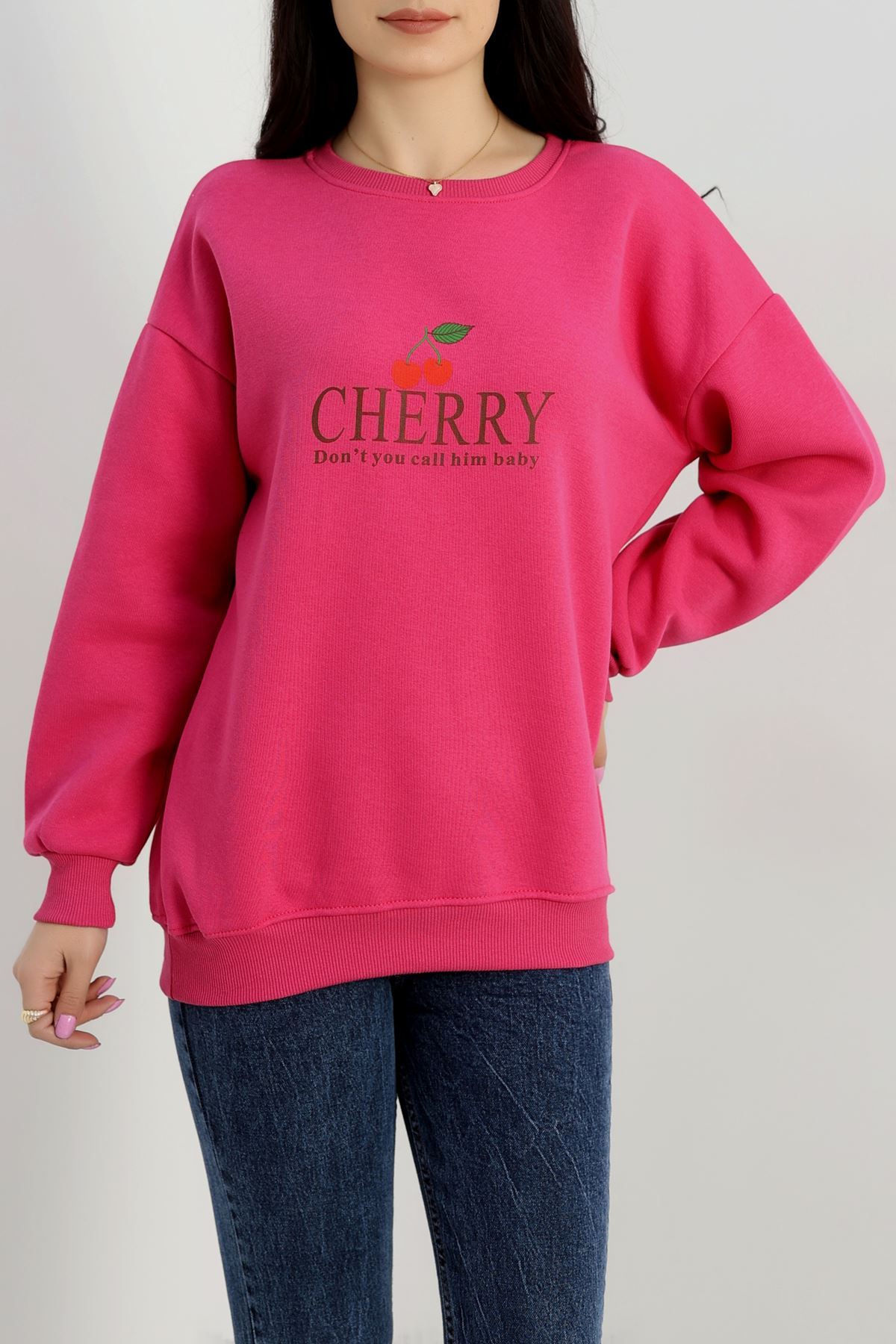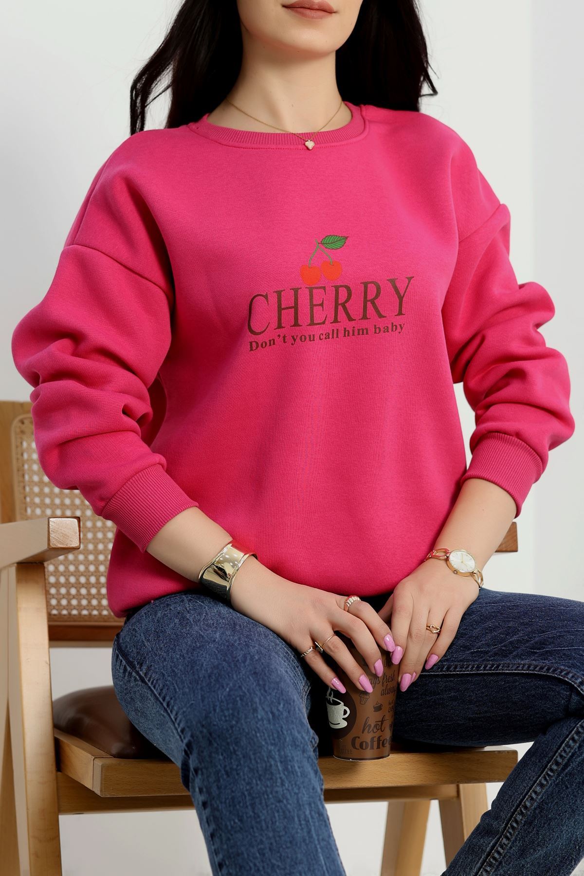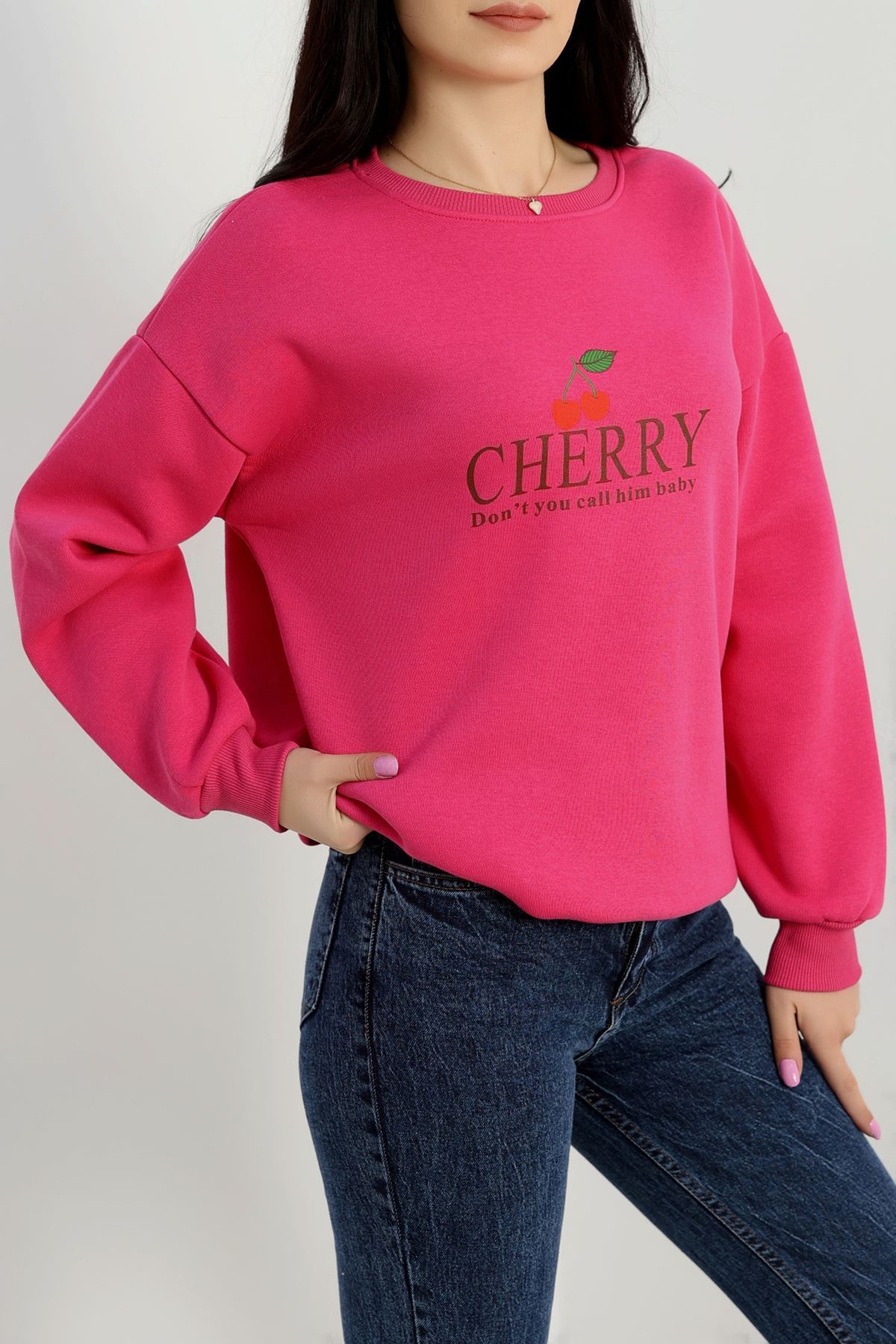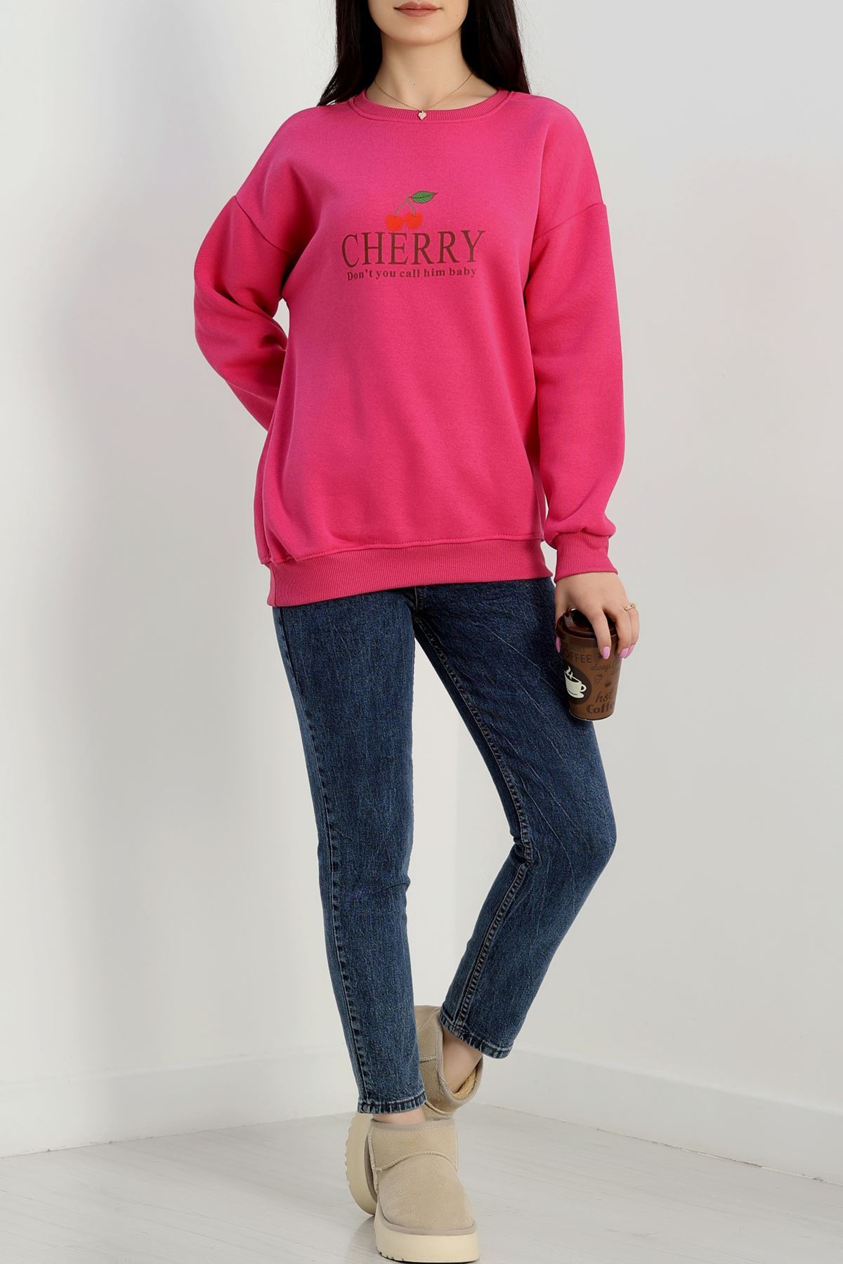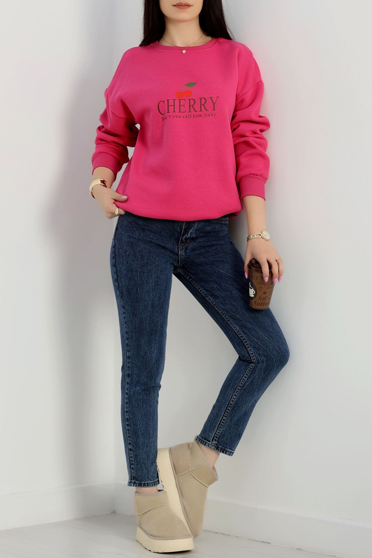 3 İplik Bisiklet Yaka Sweat Fuşya - 42235.1878.