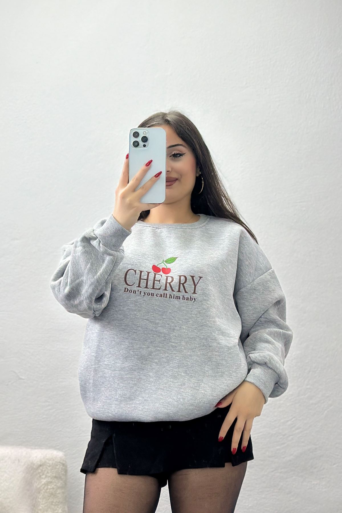 3 İplik Şardonlu Oversize Sweat Gri - 50923.1878.