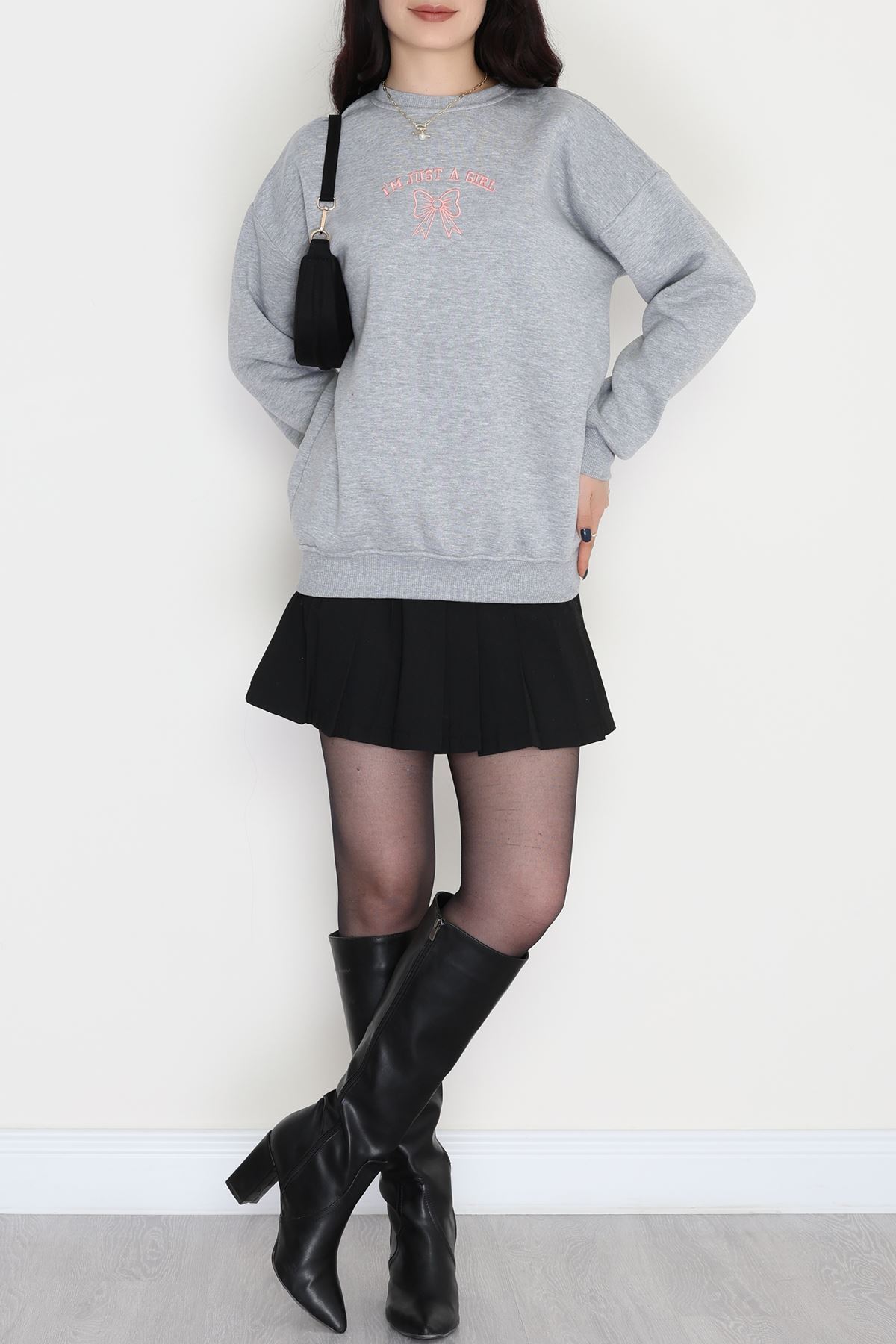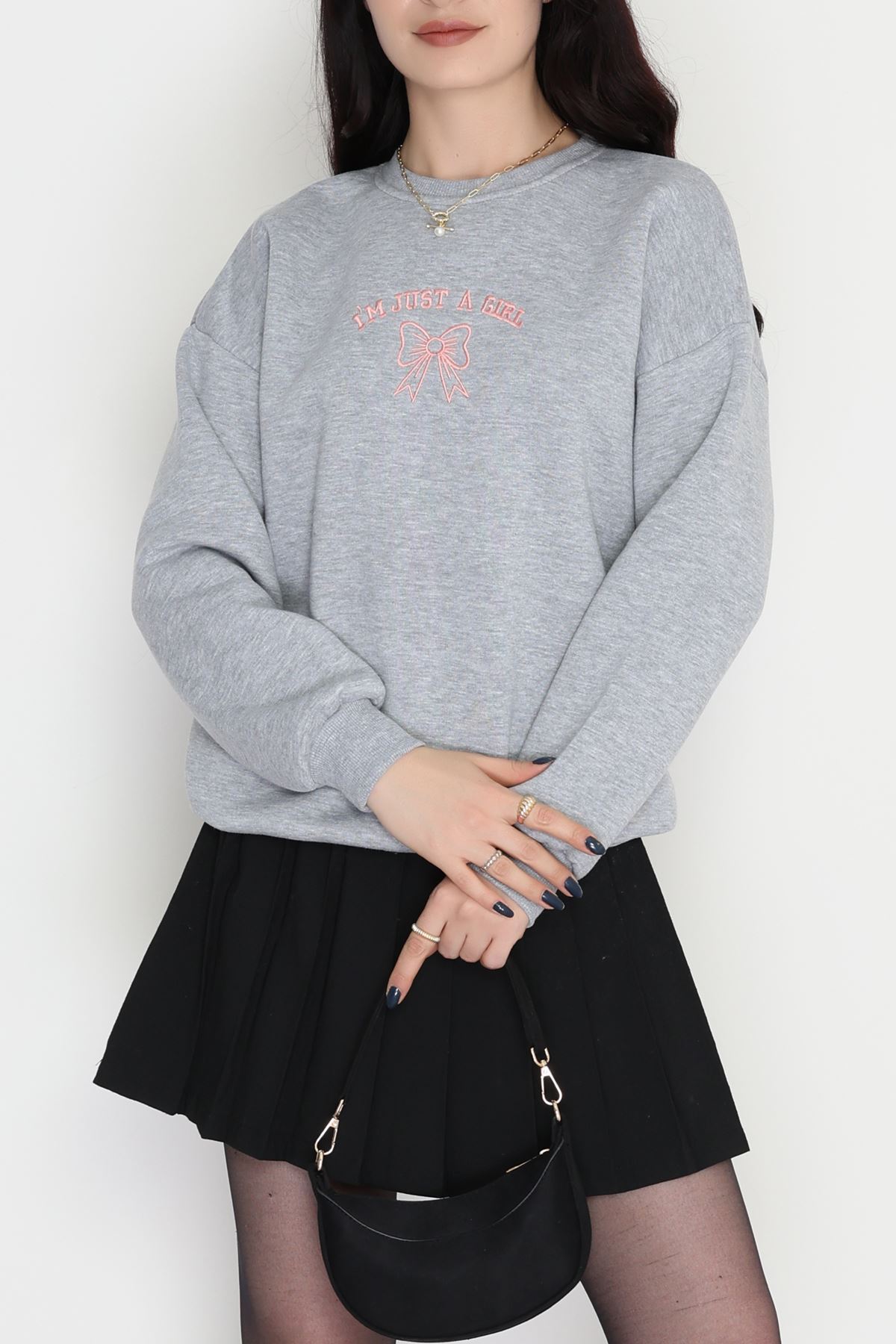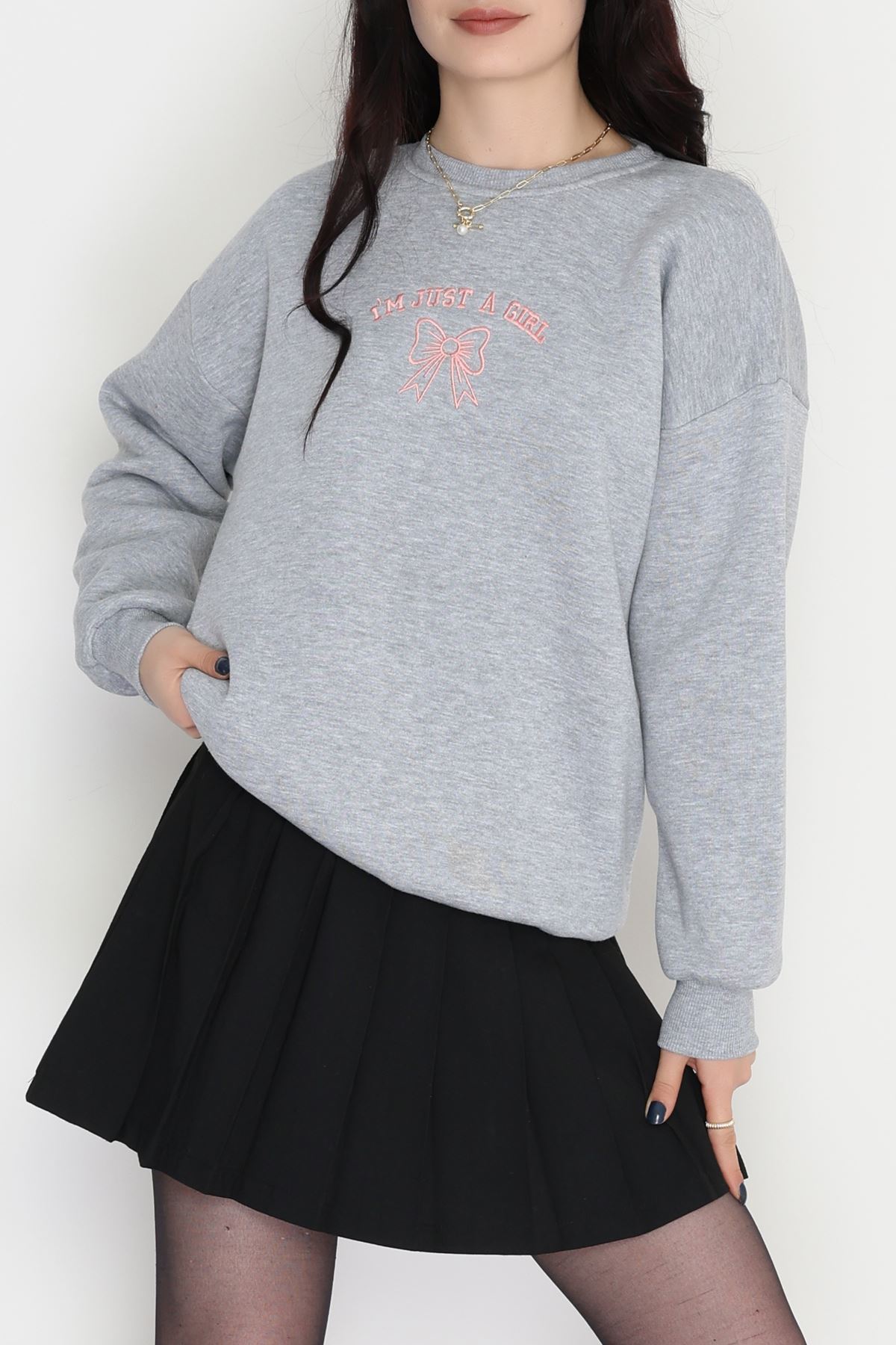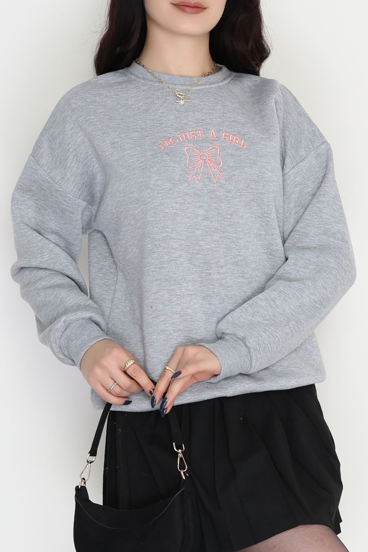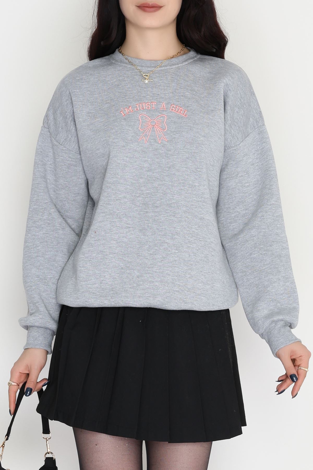 3 İplik Bisiklet Yaka Sweat Gri - 42245.1878.