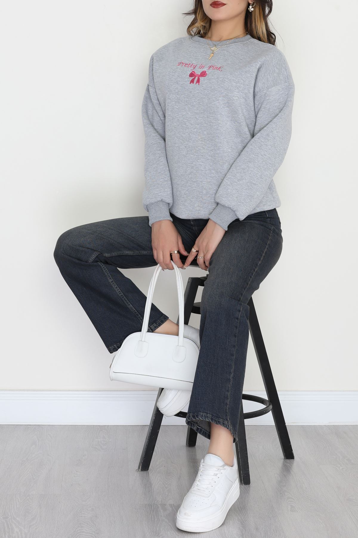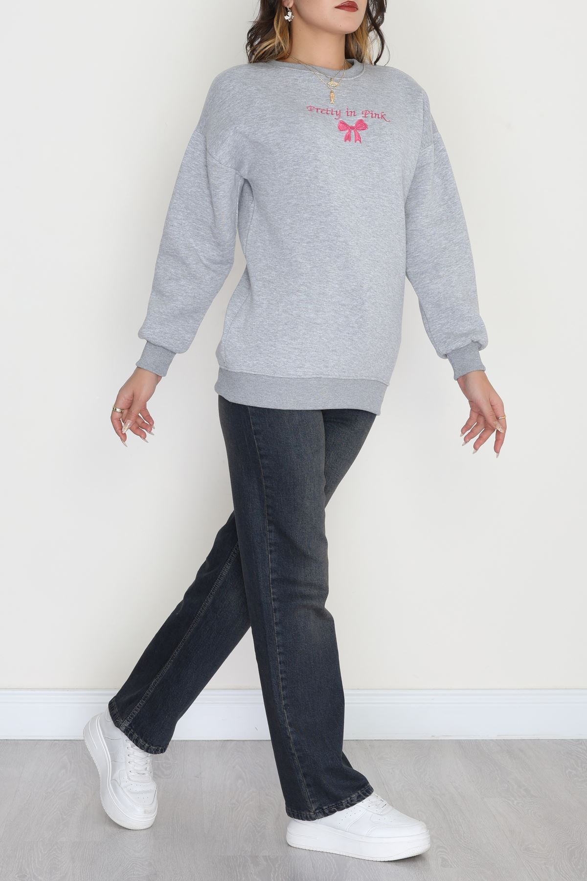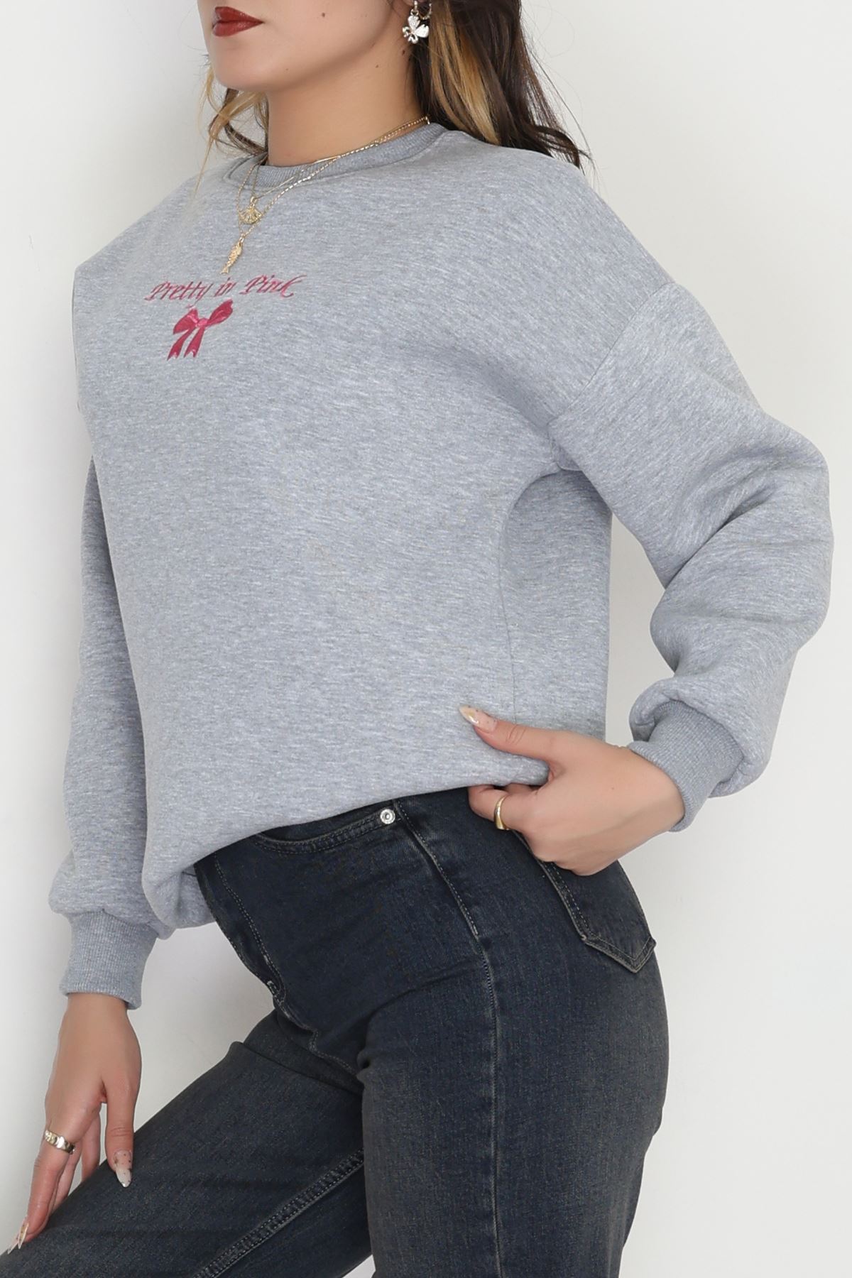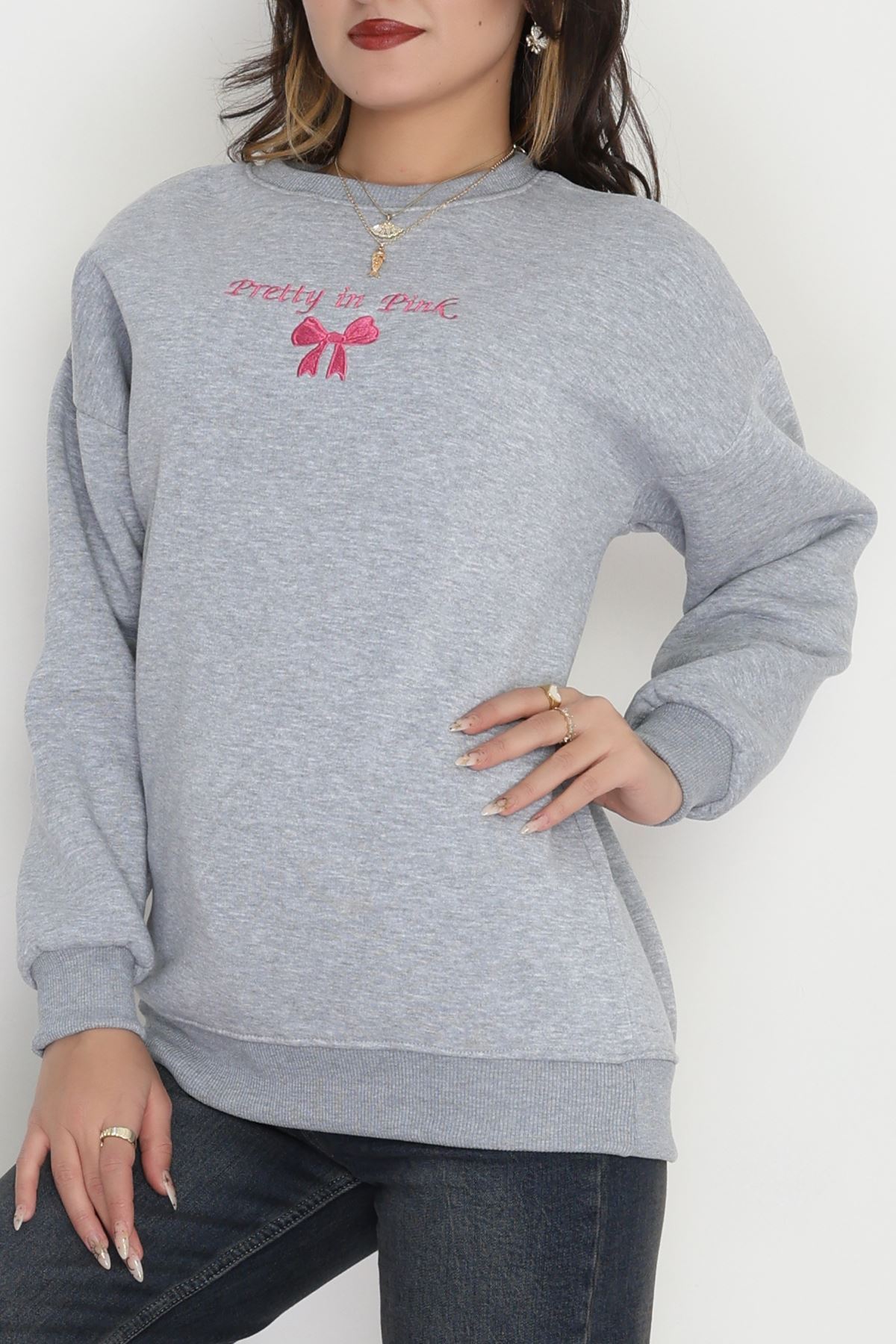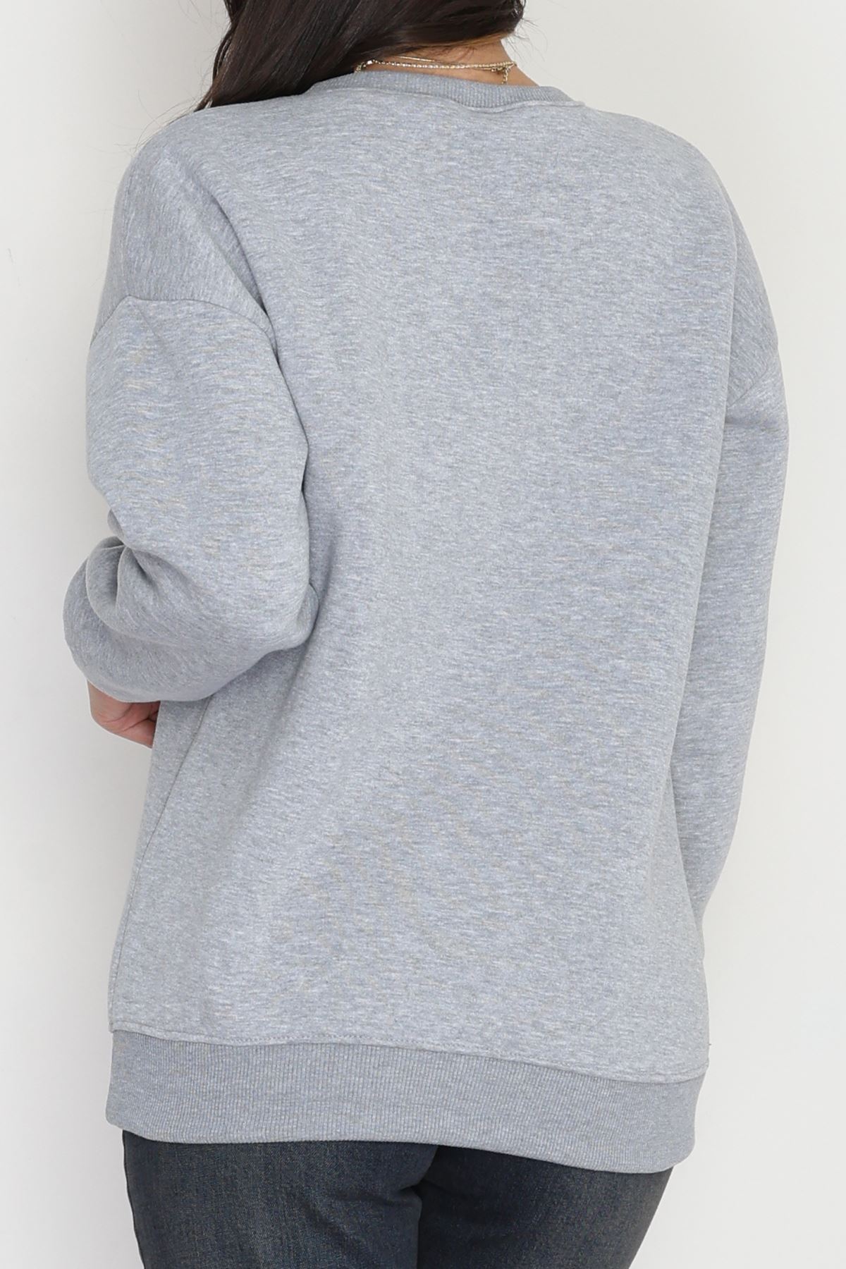 3 İplik Bisiklet Yaka Sweat Grifuşya - 42242.1878.