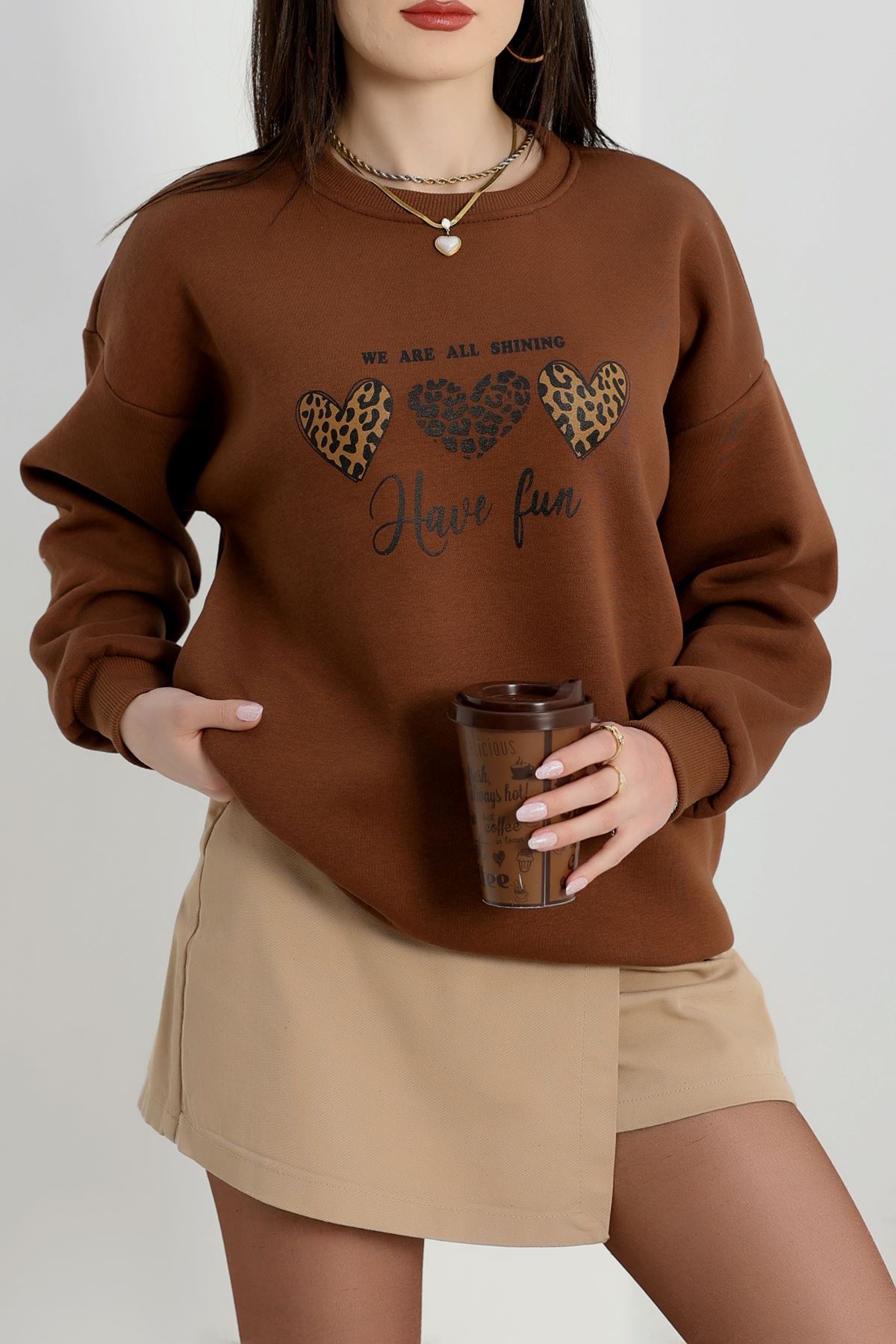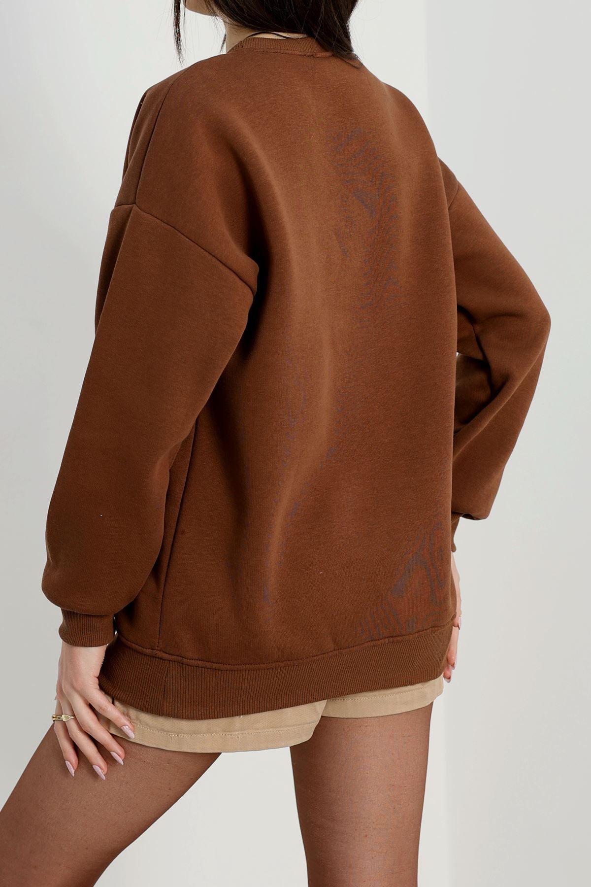 3 İplik Bisiklet Yaka Sweat Kahve - 42236.1878.