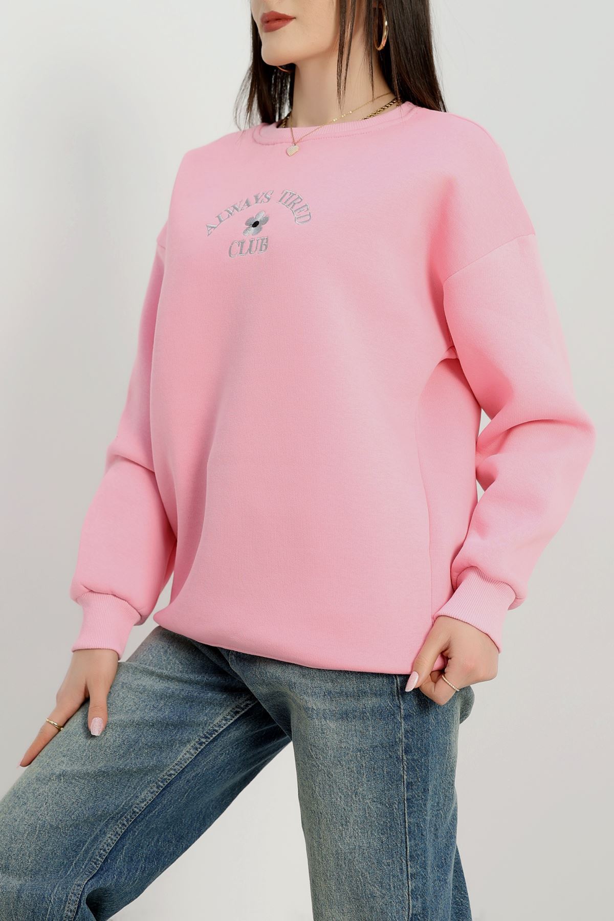 3 İplik Bisiklet Yaka Sweat Pembe - 42239.1878.