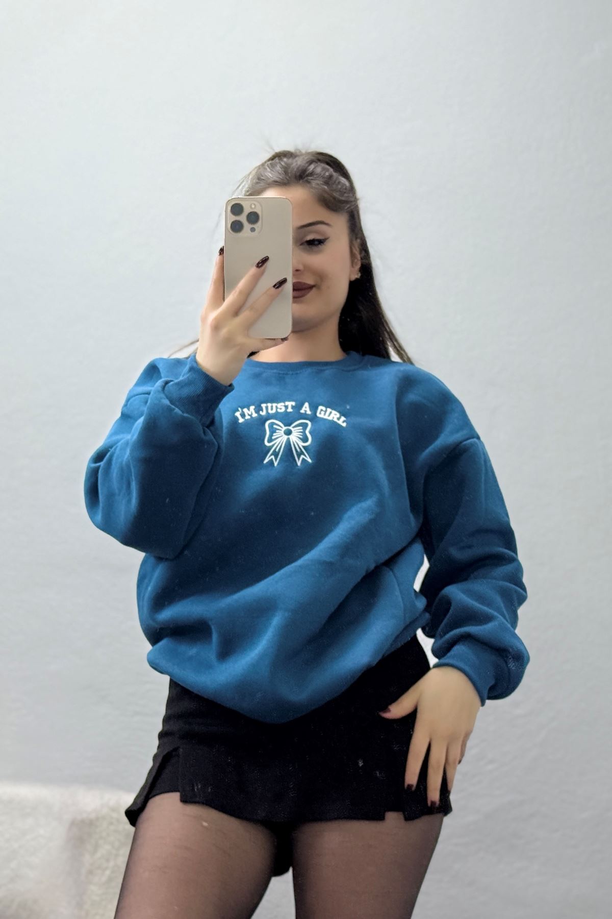 3 İplik Bisiklet Yaka Sweat Petrol - 42245.1878.