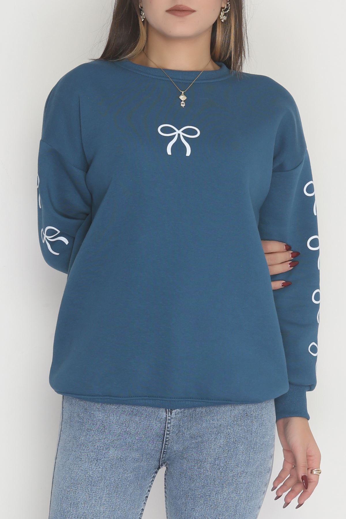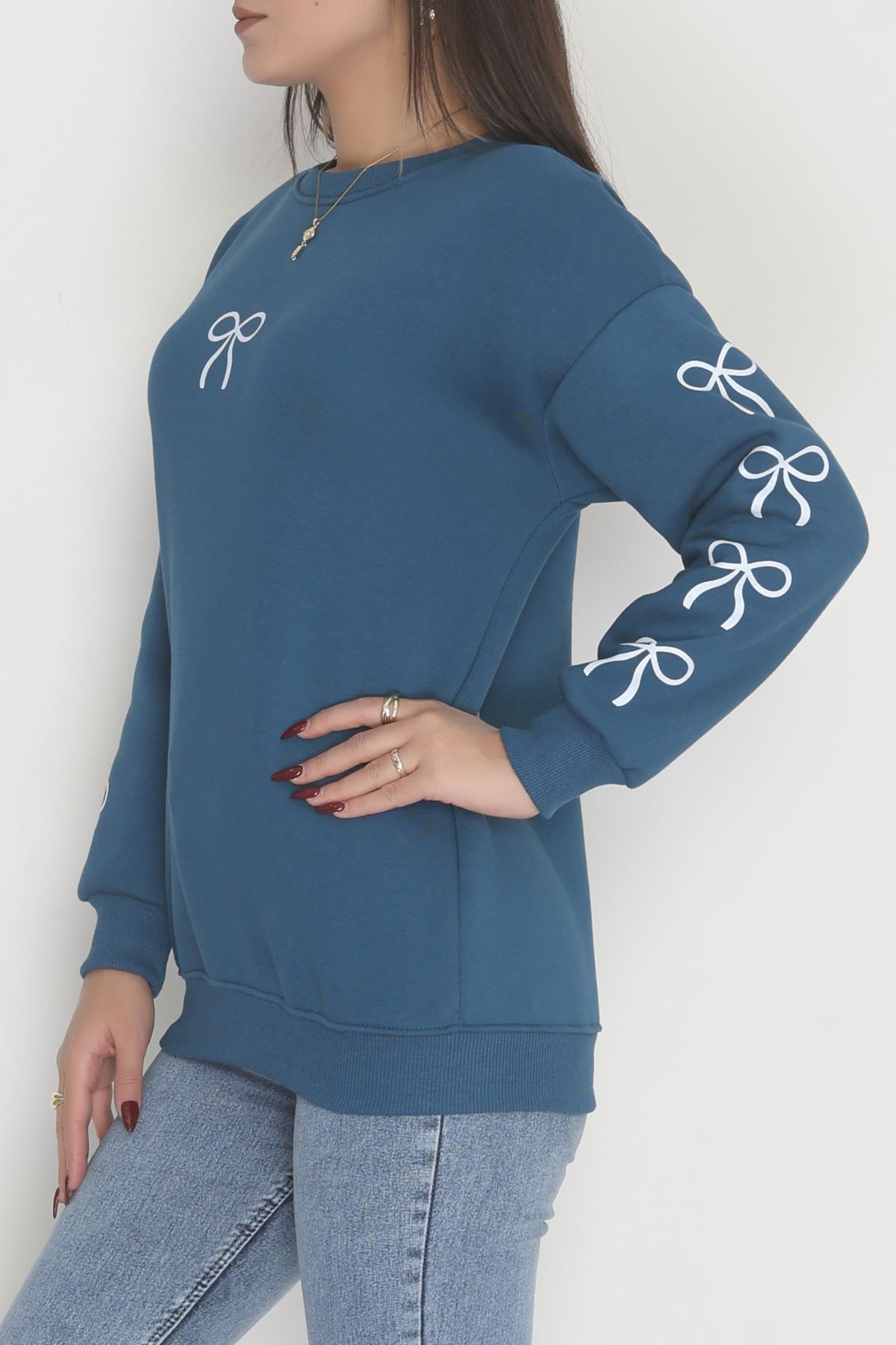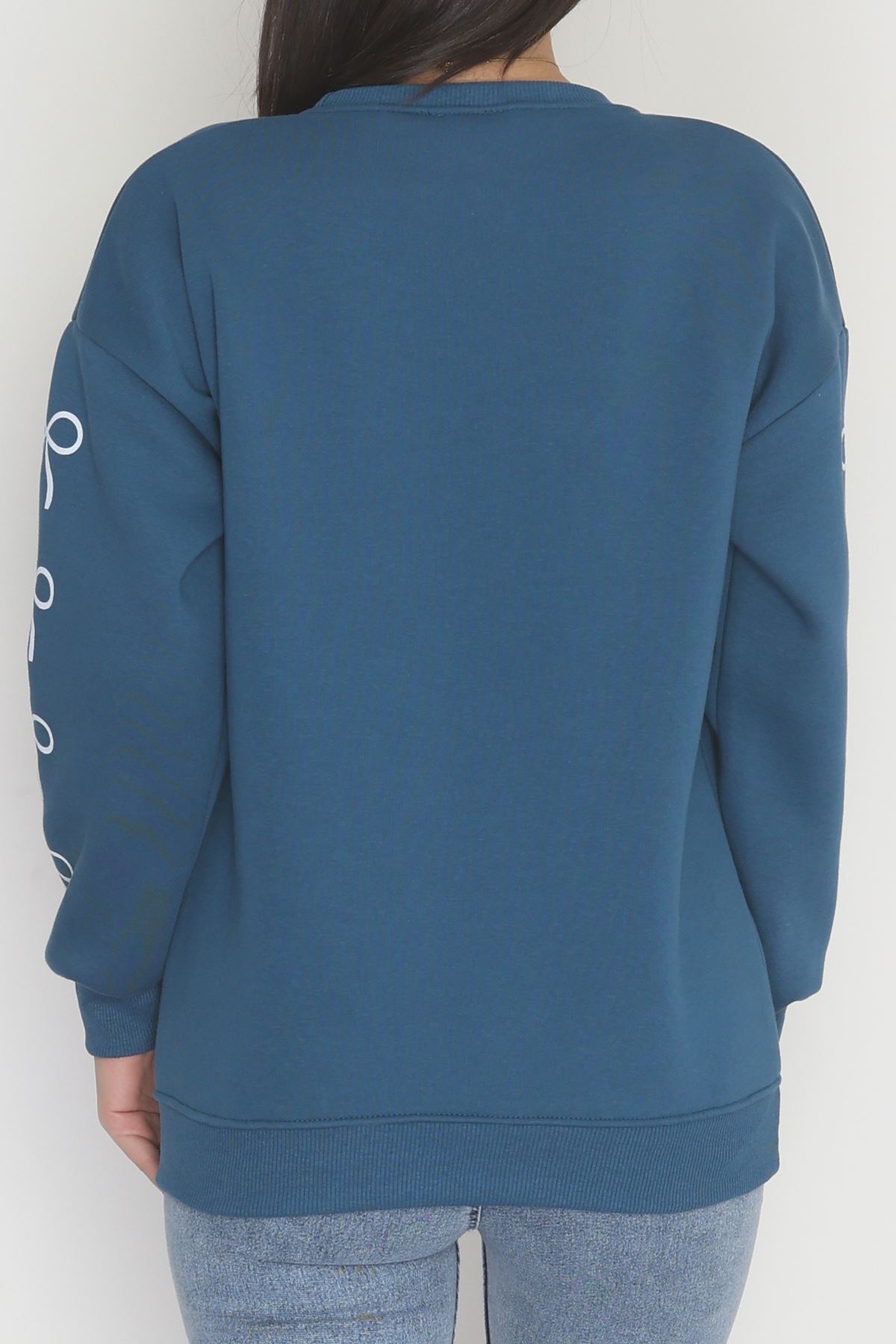 3 İplik Bisiklet Yaka Sweat Petrol - 42246.1878.