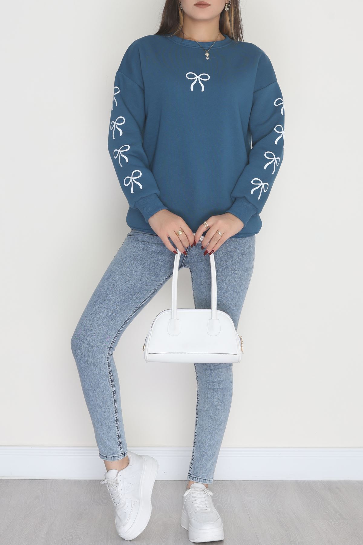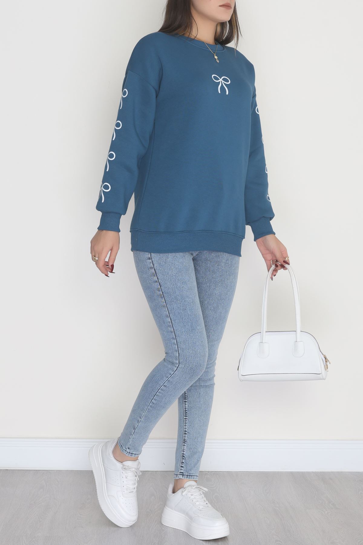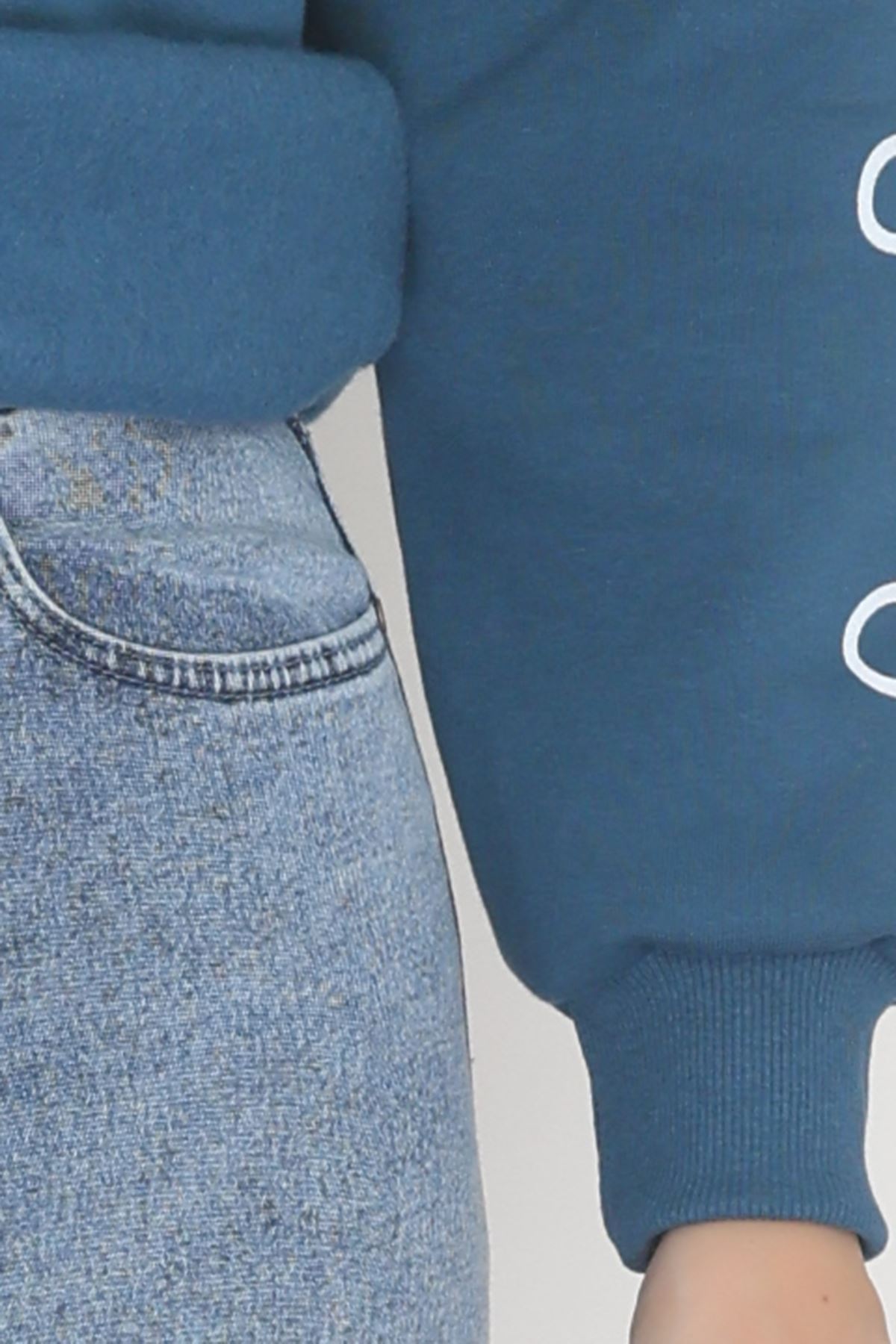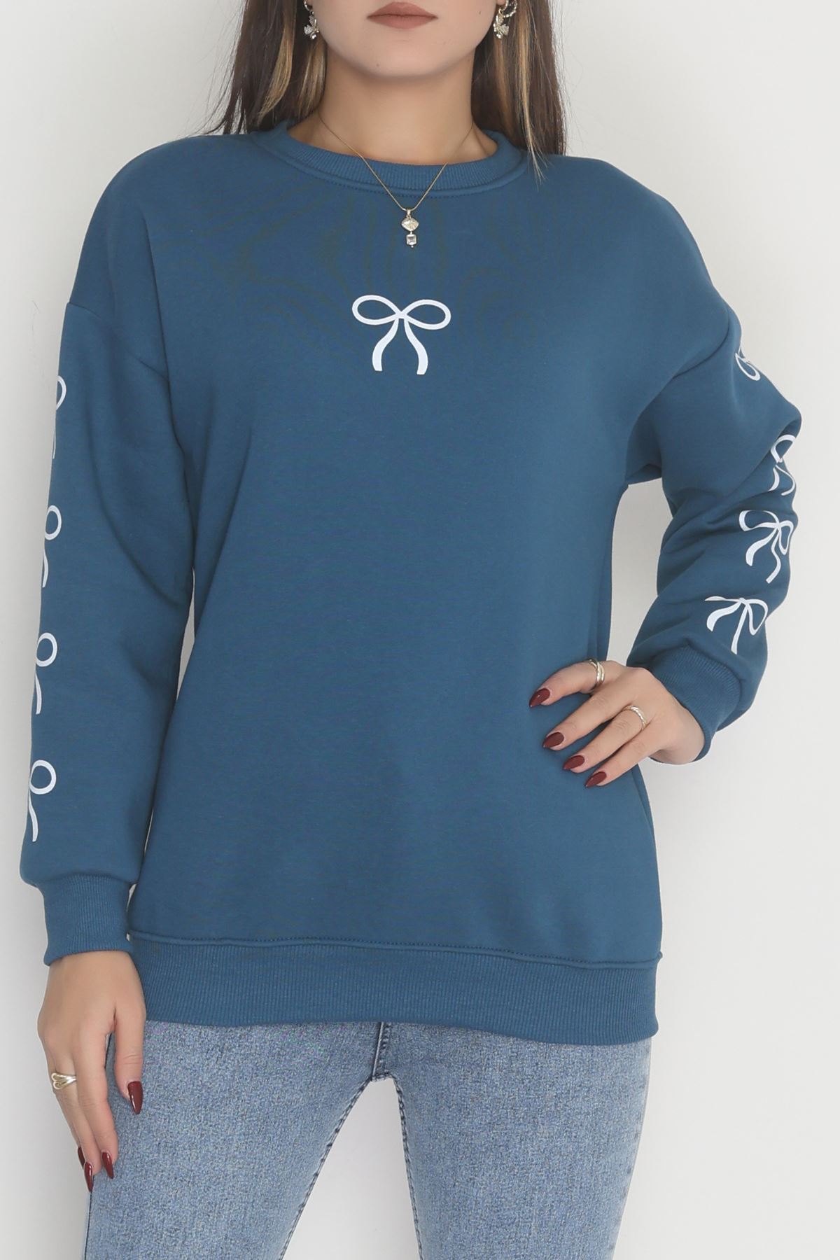 3 İplik Bisiklet Yaka Sweat Petrol - 42246.1878.