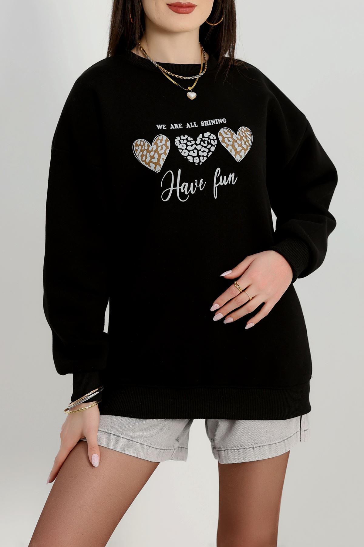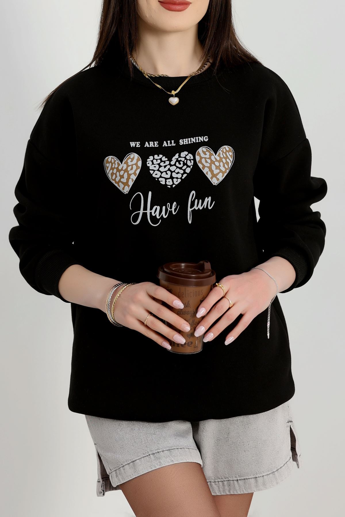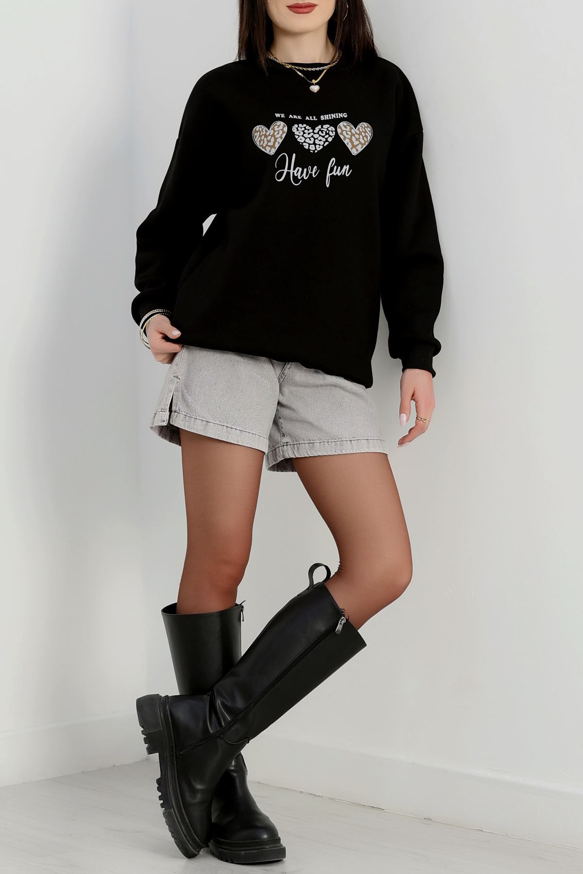 3 İplik Bisiklet Yaka Sweat Siyah - 42236.1878.
