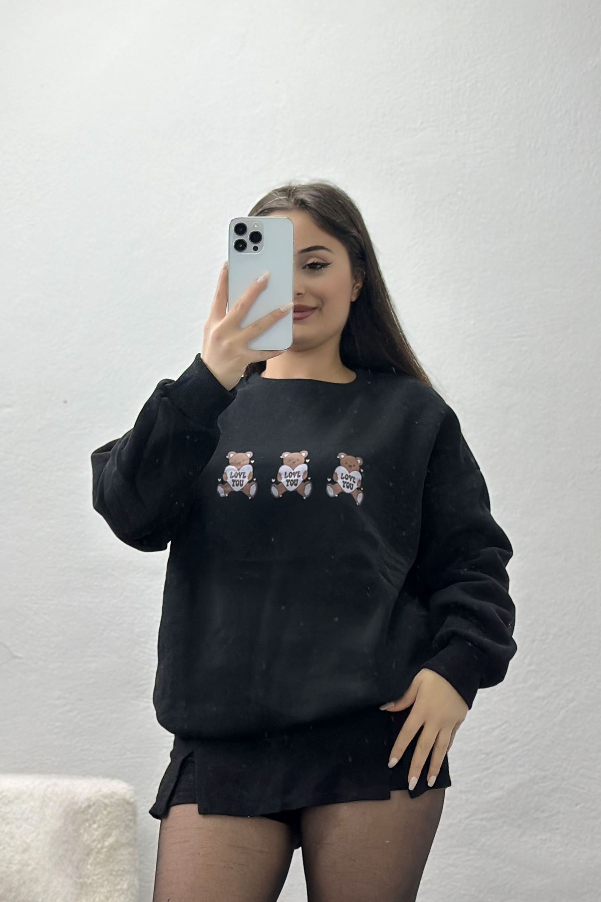 3 İplik Bisiklet Yaka Sweat Siyah - 42240.1878.