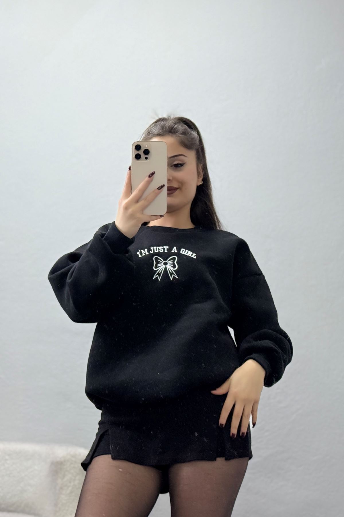 3 İplik Bisiklet Yaka Sweat Siyah - 42245.1878.