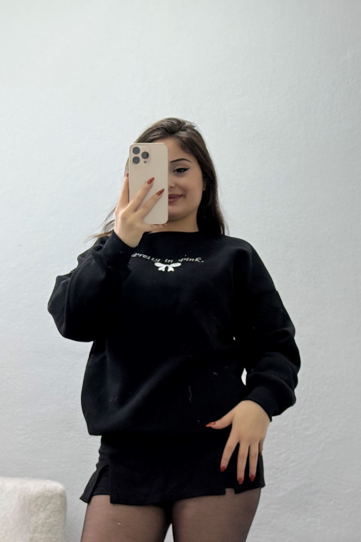 3 İplik Şardonlu Oversize Sweat Siyah - 50921.1878.