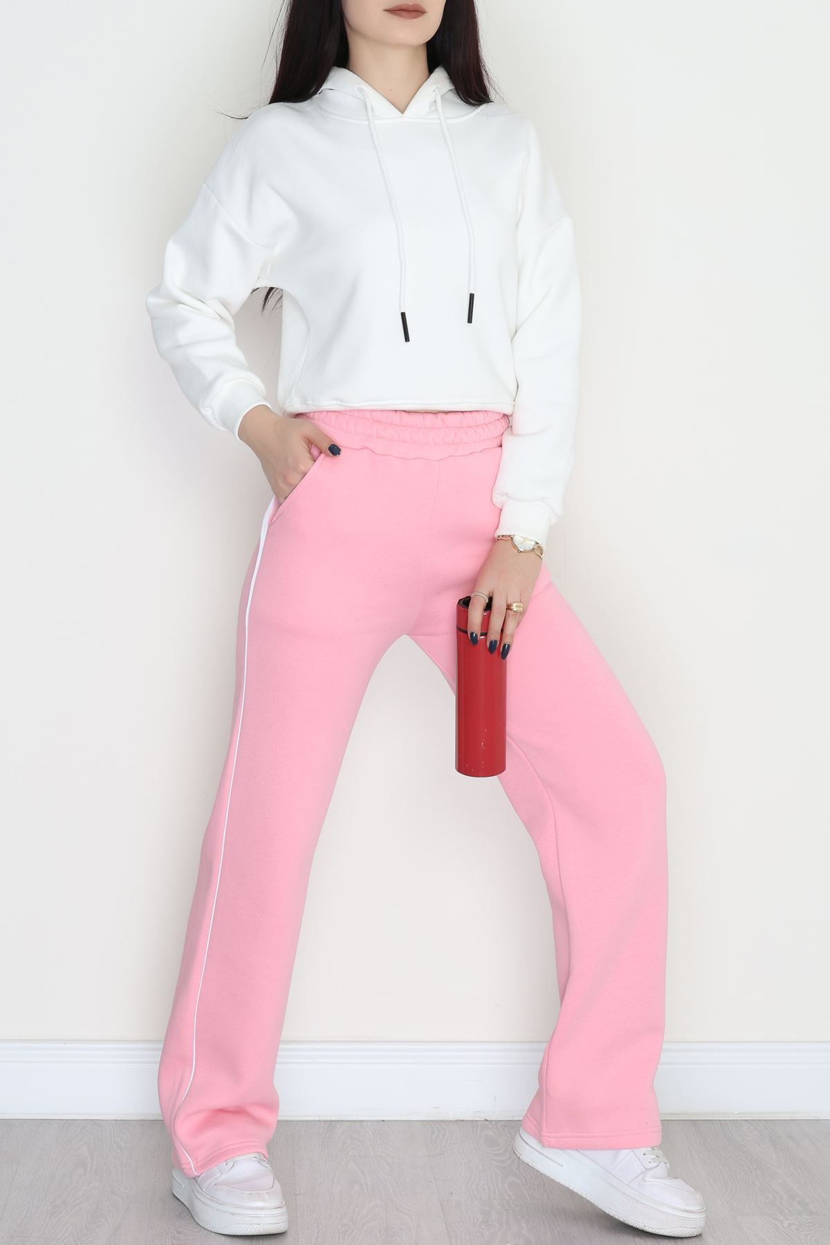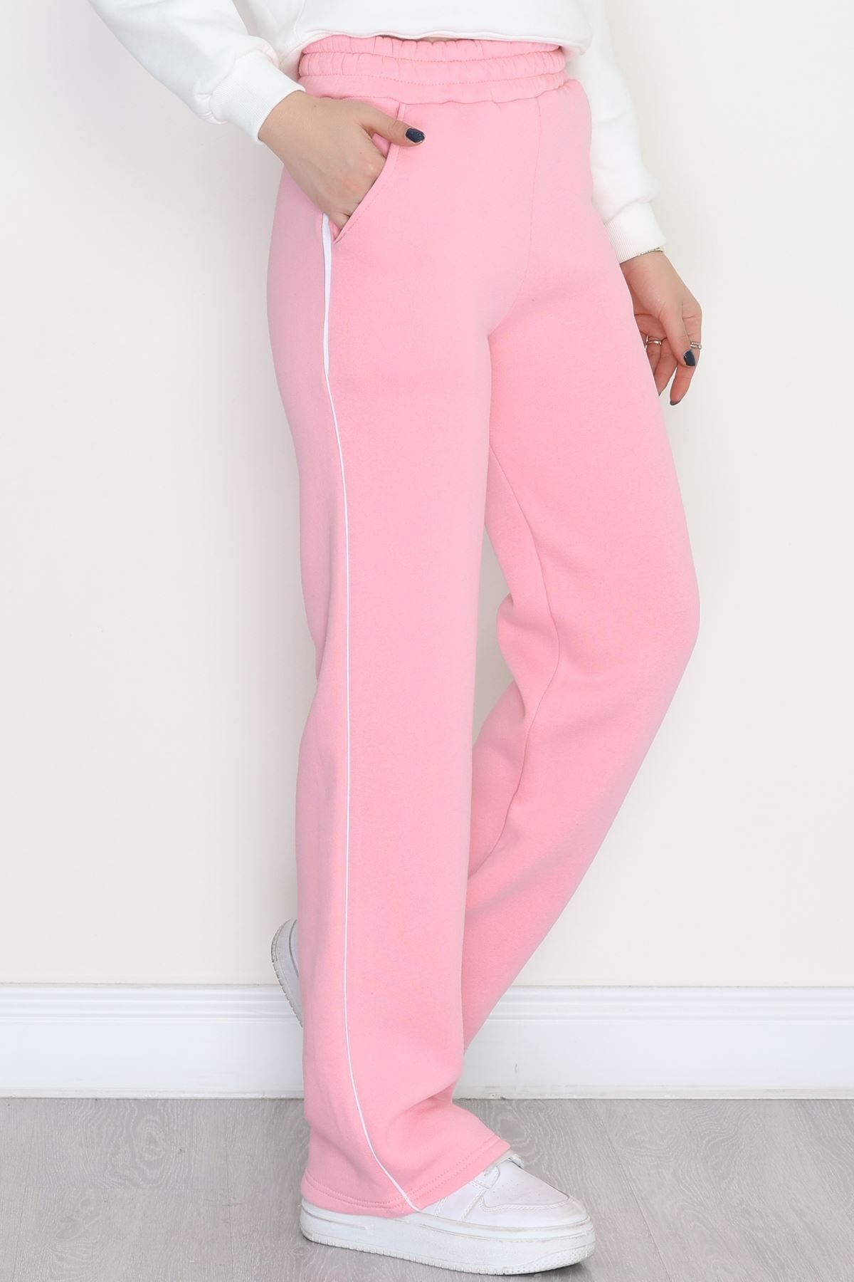 3 İplik Biyeli Palazzo Eşofman Altı Pembe - 30104.1878.