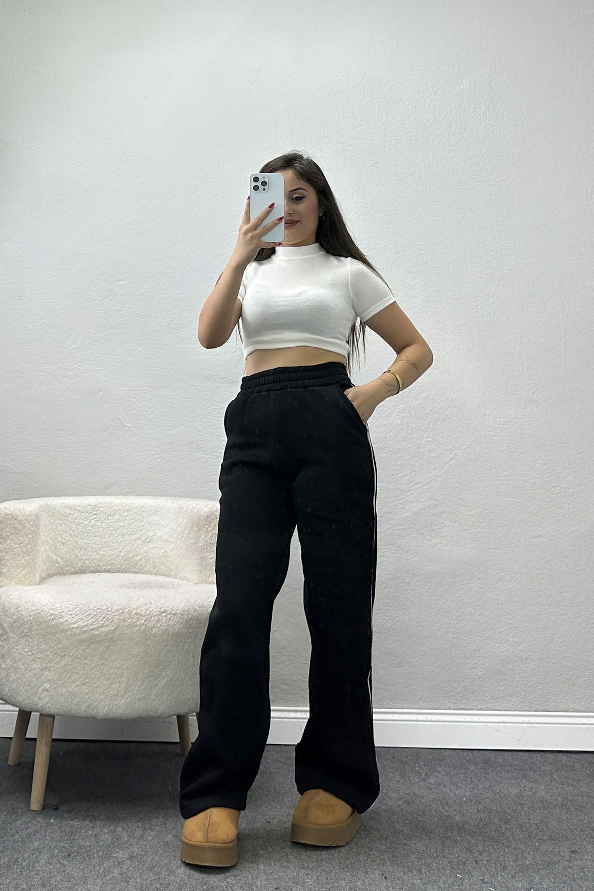 3 İplik Biyeli Palazzo Eşofman Altı Siyah - 30104.1878.