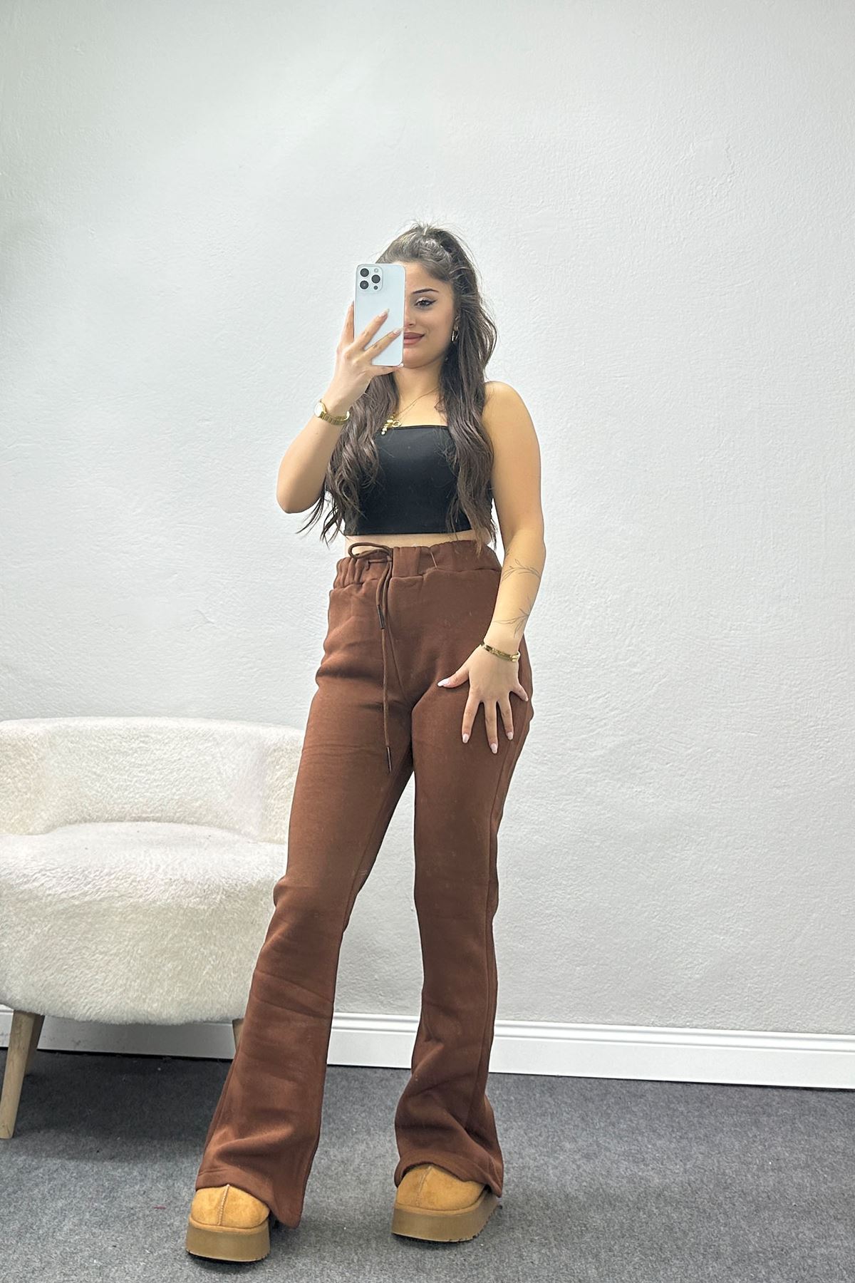 3 İplik İspanyol Paça Eşofman Altı Acıkahve - 42522.1878.