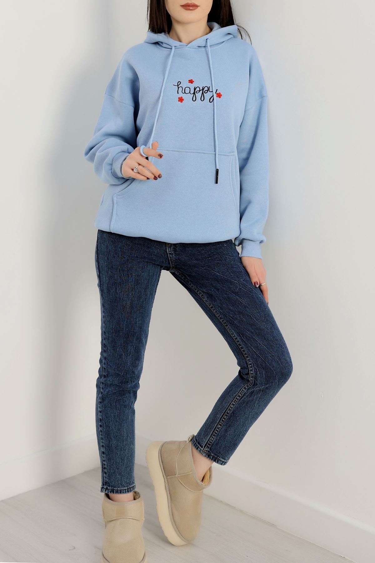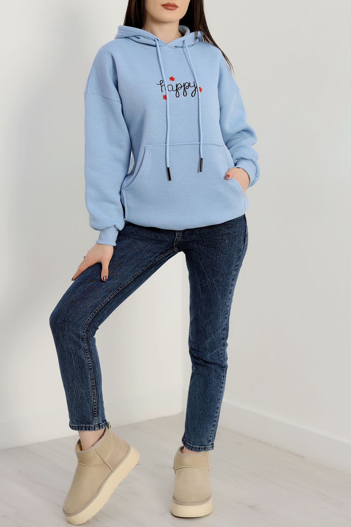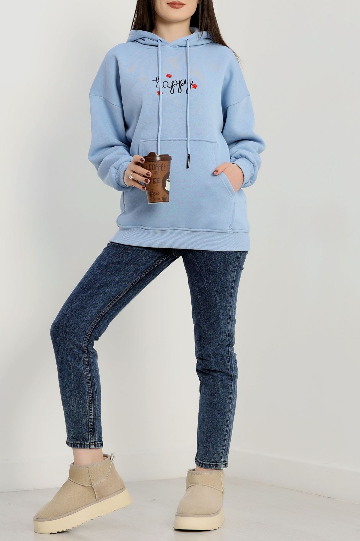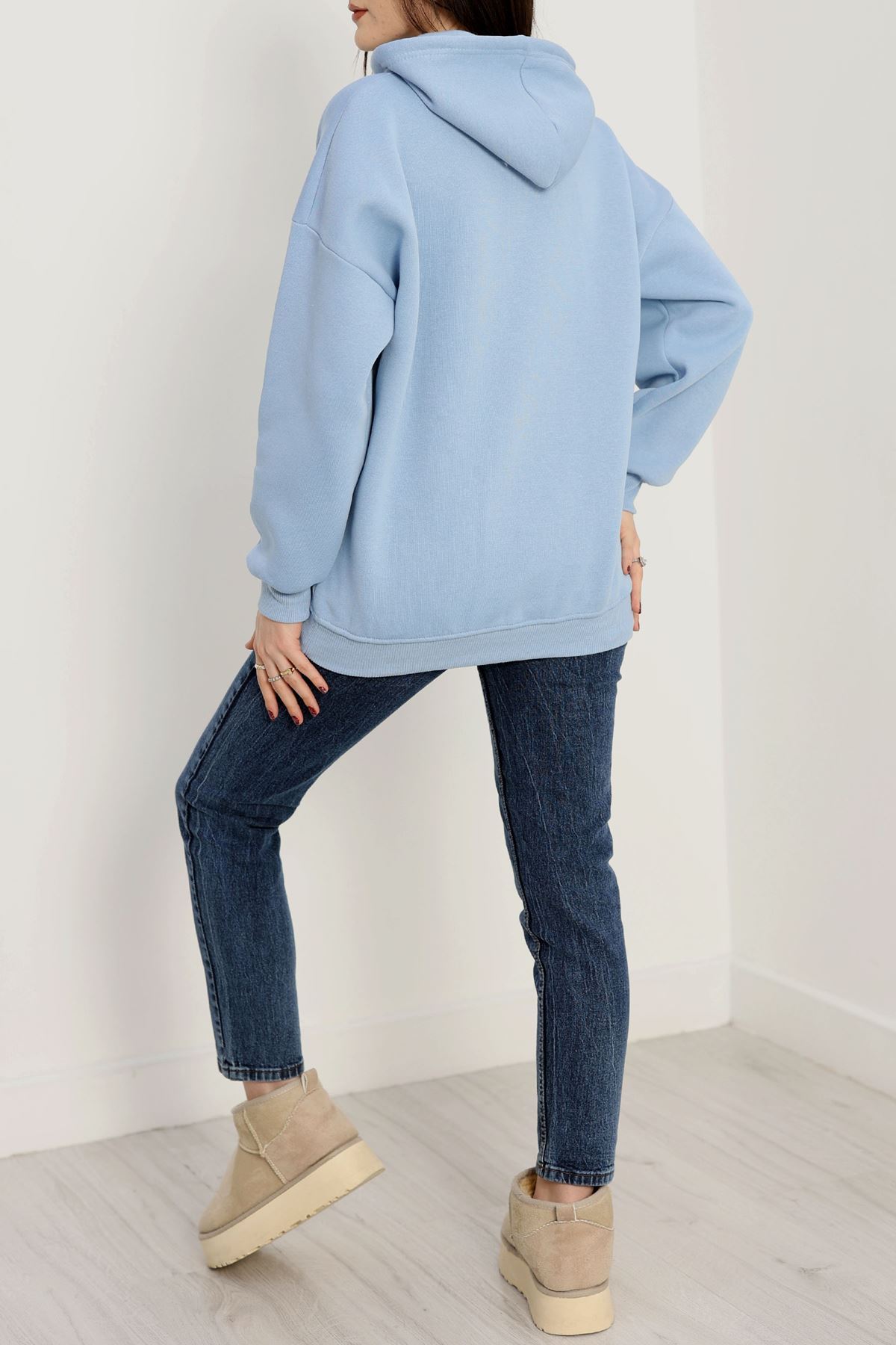 3 İplik Kanguru Cepli Kapşonlu Sweat Bebemavi - 42250.1878.