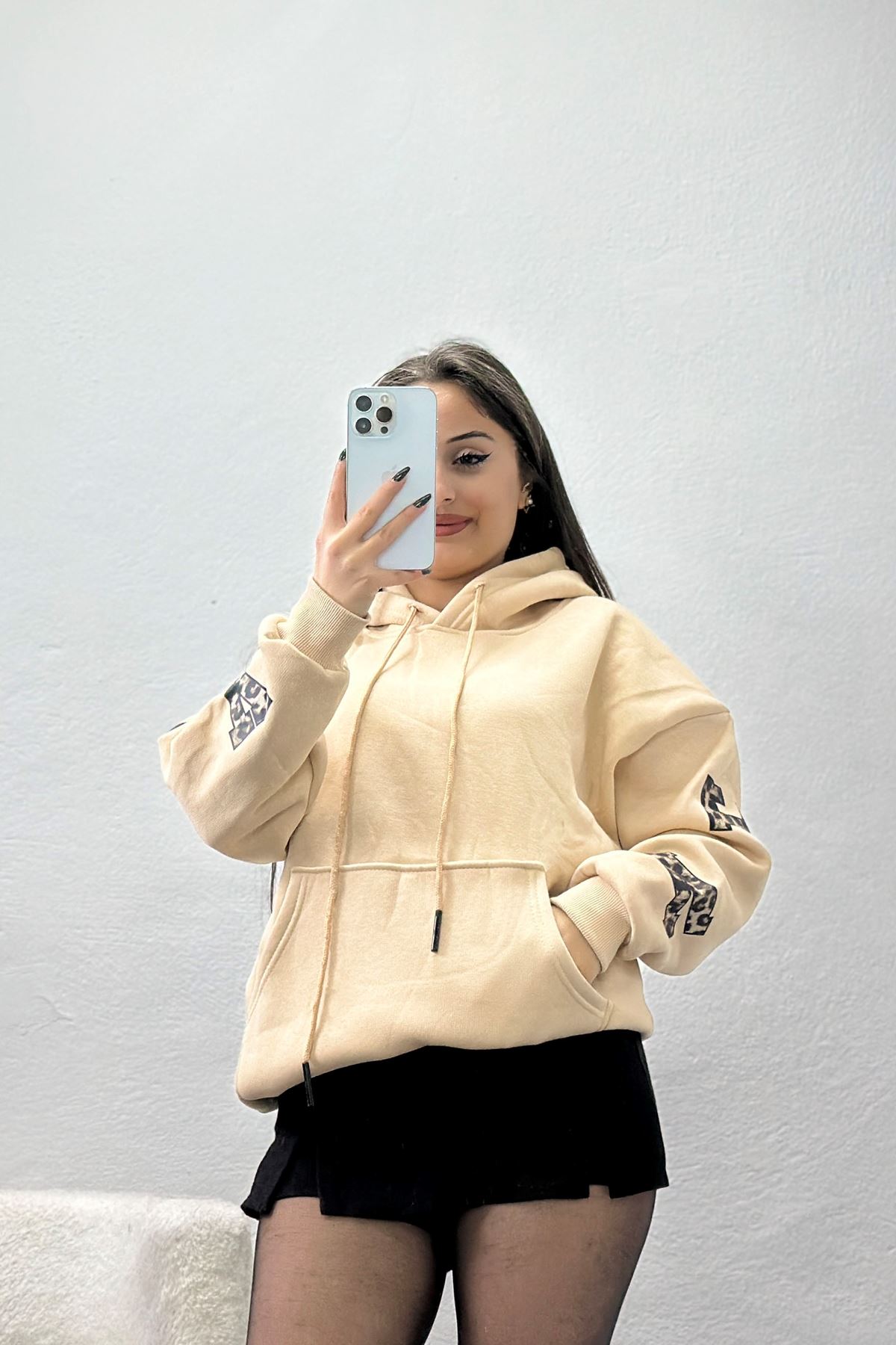 3 İplik Kanguru Cepli Kapşonlu Sweat Bej - 42249.1878.