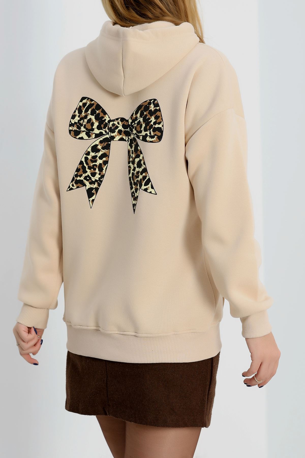 3 İplik Şardonlu Oversize Sweat Bej - 50922.1878.