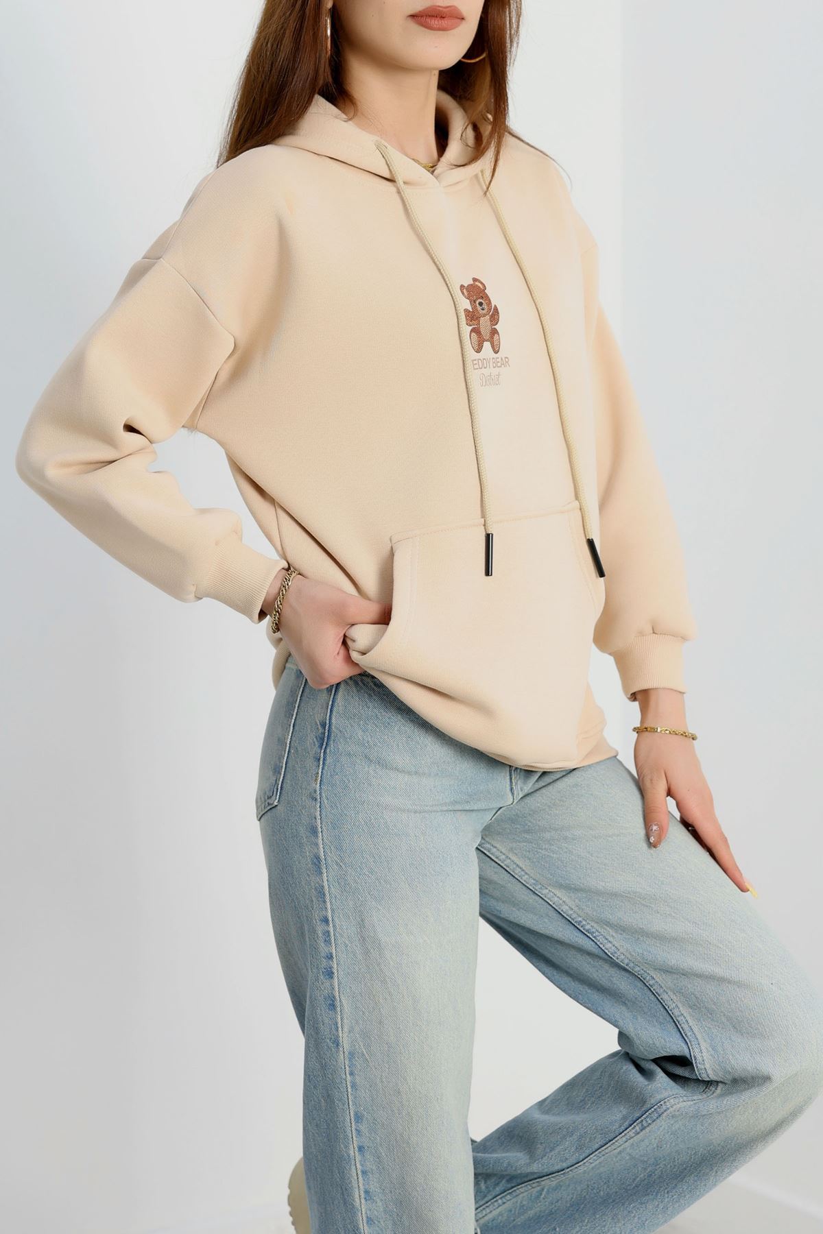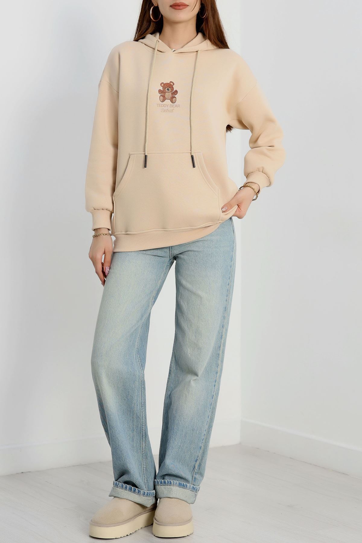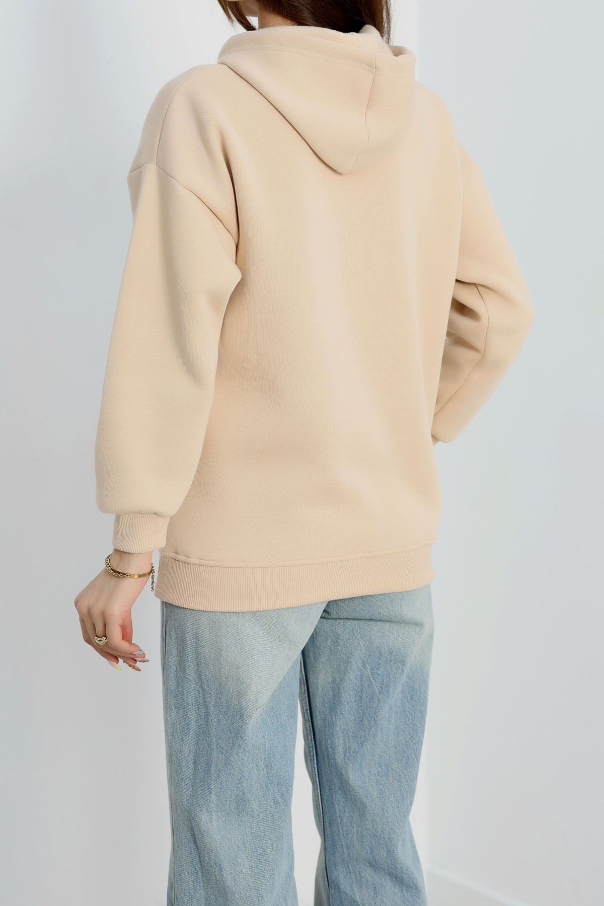 3 İplik Kanguru Cepli Kapşonlu Sweat Bej - 42254.1878.