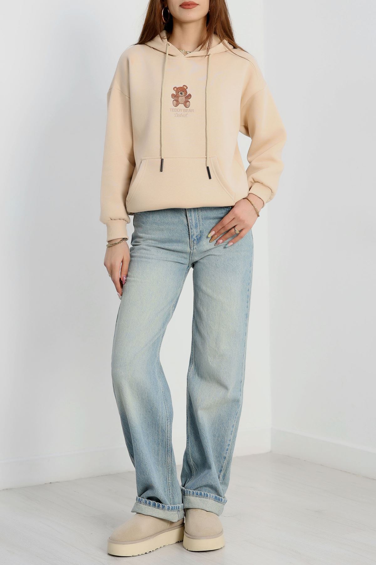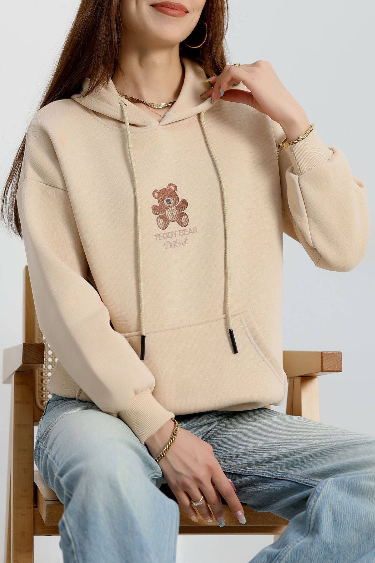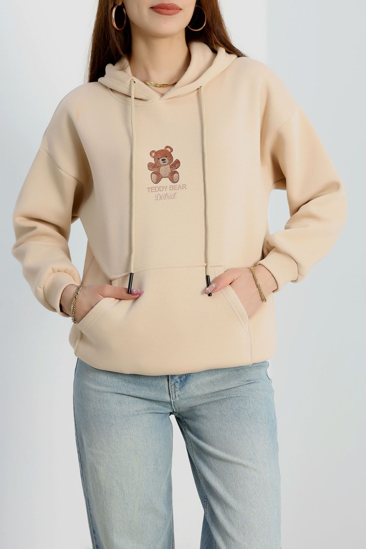 3 İplik Kanguru Cepli Kapşonlu Sweat Bej - 42254.1878.