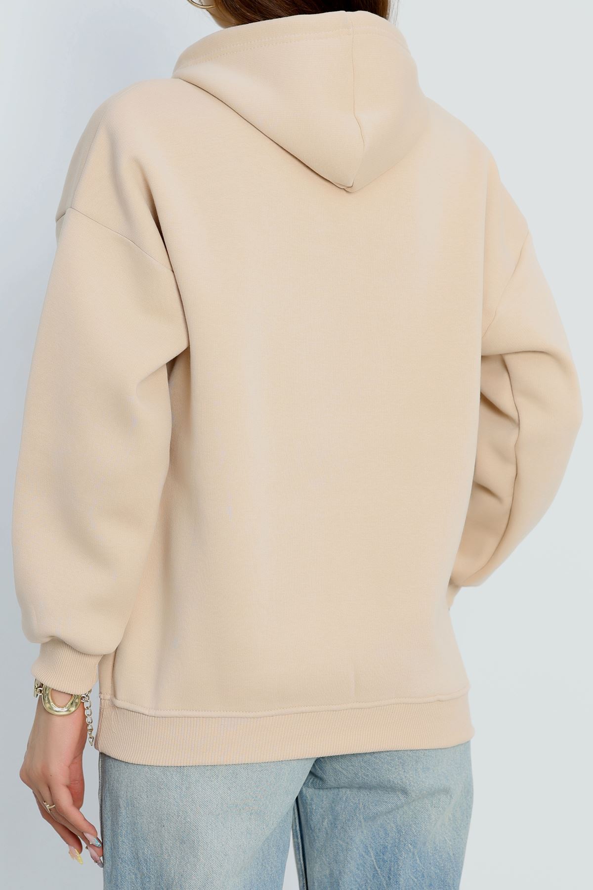 3 İplik Kapşonlu Baskılı Sweat Bej - 42229.1878.