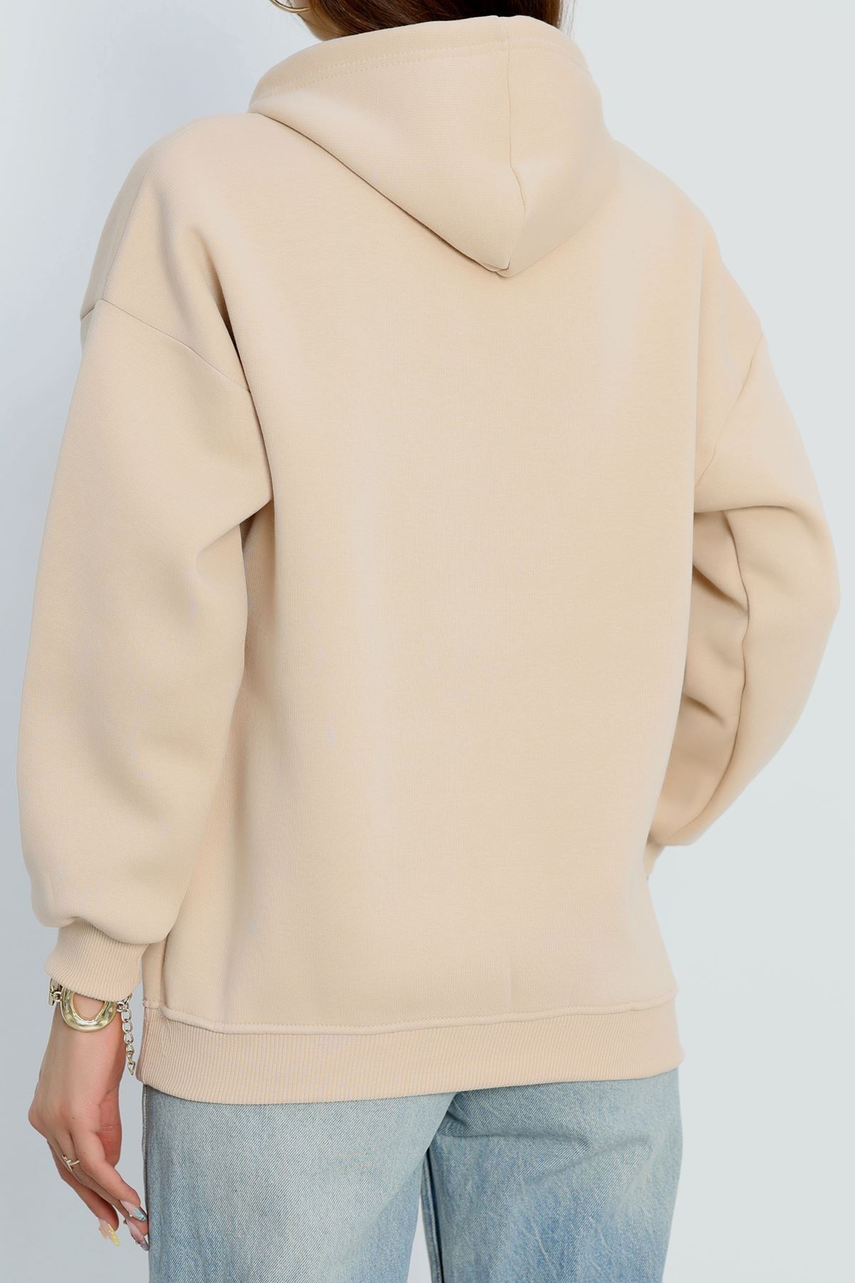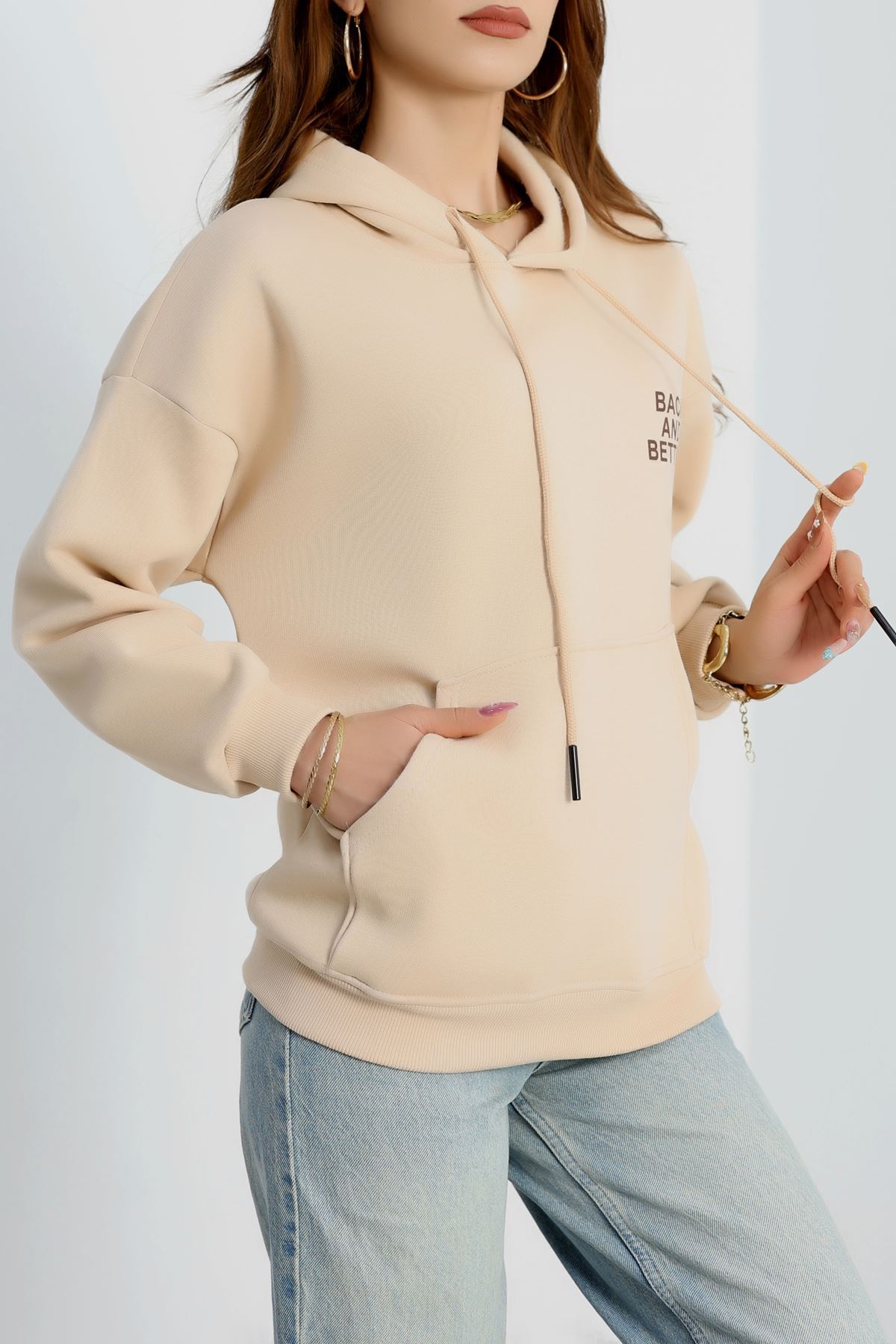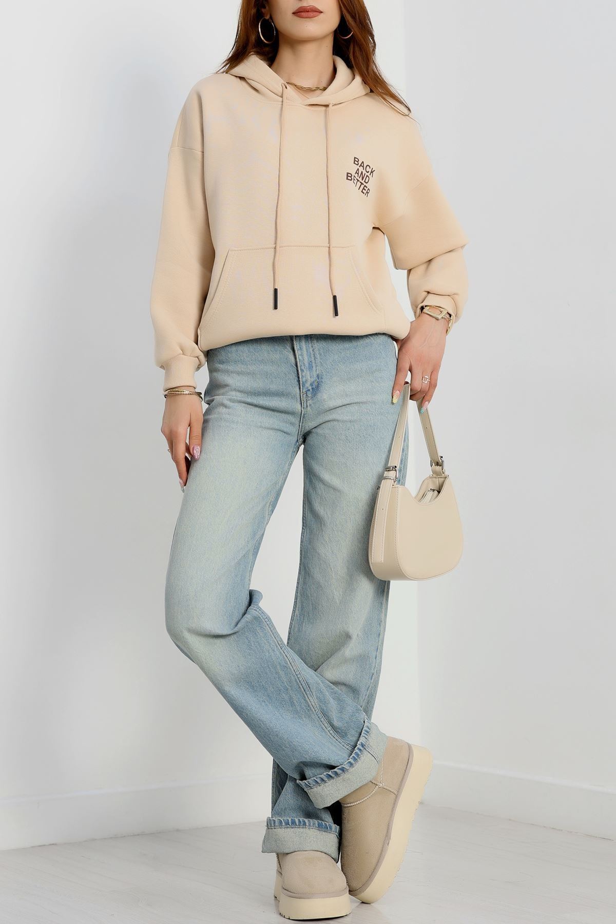 3 İplik Kapşonlu Baskılı Sweat Ekru - 42229.1878.