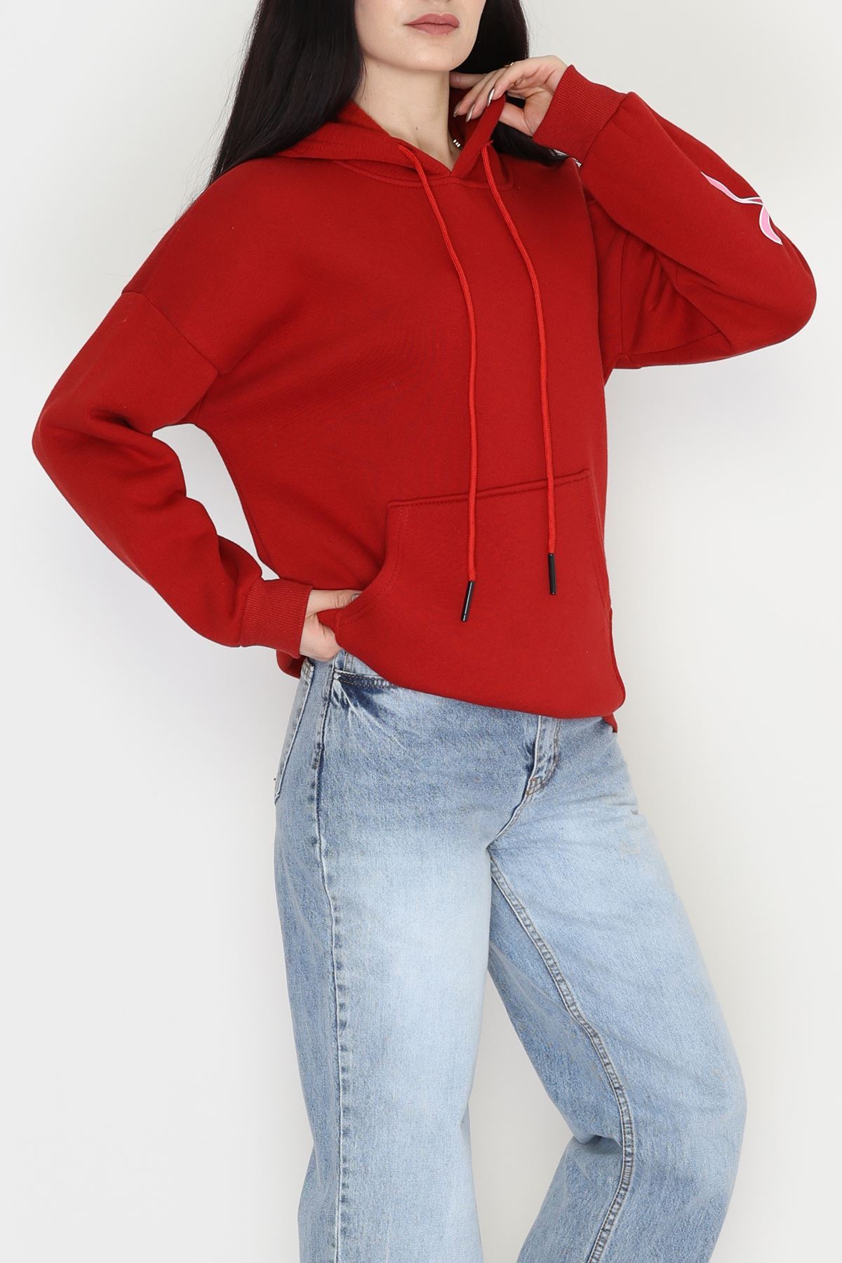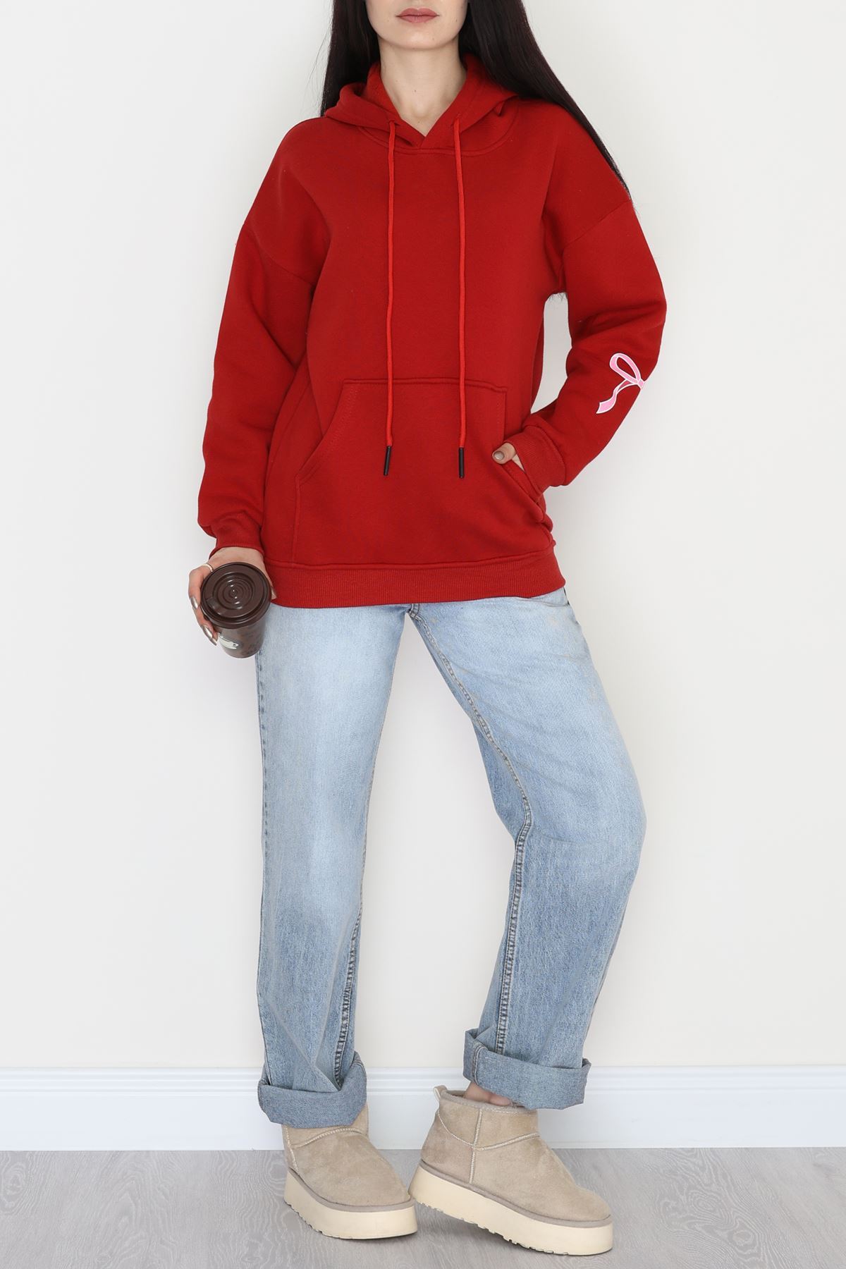 3 İplik Kanguru Cepli Kapşonlu Sweat Bordo - 42252.1878.