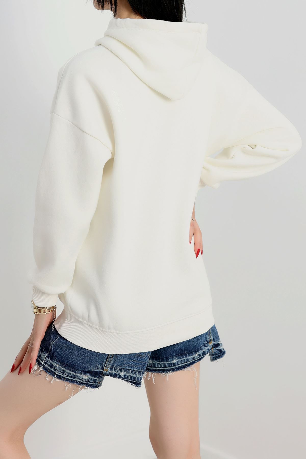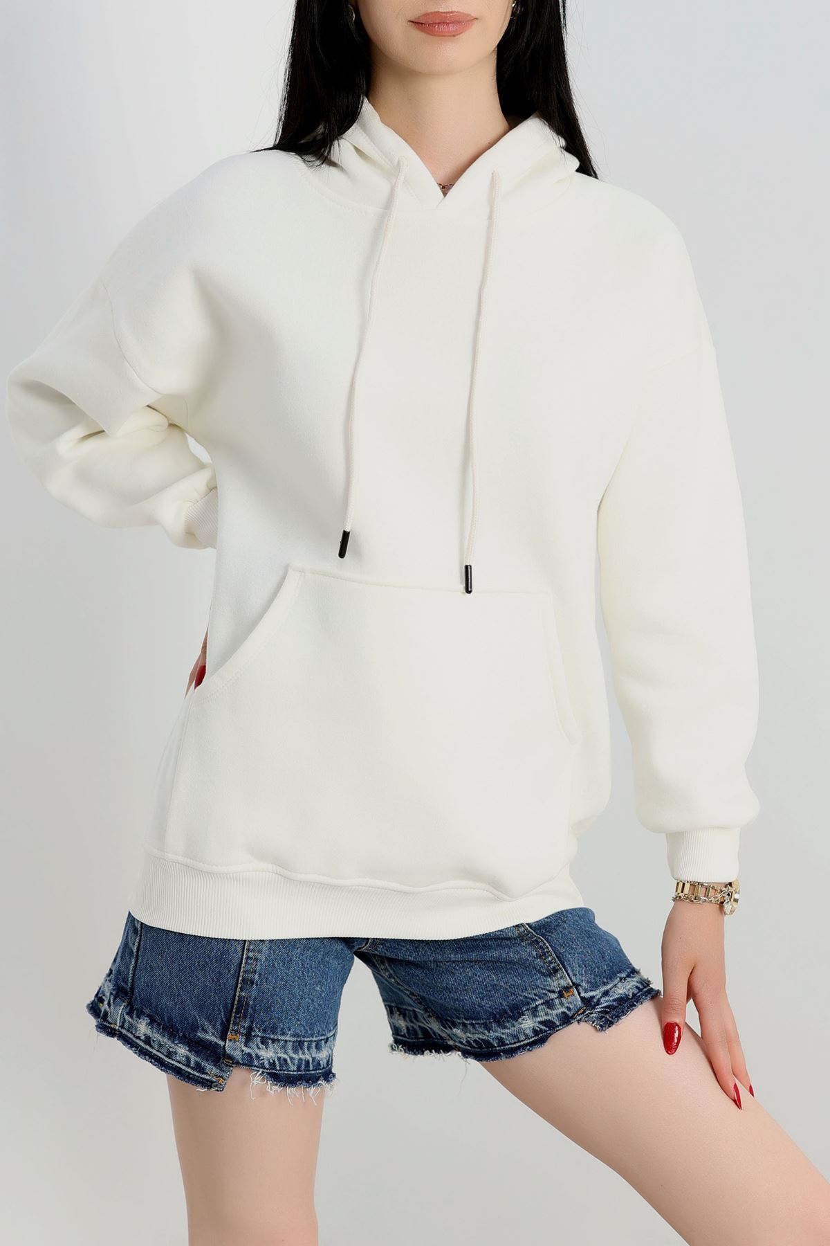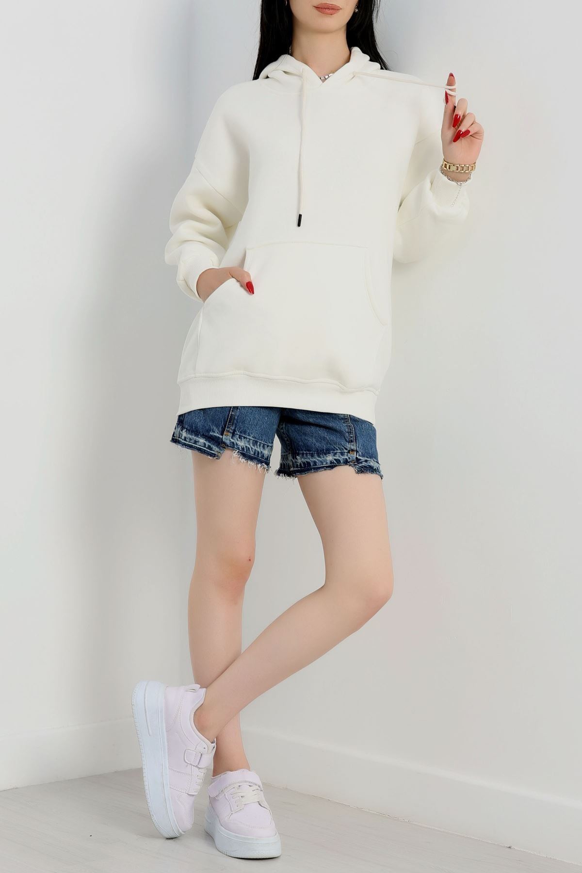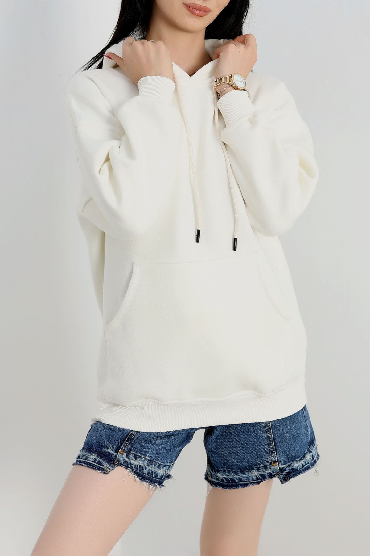 3 İplik Kanguru Cepli Kapşonlu Sweat Ekru - 20960.1878.