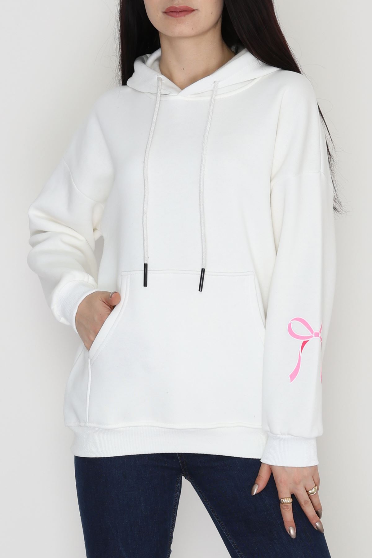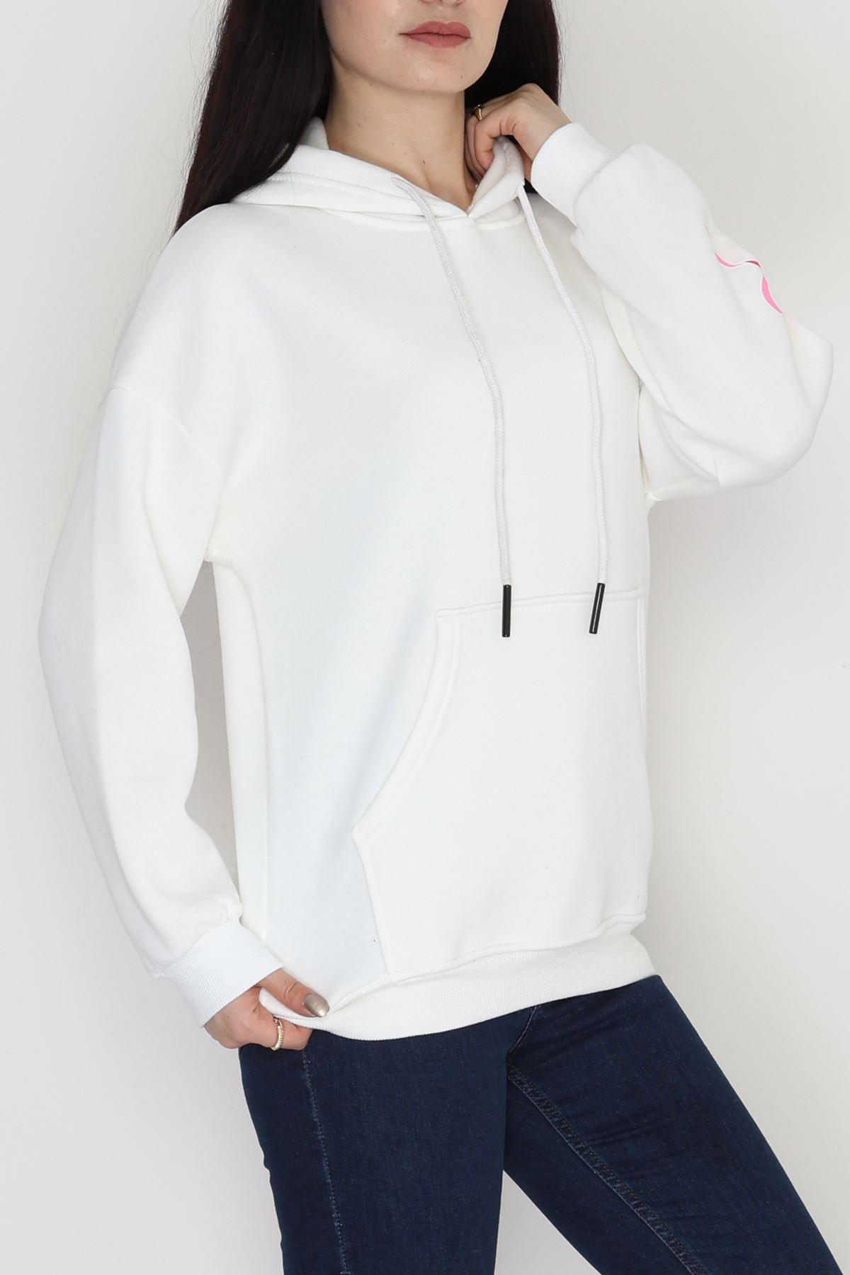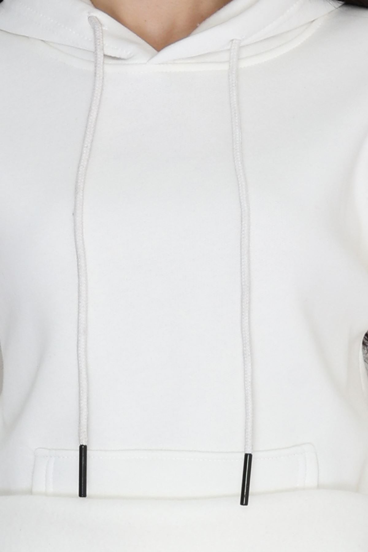 3 İplik Kanguru Cepli Kapşonlu Sweat Ekrupembe - 42252.1878.
