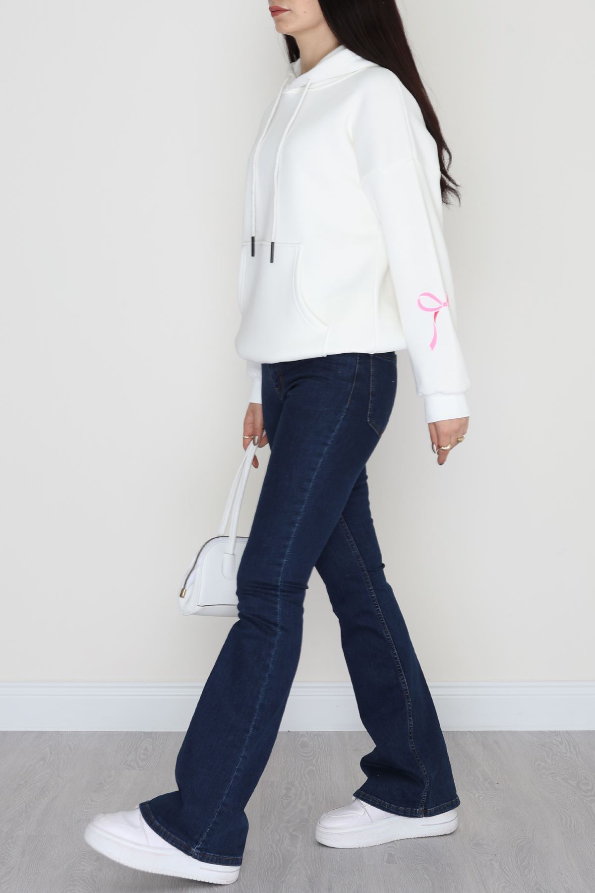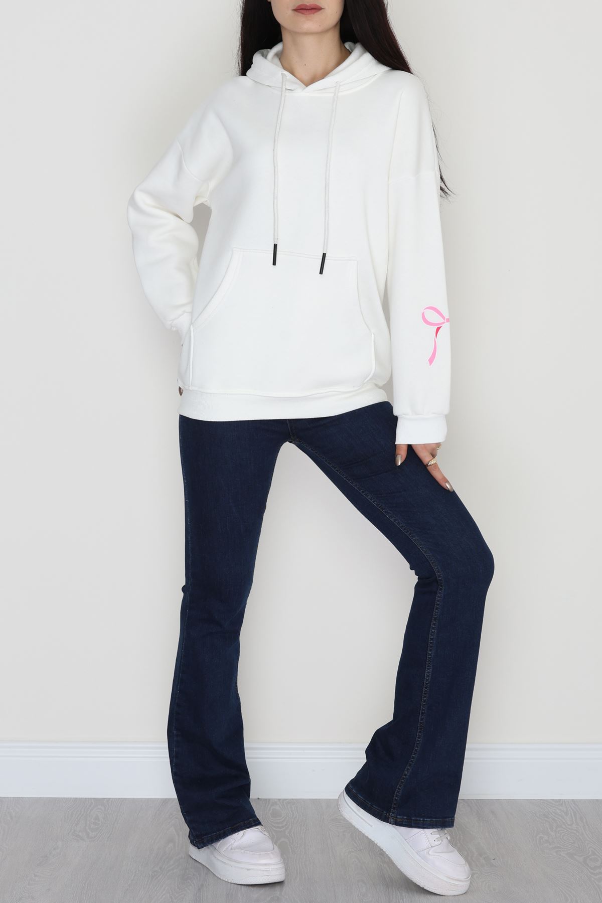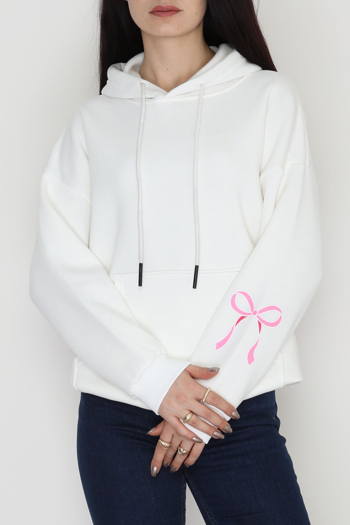 3 İplik Kanguru Cepli Kapşonlu Sweat Ekrupembe - 42252.1878.