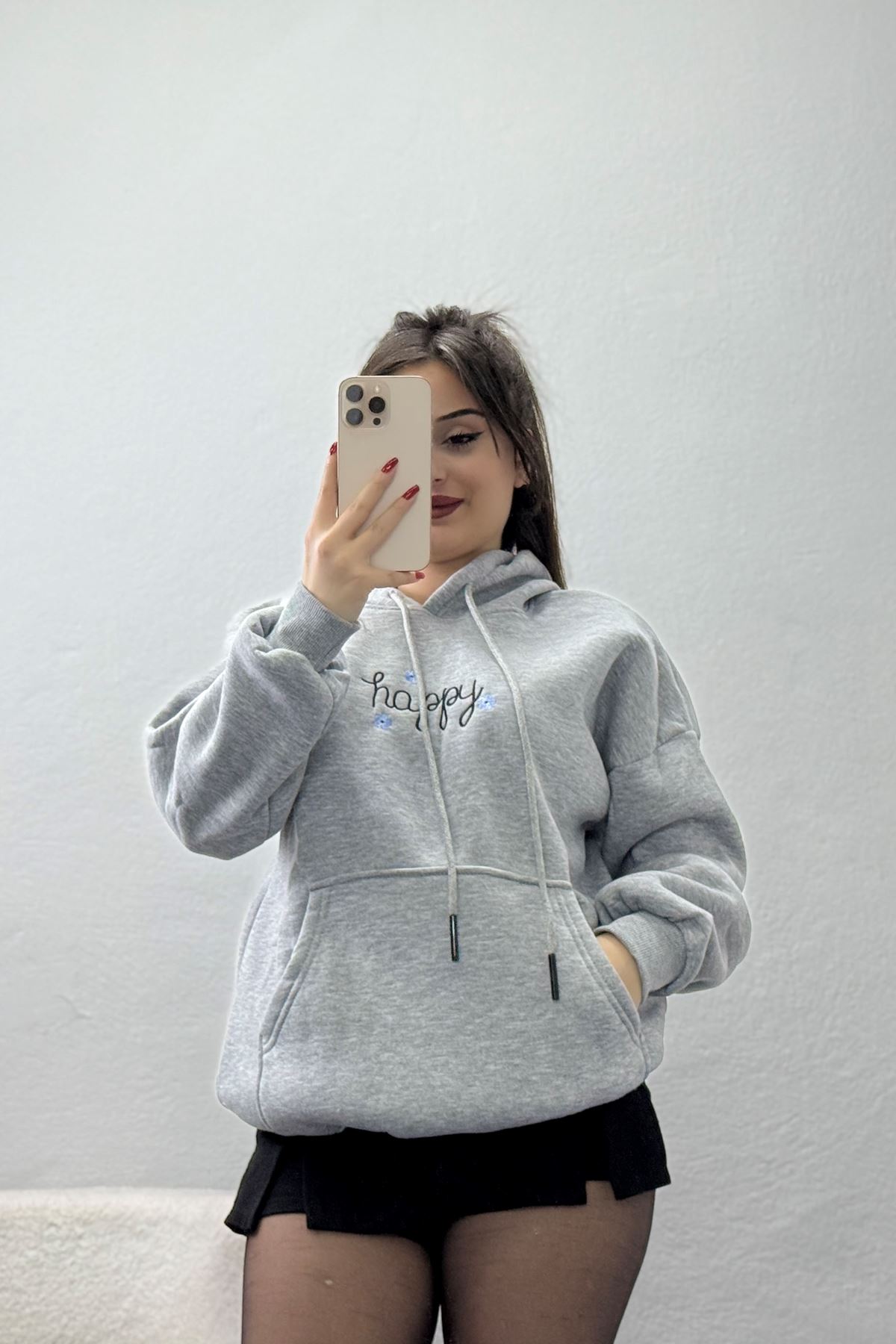 3 İplik Kanguru Cepli Kapşonlu Sweat Gri - 42250.1878.