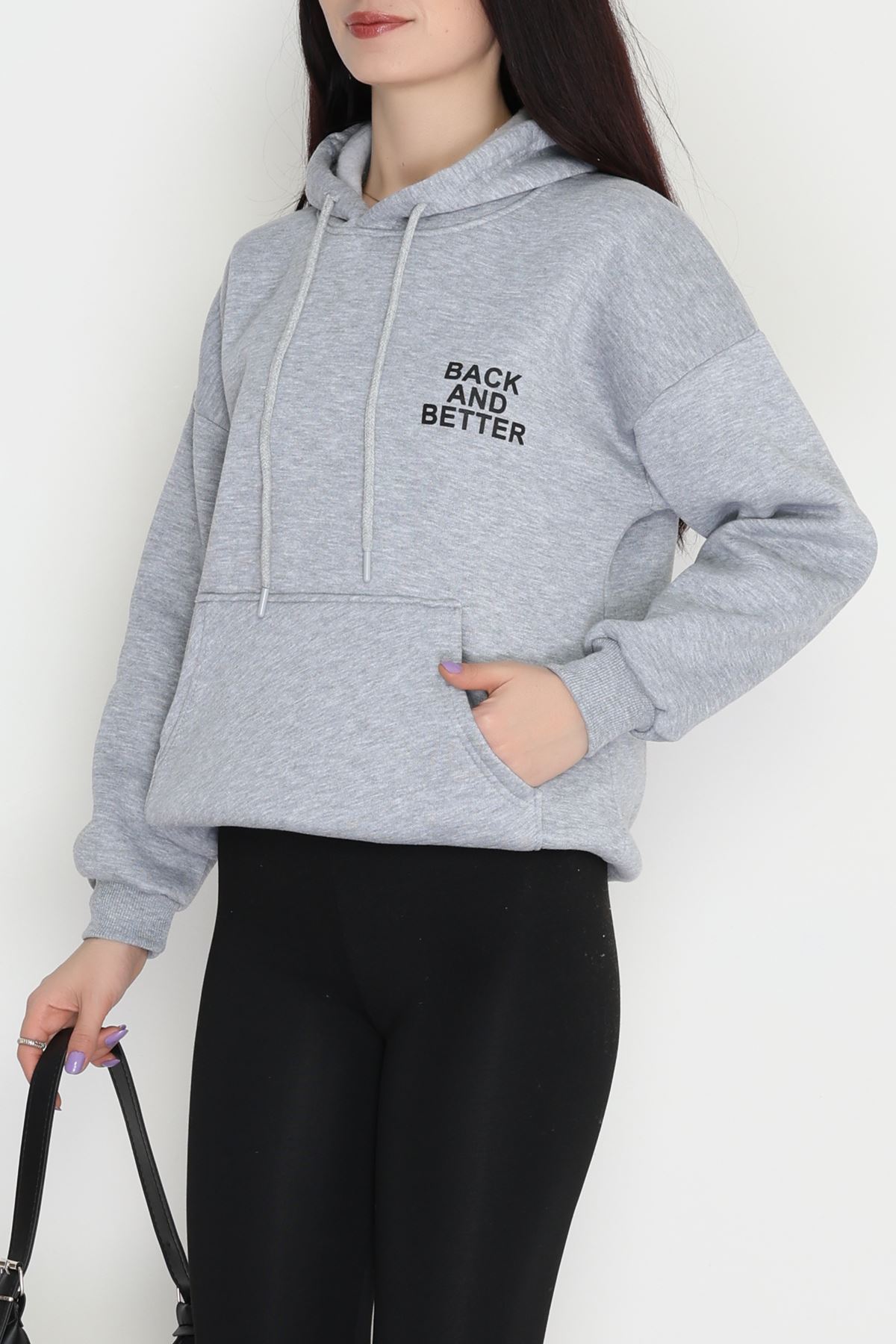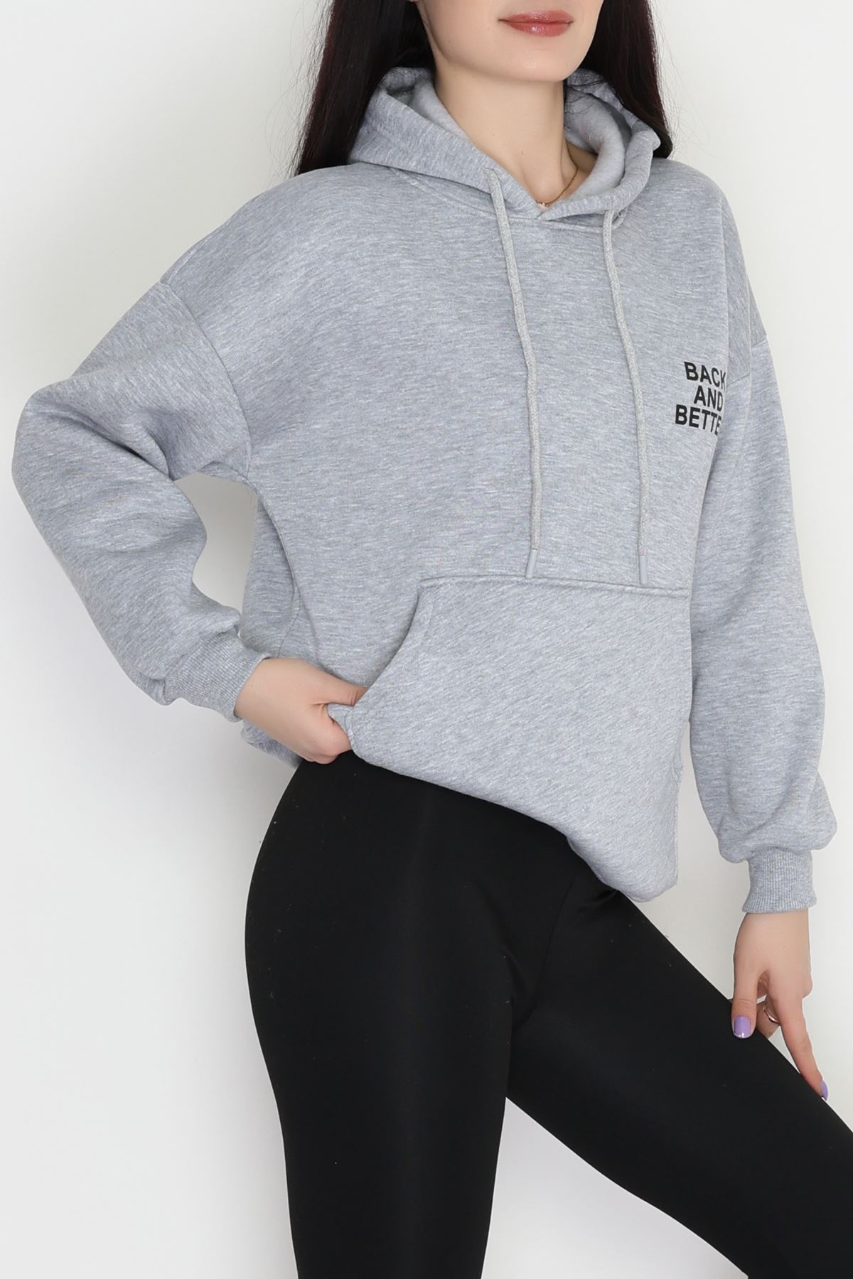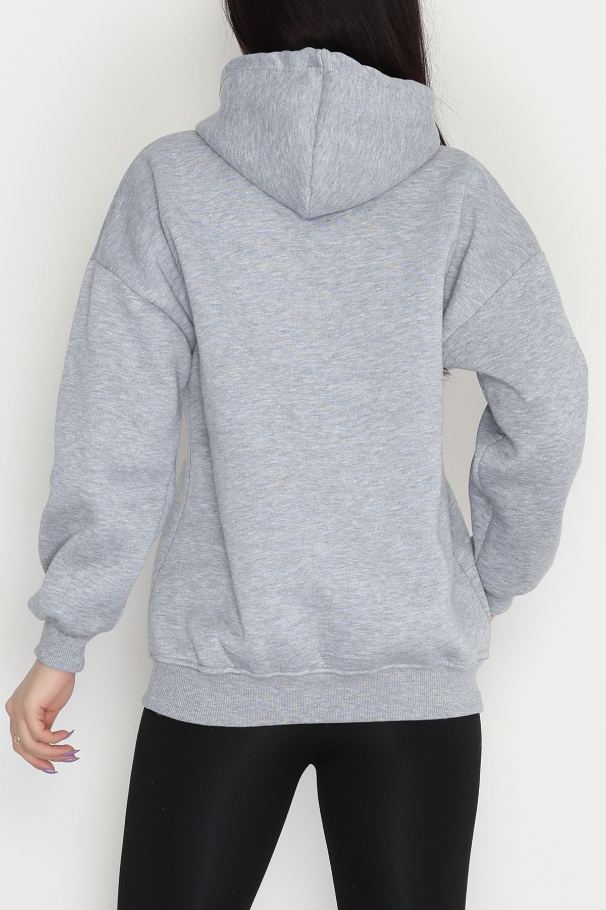 3 İplik Kanguru Cepli Kapşonlu Sweat Gri - 42257.1878.