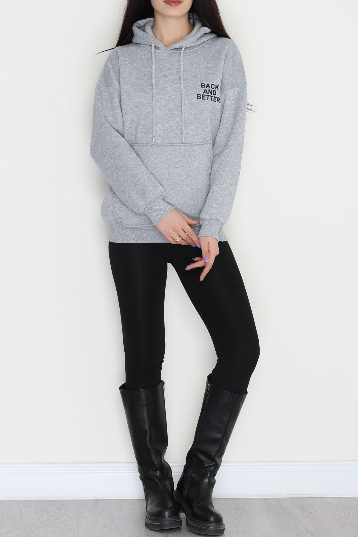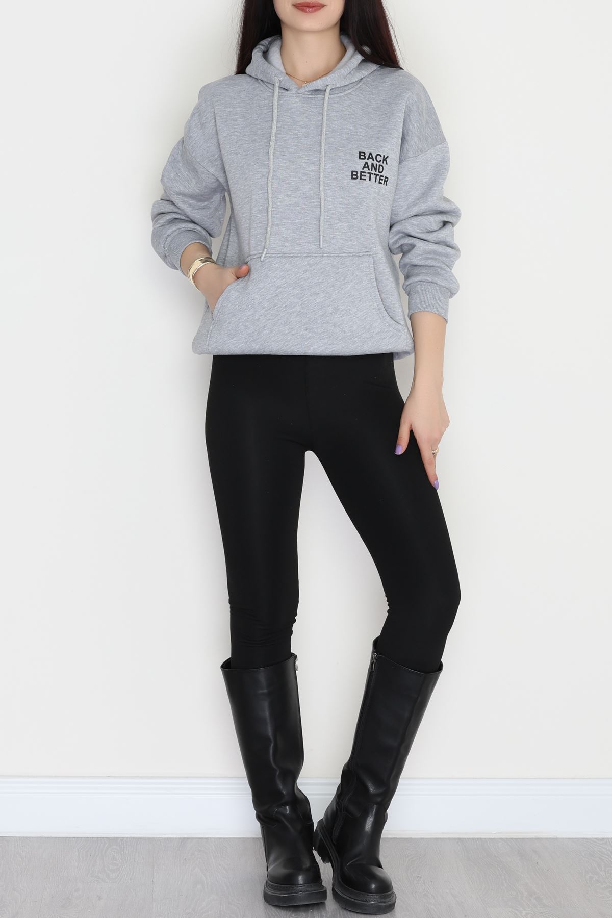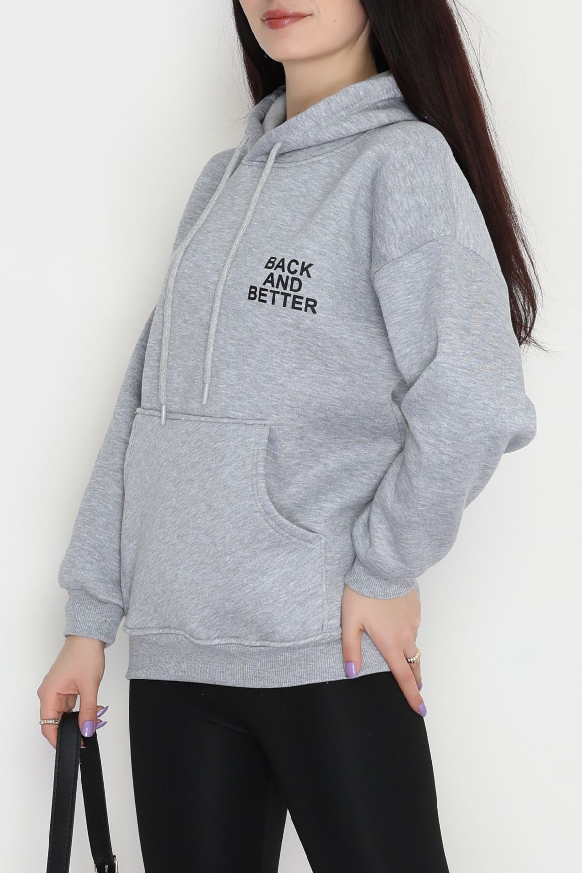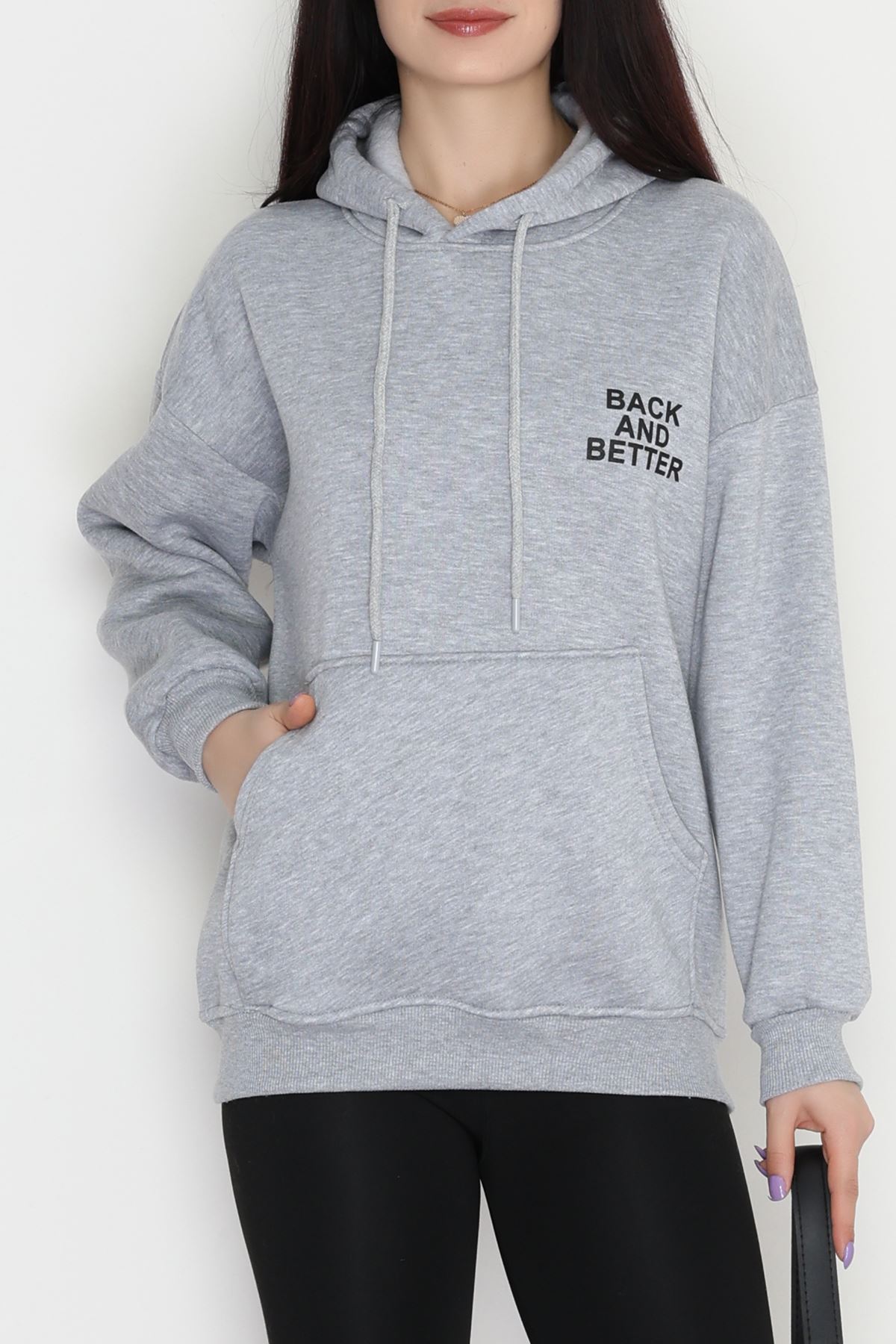3 İplik Kanguru Cepli Kapşonlu Sweat Gri - 42257.1878.