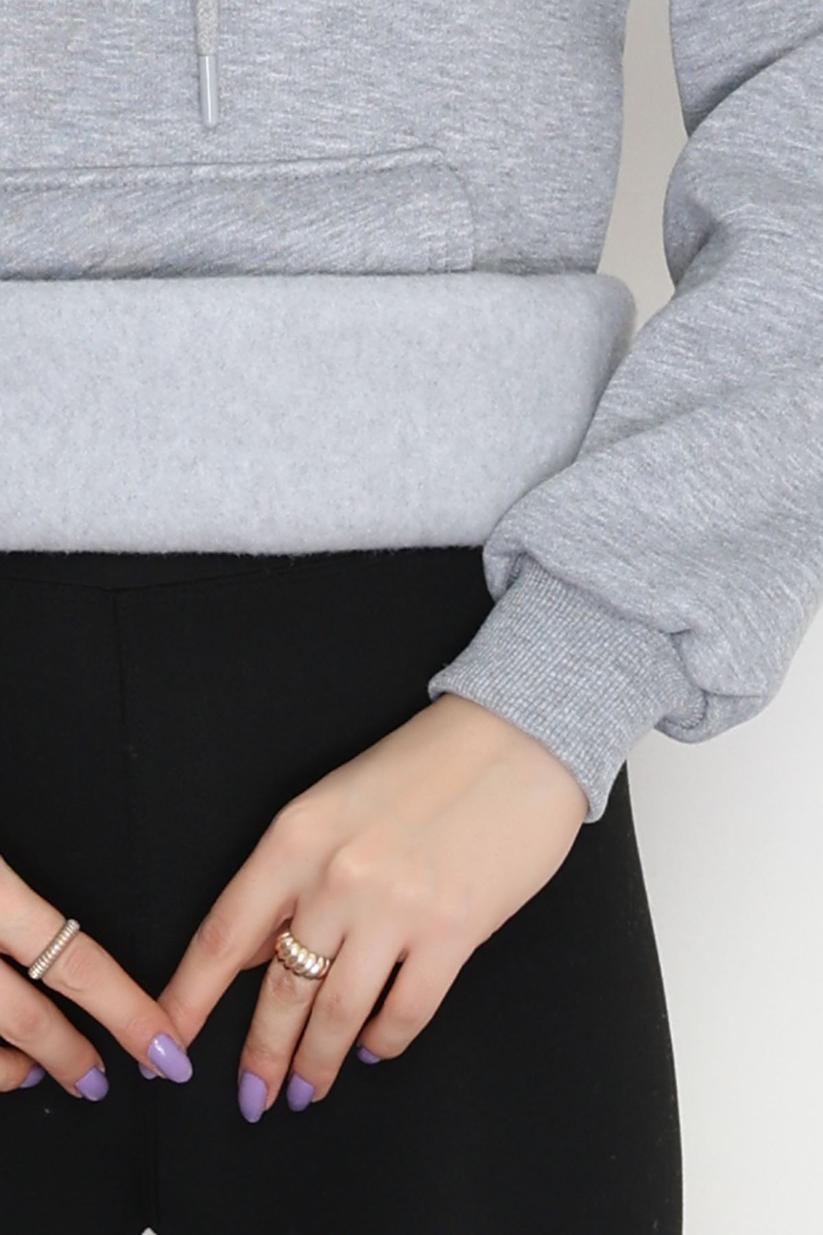 3 İplik Kanguru Cepli Kapşonlu Sweat Gri - 42251.1878.