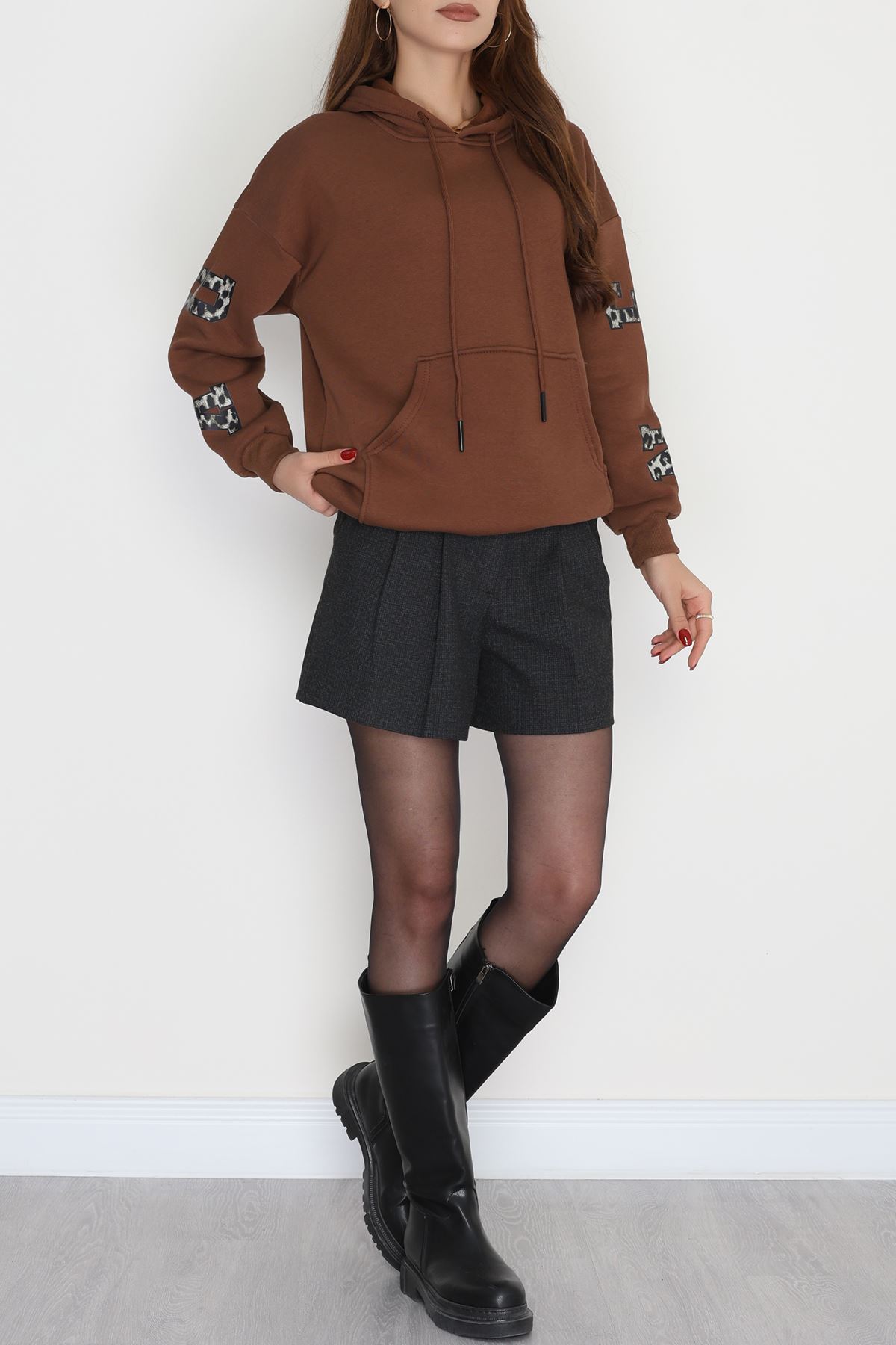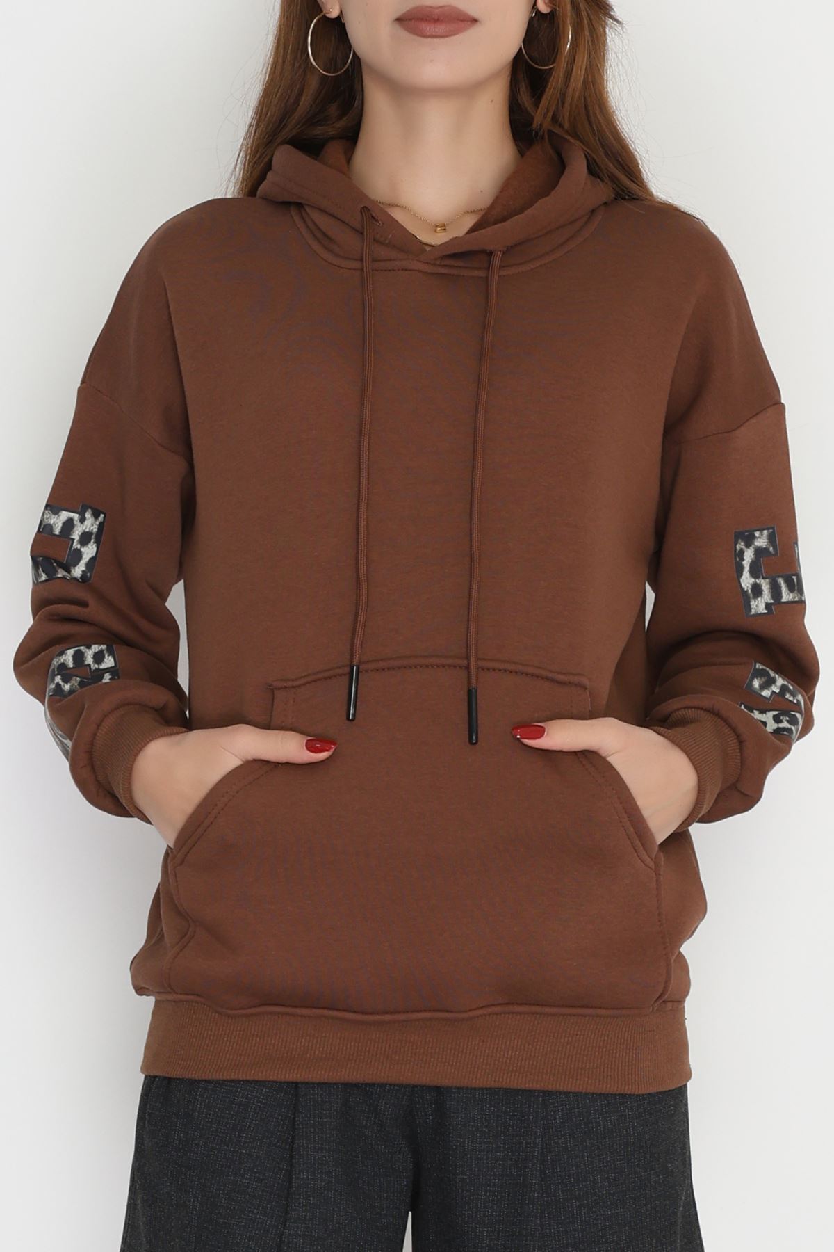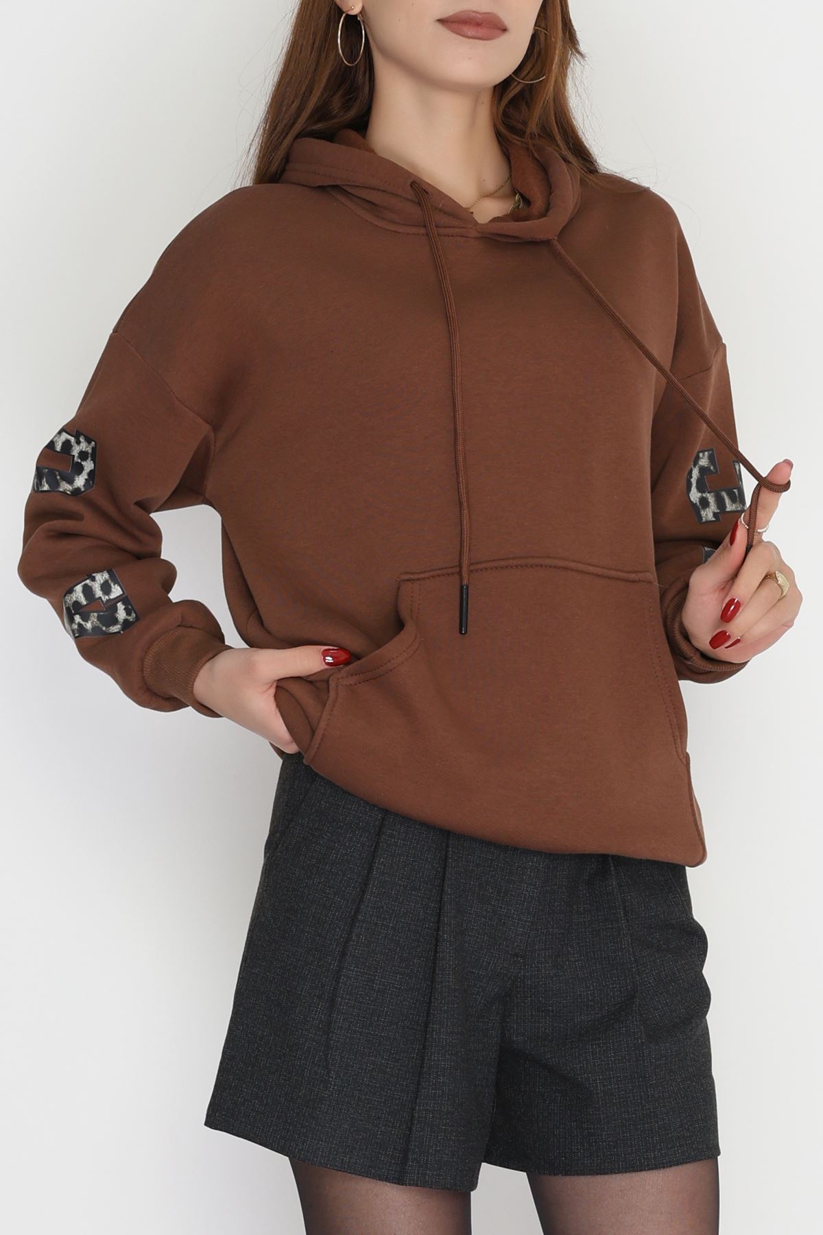 3 İplik Kanguru Cepli Kapşonlu Sweat Kahve - 42249.1878.