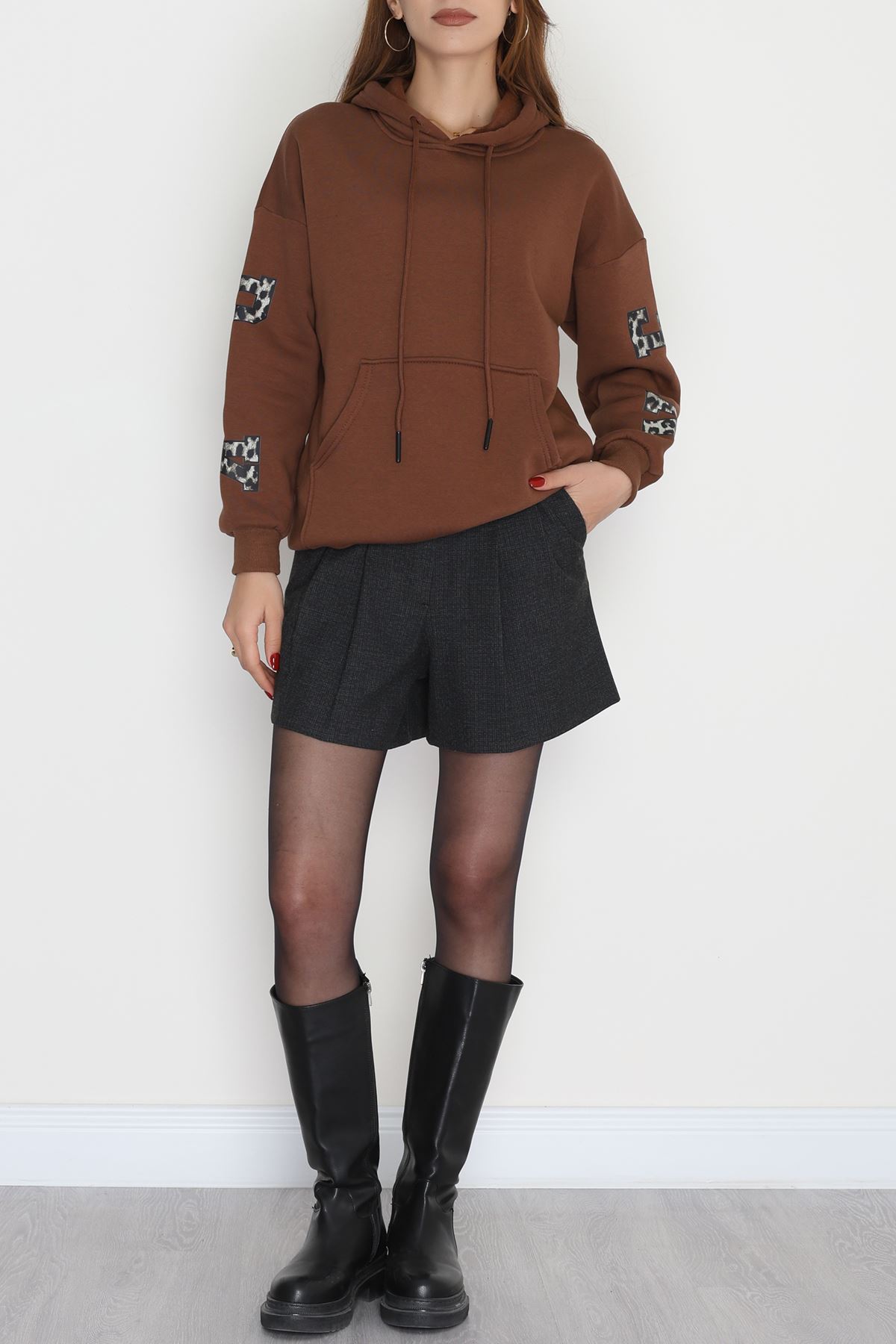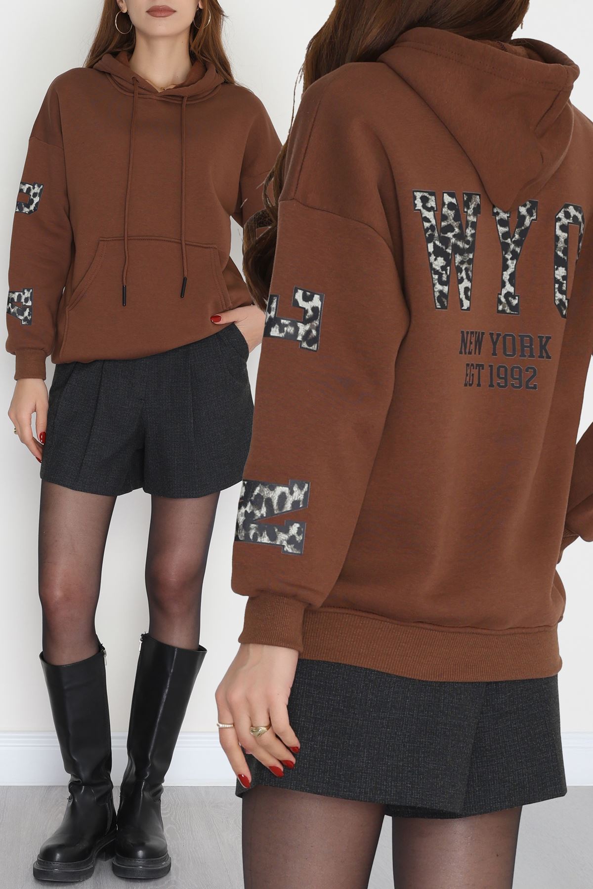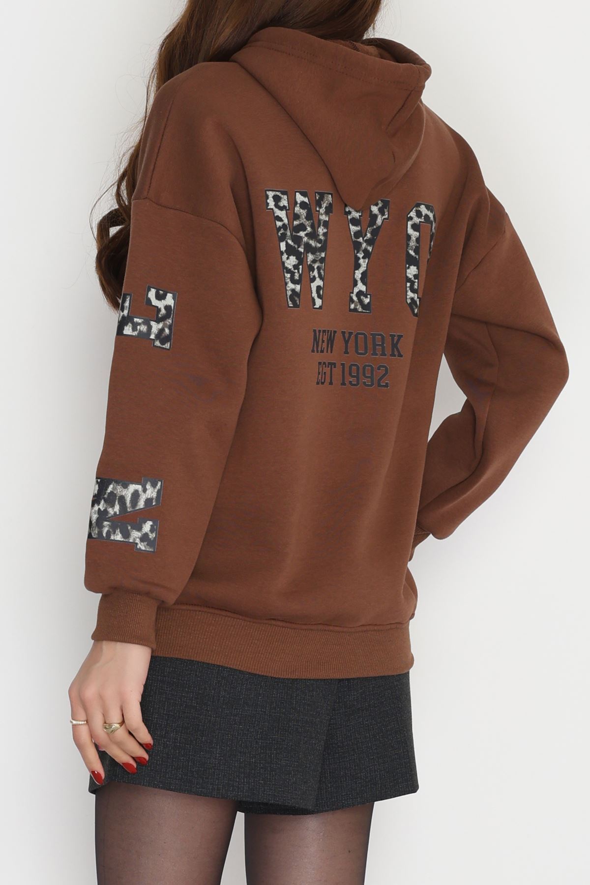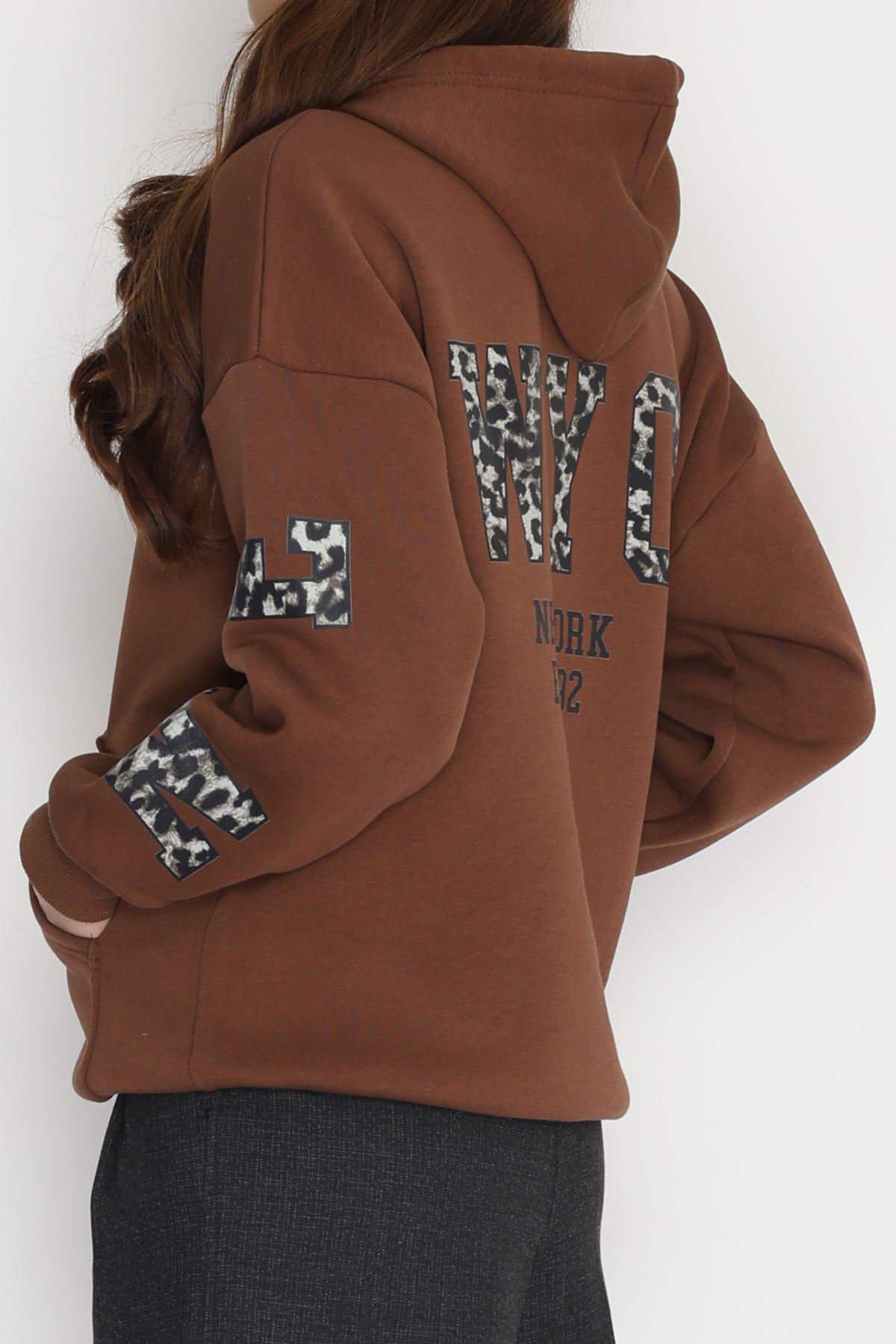 3 İplik Kanguru Cepli Kapşonlu Sweat Kahve - 42249.1878.