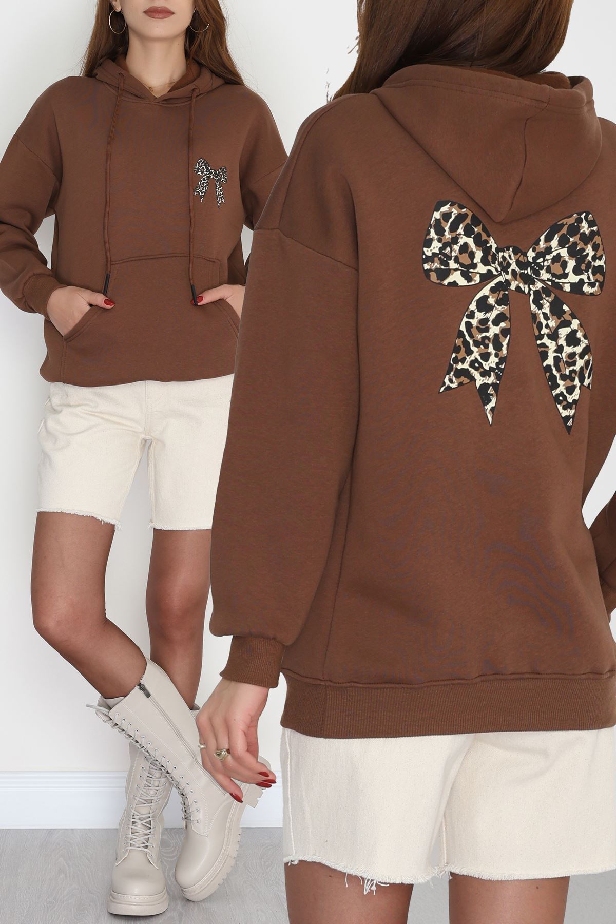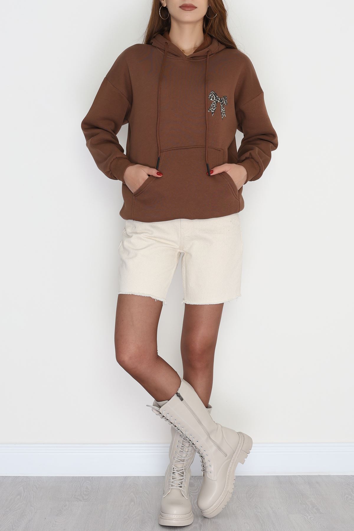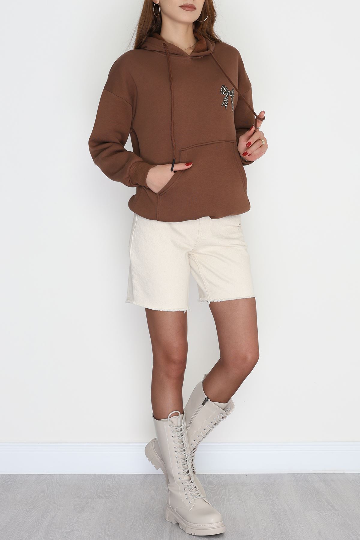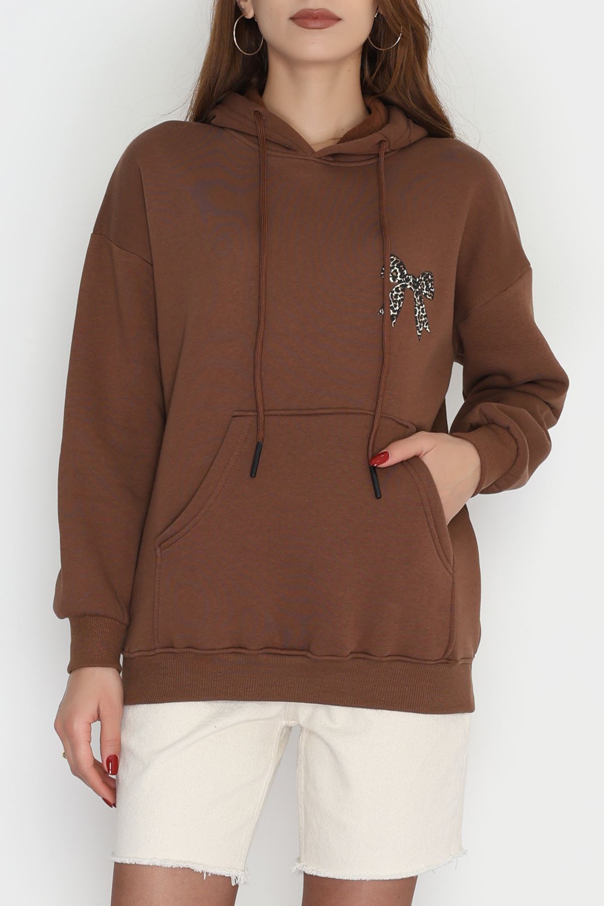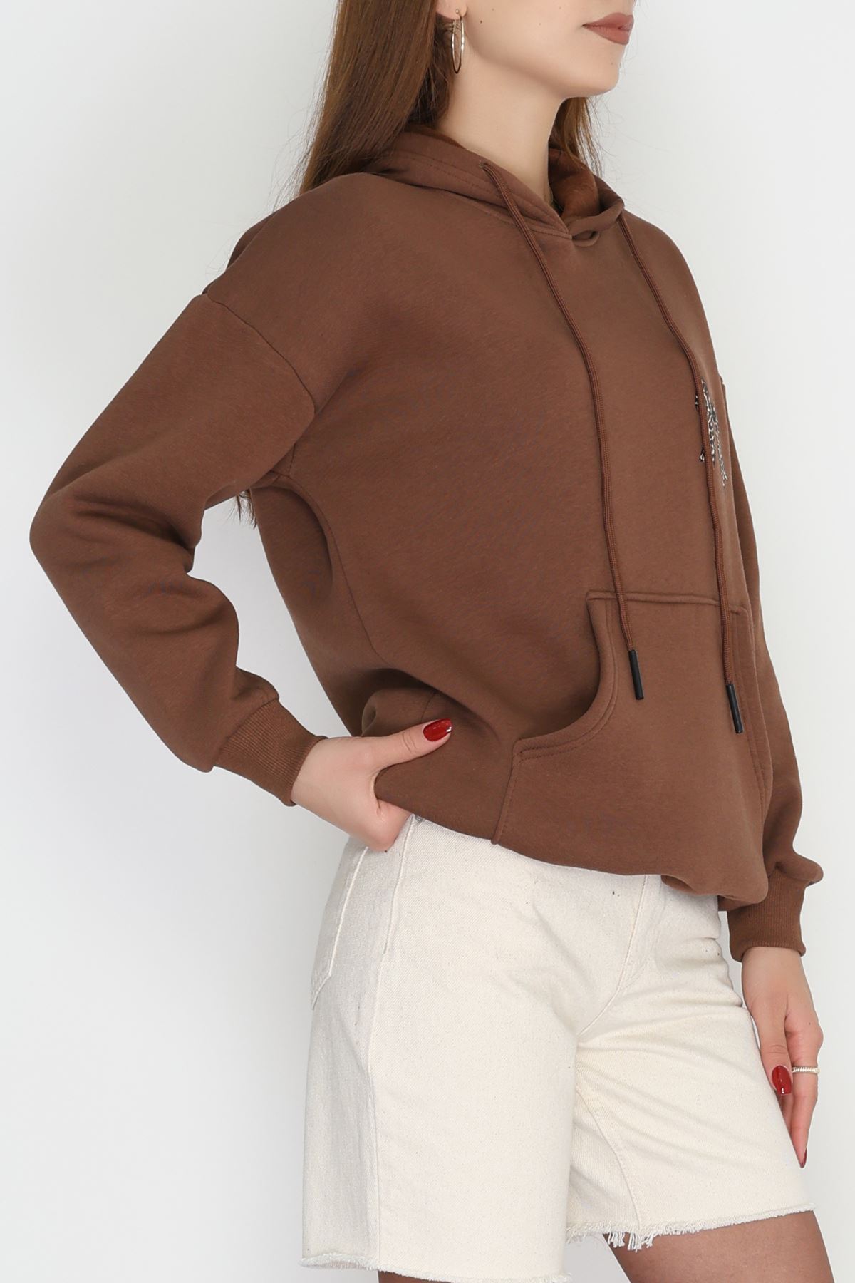 3 İplik Kanguru Cepli Kapşonlu Sweat Kahve - 42251.1878.
