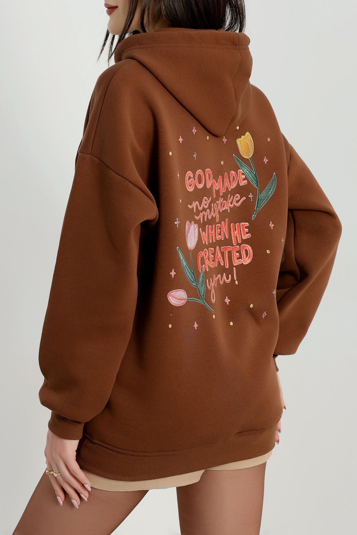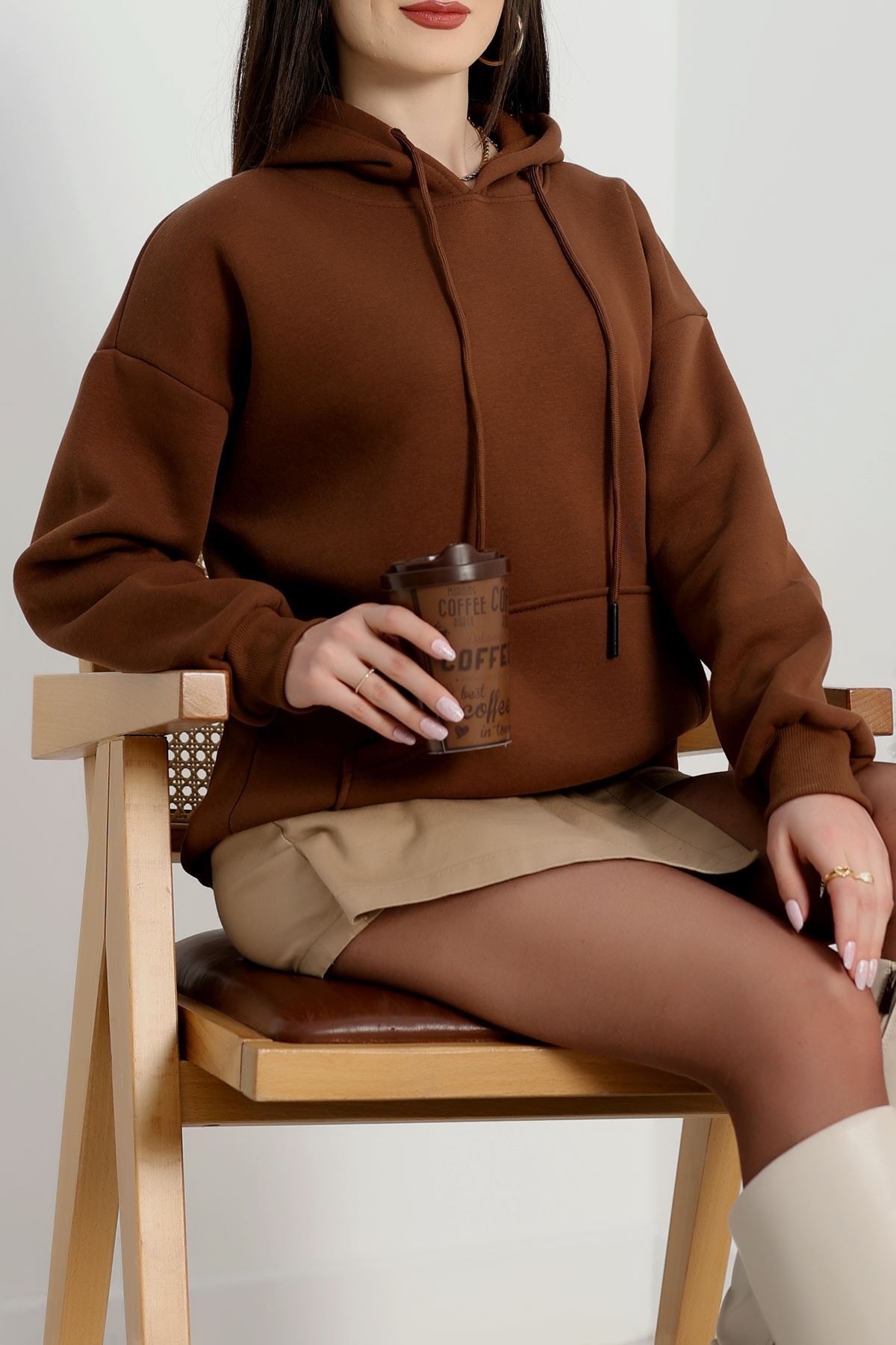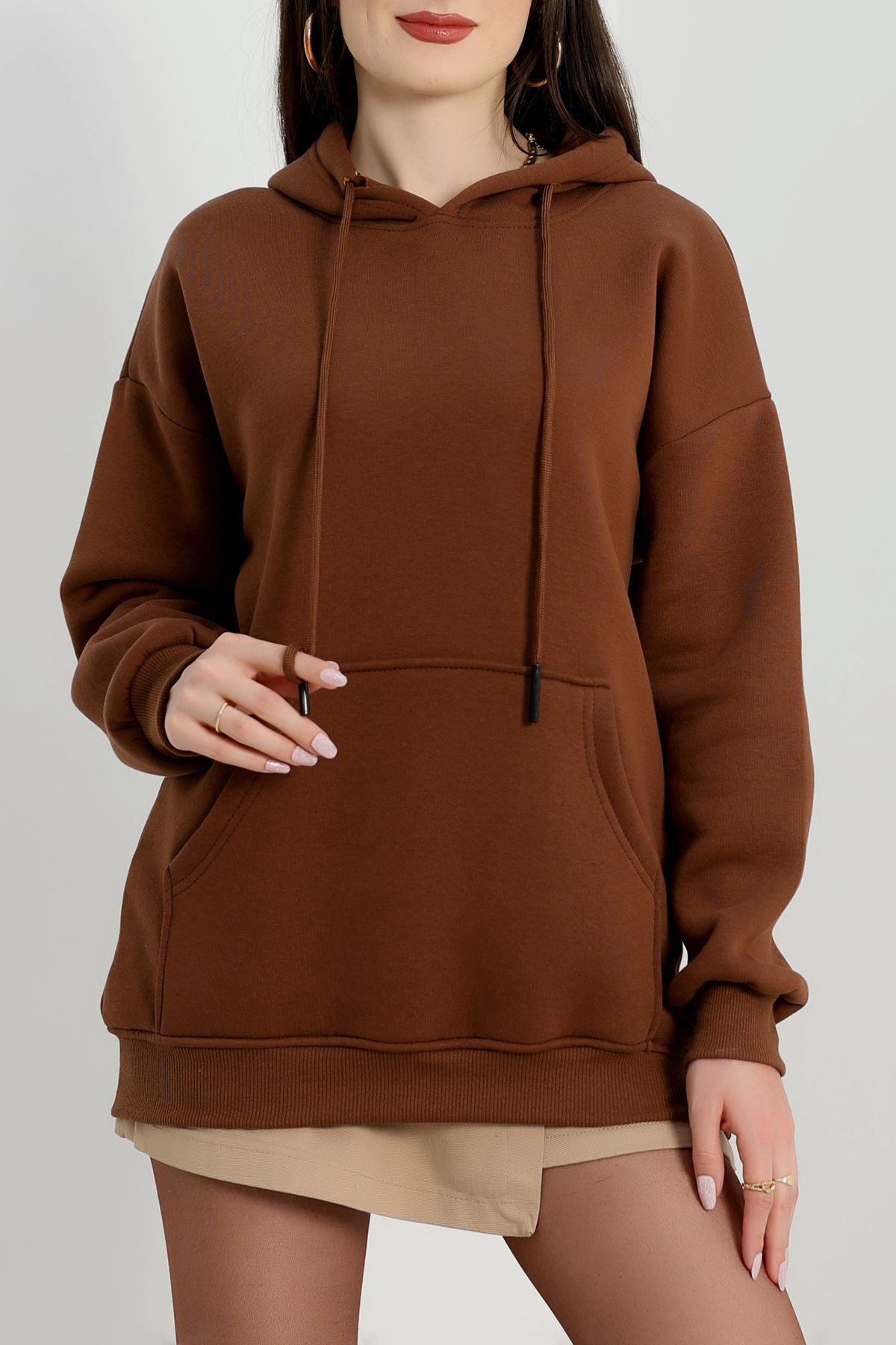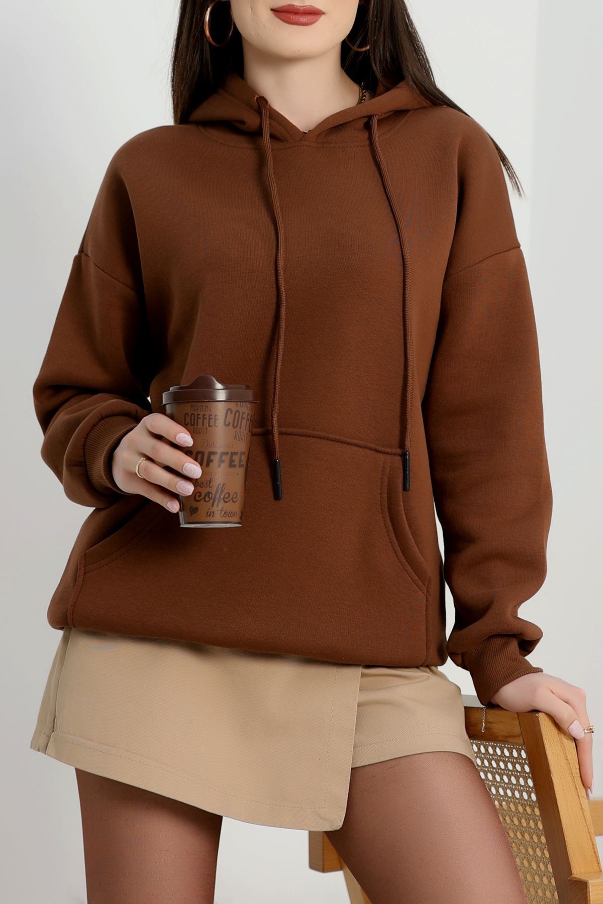 3 İplik Kanguru Cepli Kapşonlu Sweat Kahve - 42256.1878.