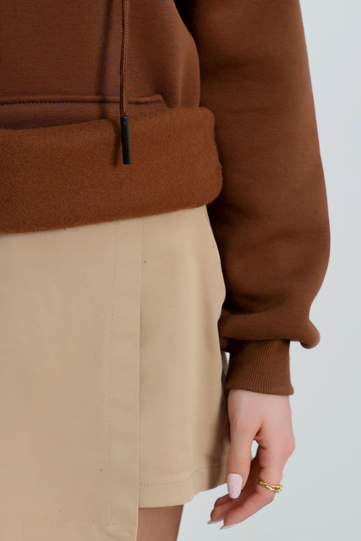 3 İplik Kanguru Cepli Kapşonlu Sweat Bejkahve - 42253.1878.