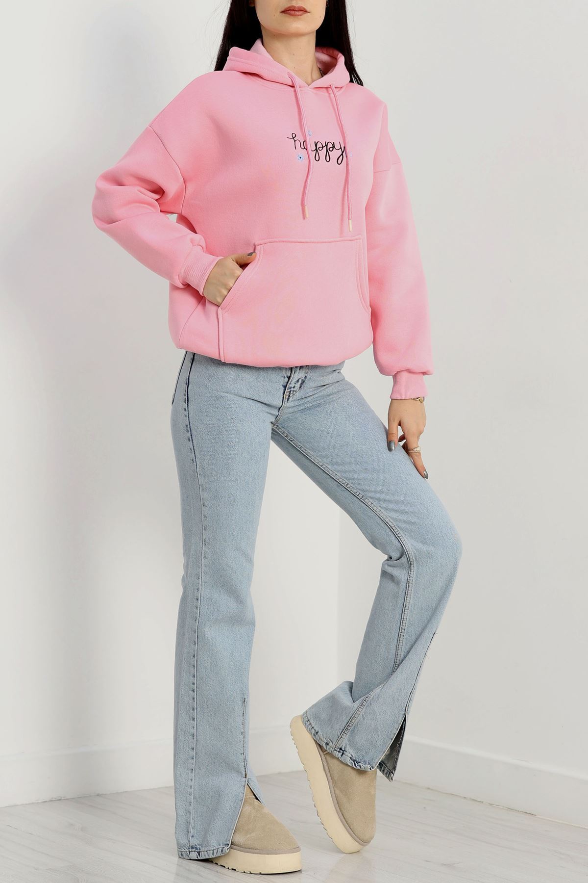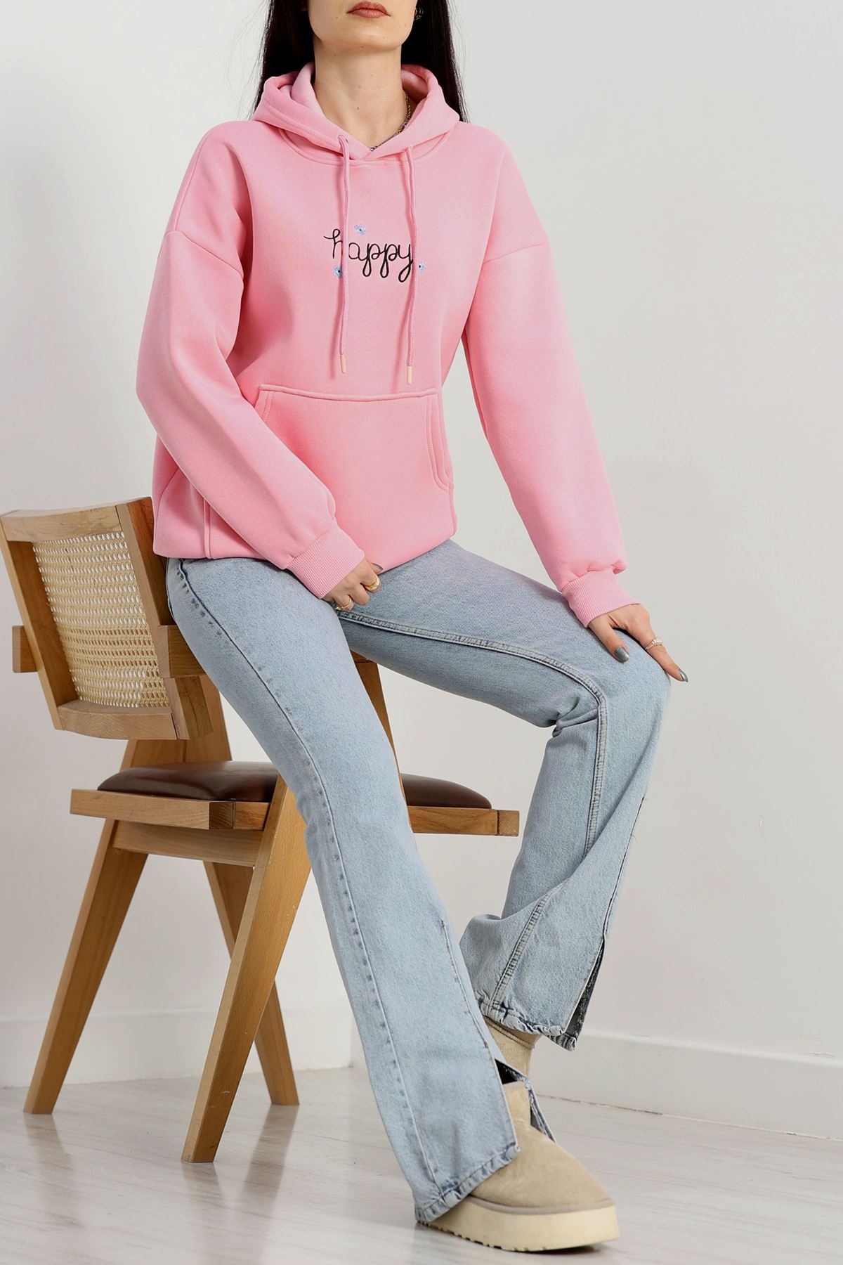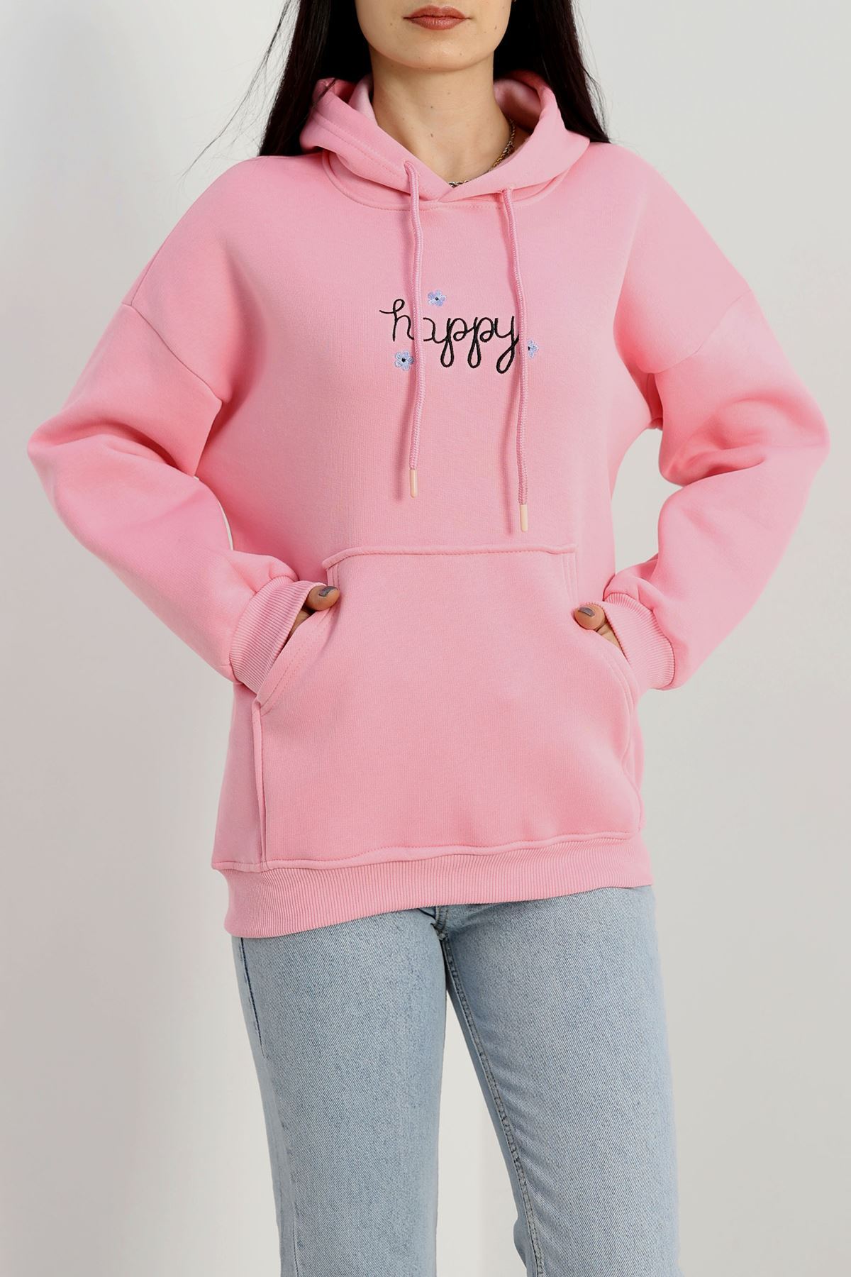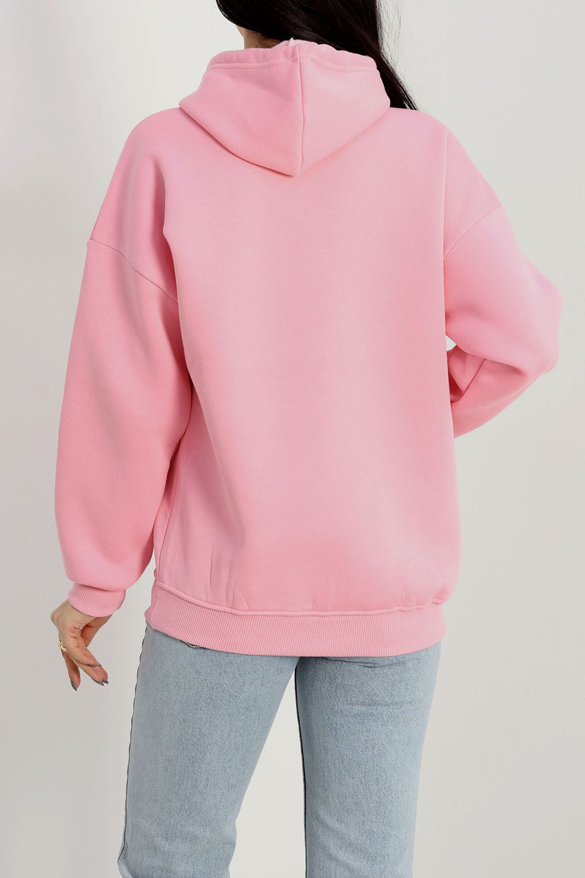3 İplik Kanguru Cepli Kapşonlu Sweat Pembe - 42250.1878.