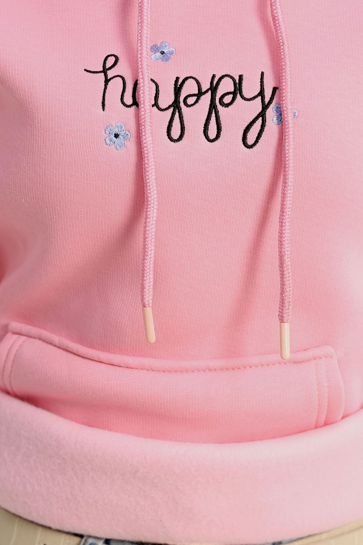 3 İplik Kapşonlu Nakışlı Sweat Fuşyabeyaz - 42231.1878.