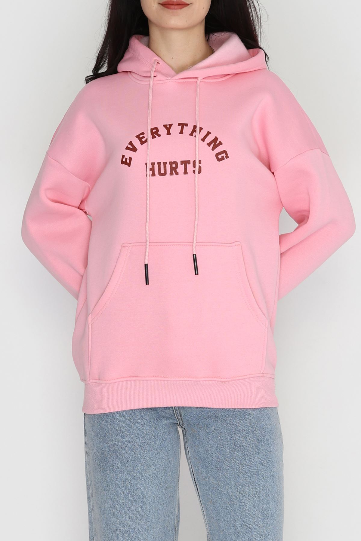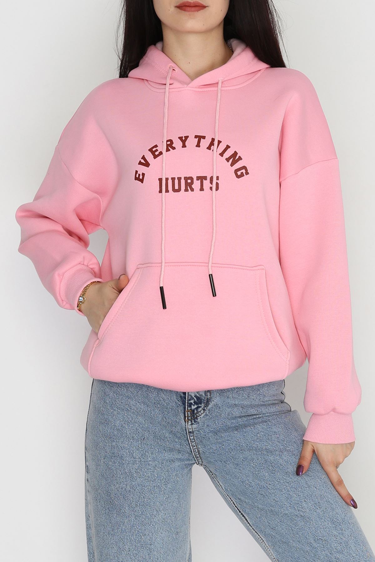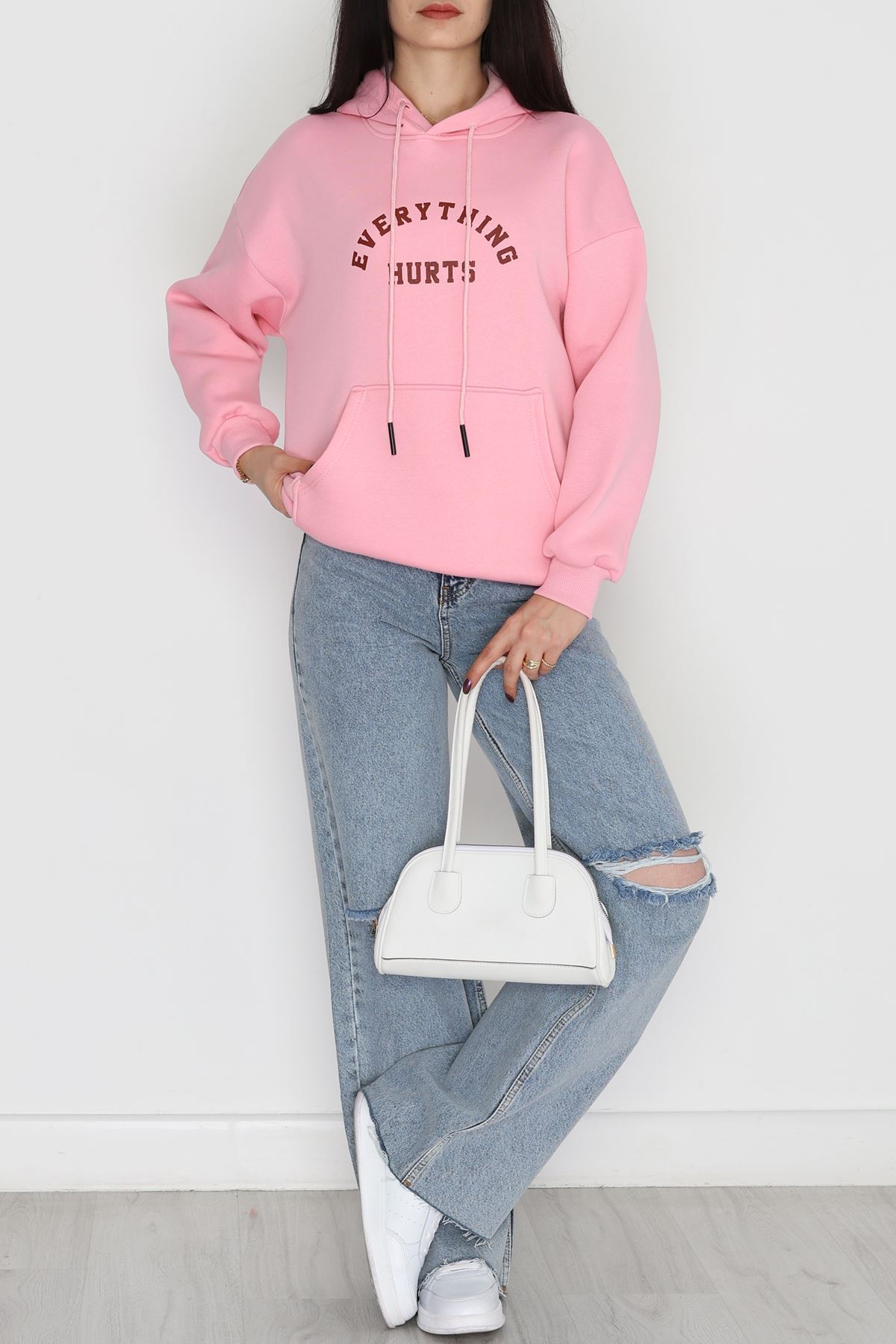 3 İplik Kanguru Cepli Kapşonlu Sweat Pembebordo - 42253.1878.
