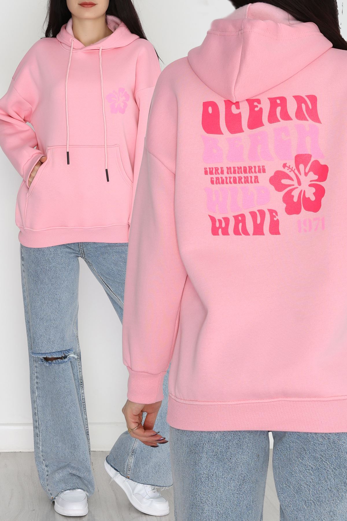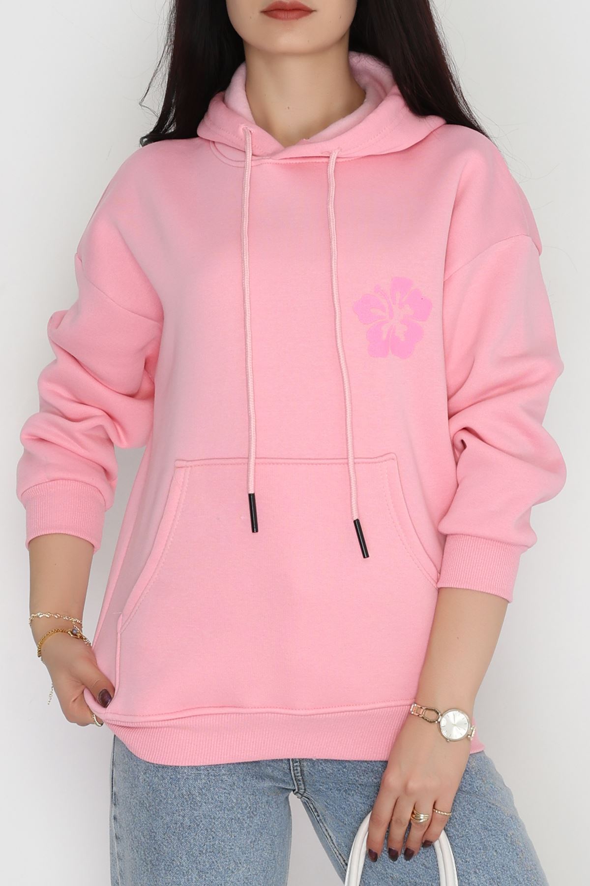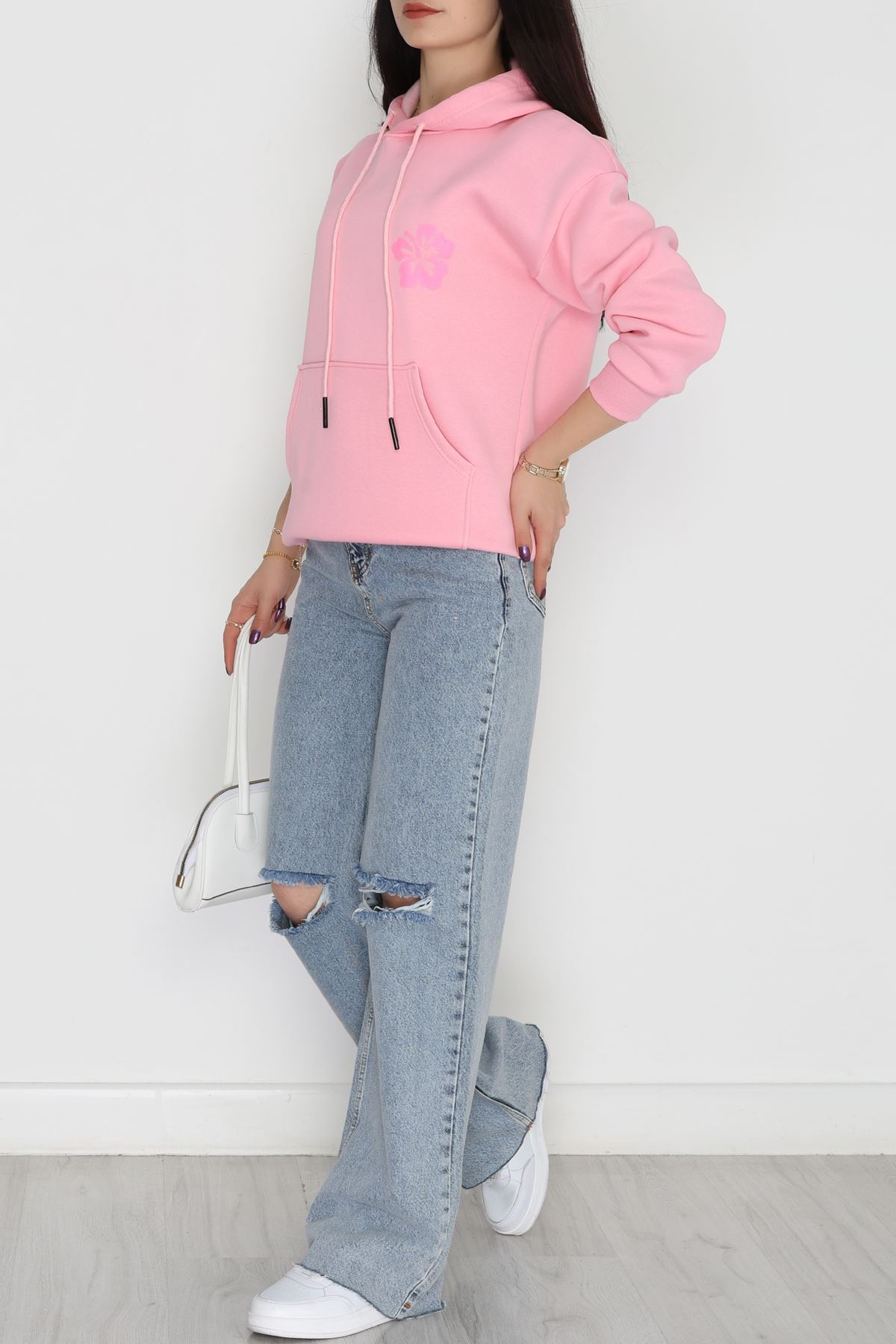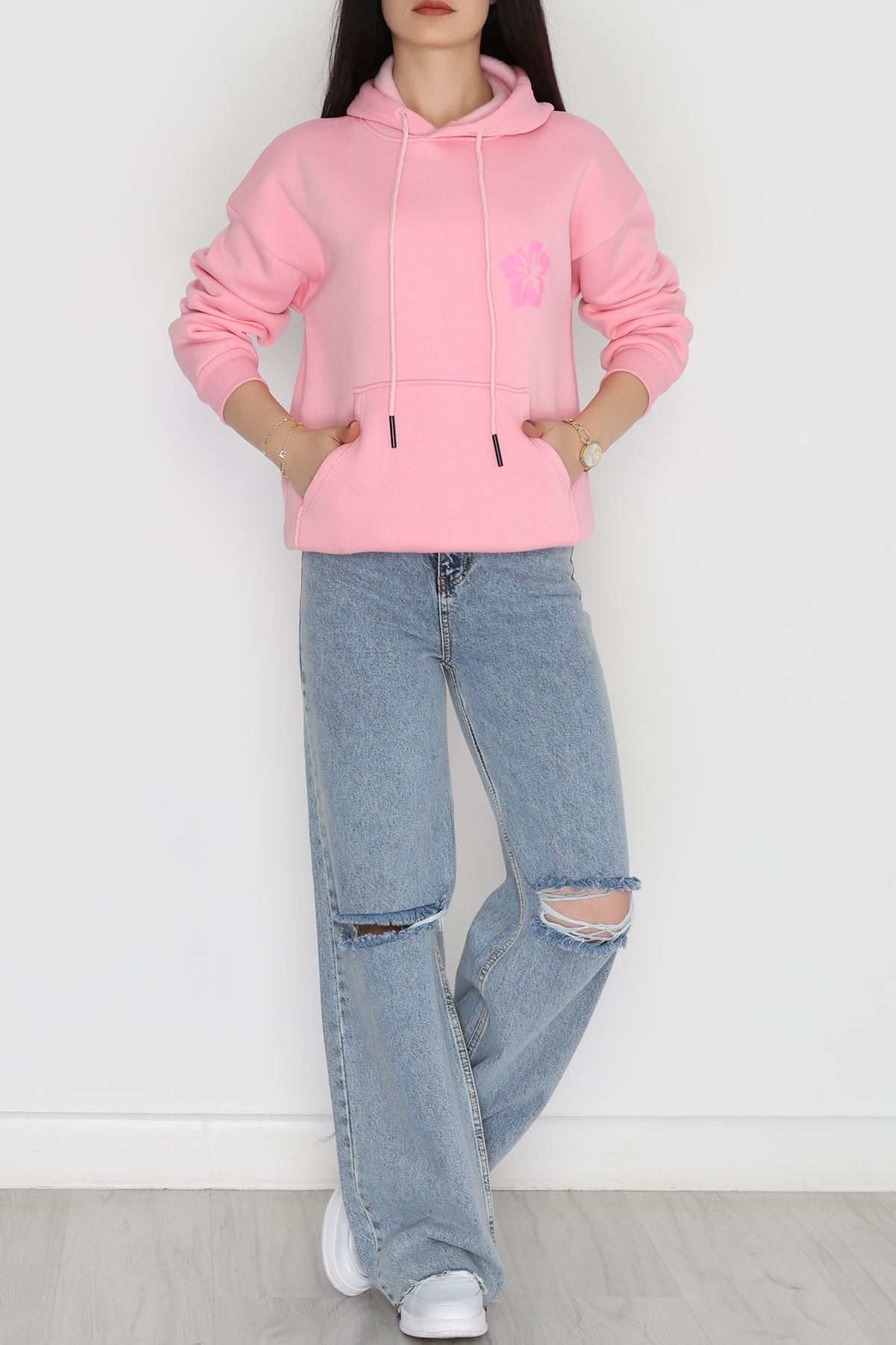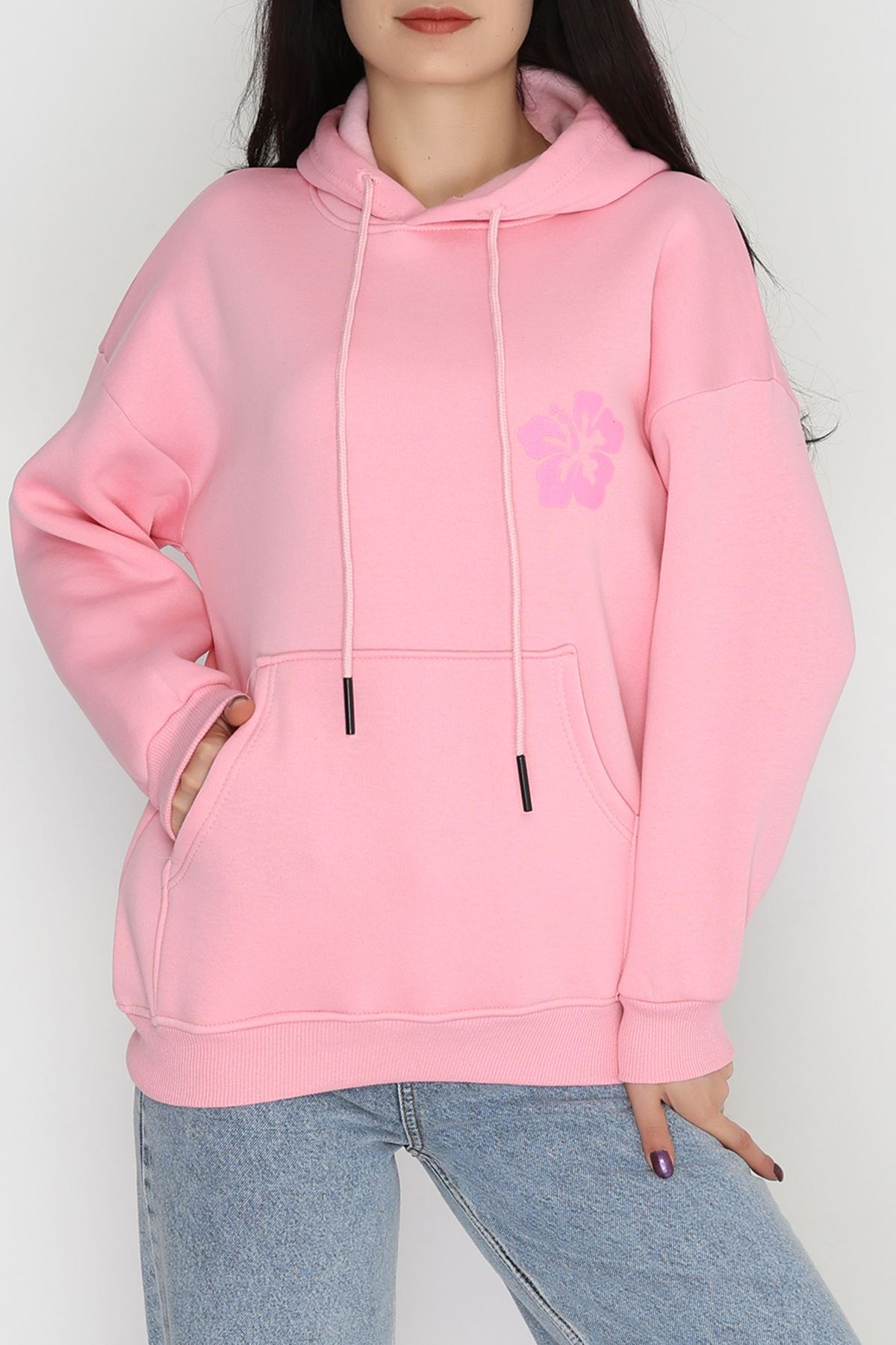 3 İplik Kanguru Cepli Kapşonlu Sweat Pembekoyupembe - 42247.1878.