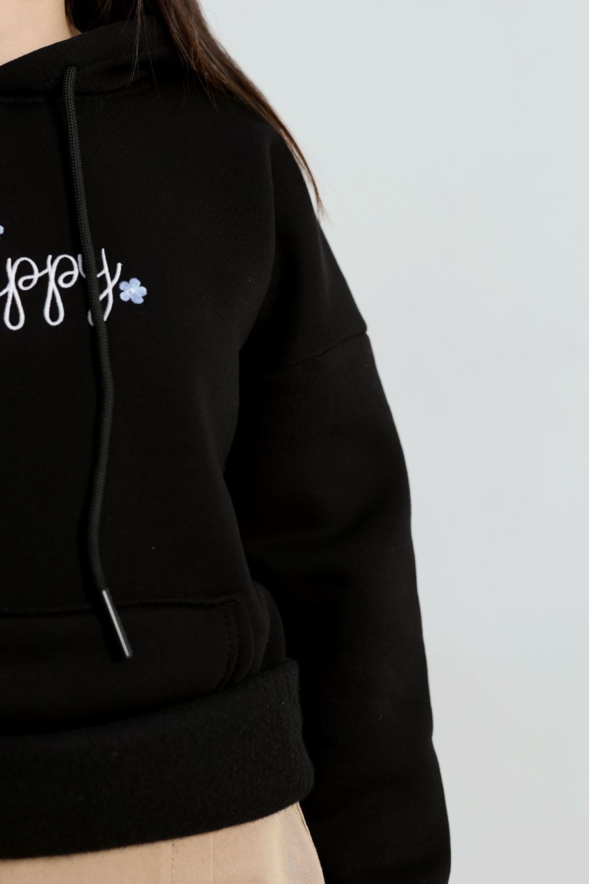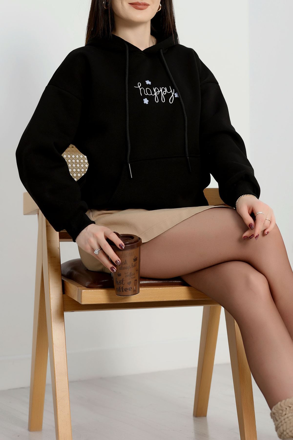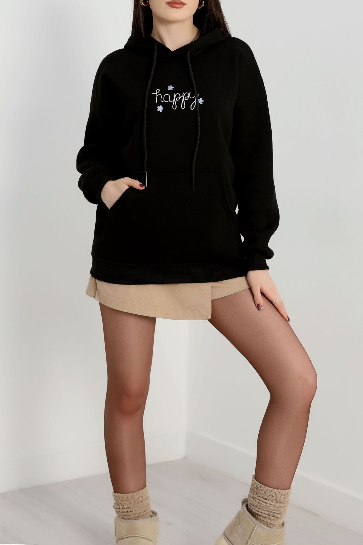 3 İplik Kanguru Cepli Kapşonlu Sweat Siyah - 42250.1878.