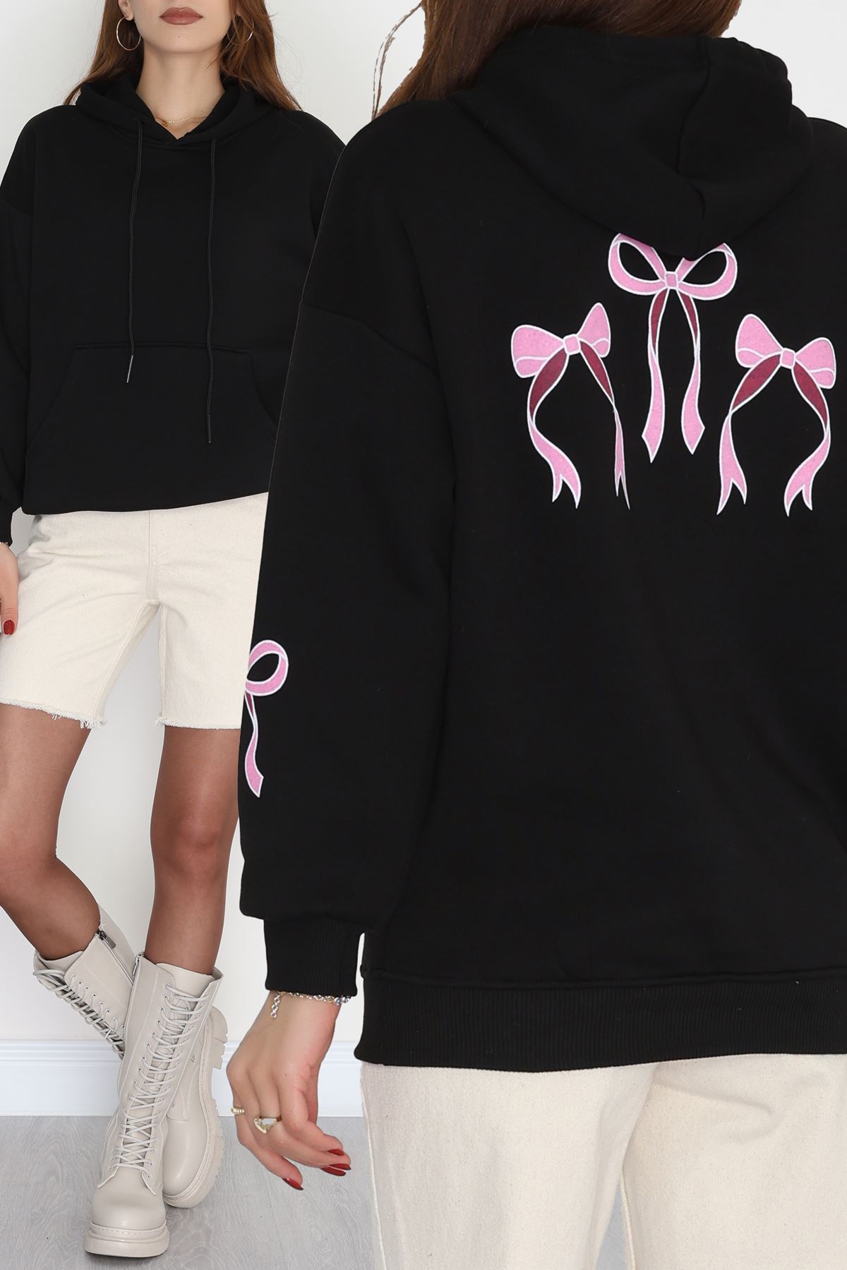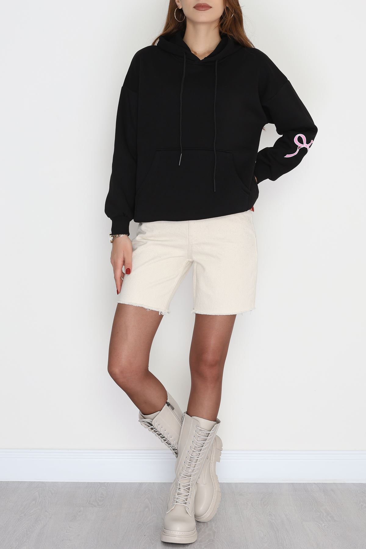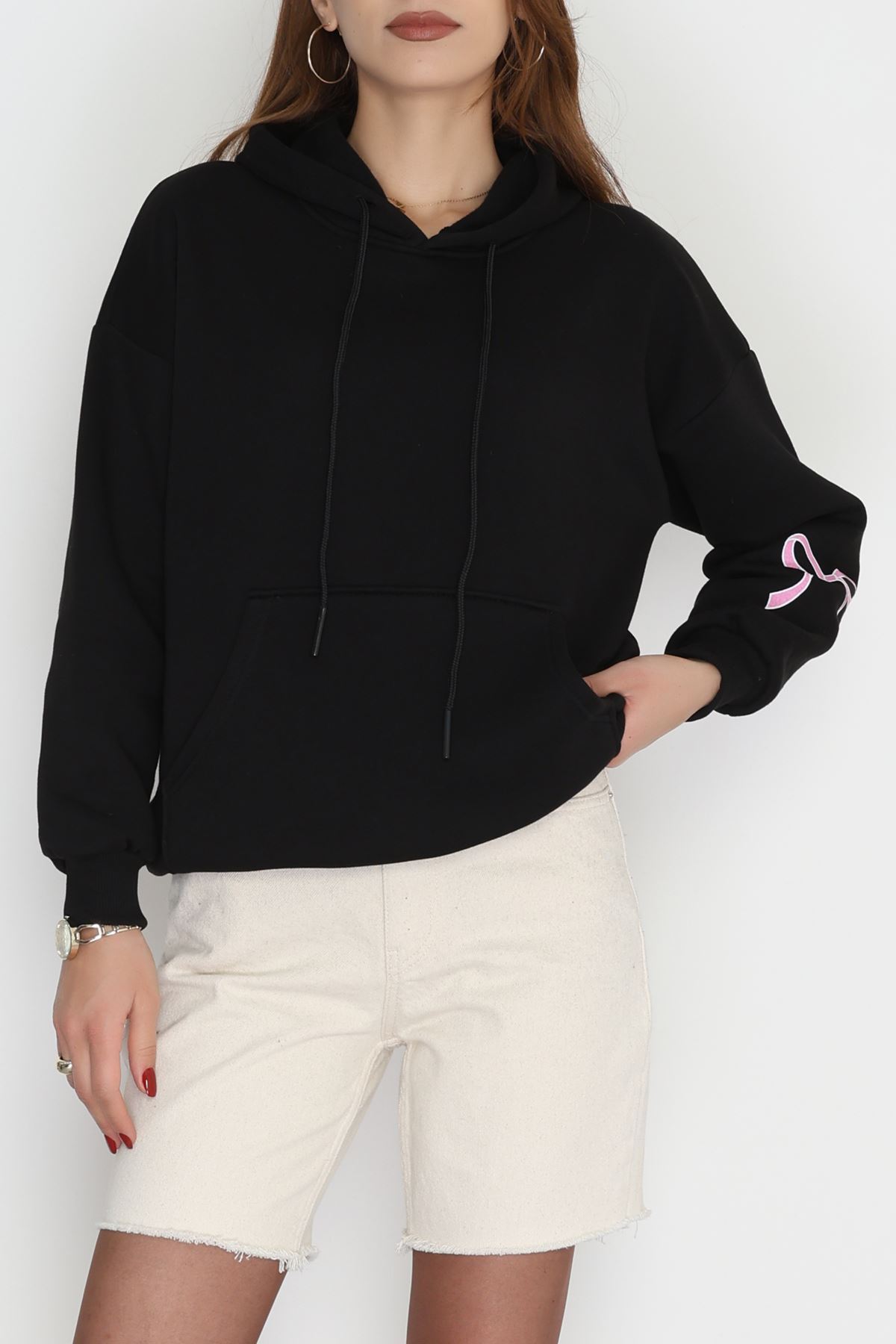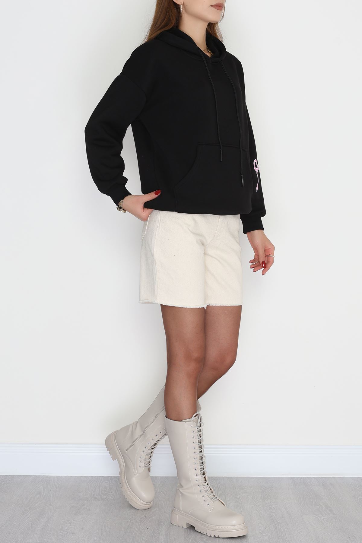 3 İplik Kanguru Cepli Kapşonlu Sweat Siyah - 42252.1878.
