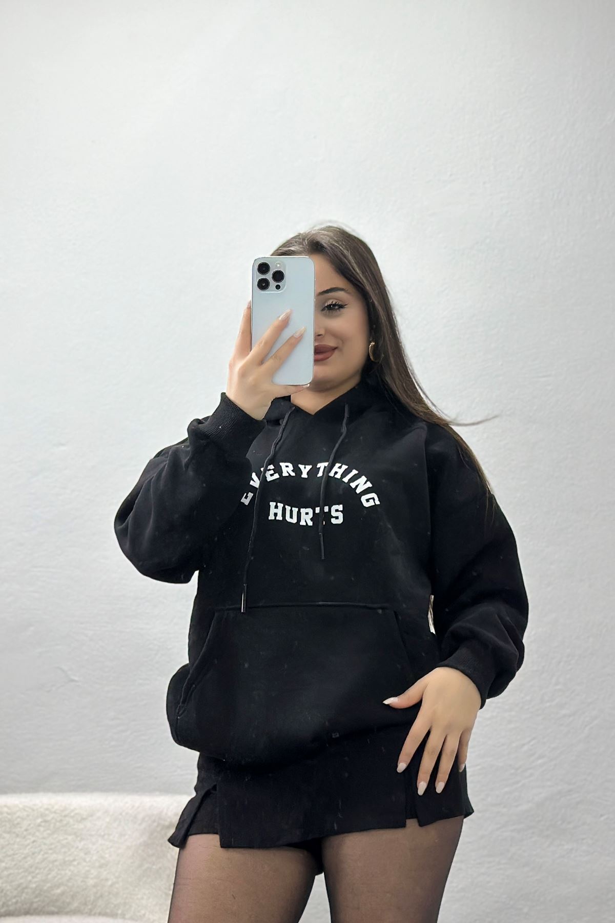 3 İplik Kanguru Cepli Kapşonlu Sweat Siyahbeyaz - 42253.1878.