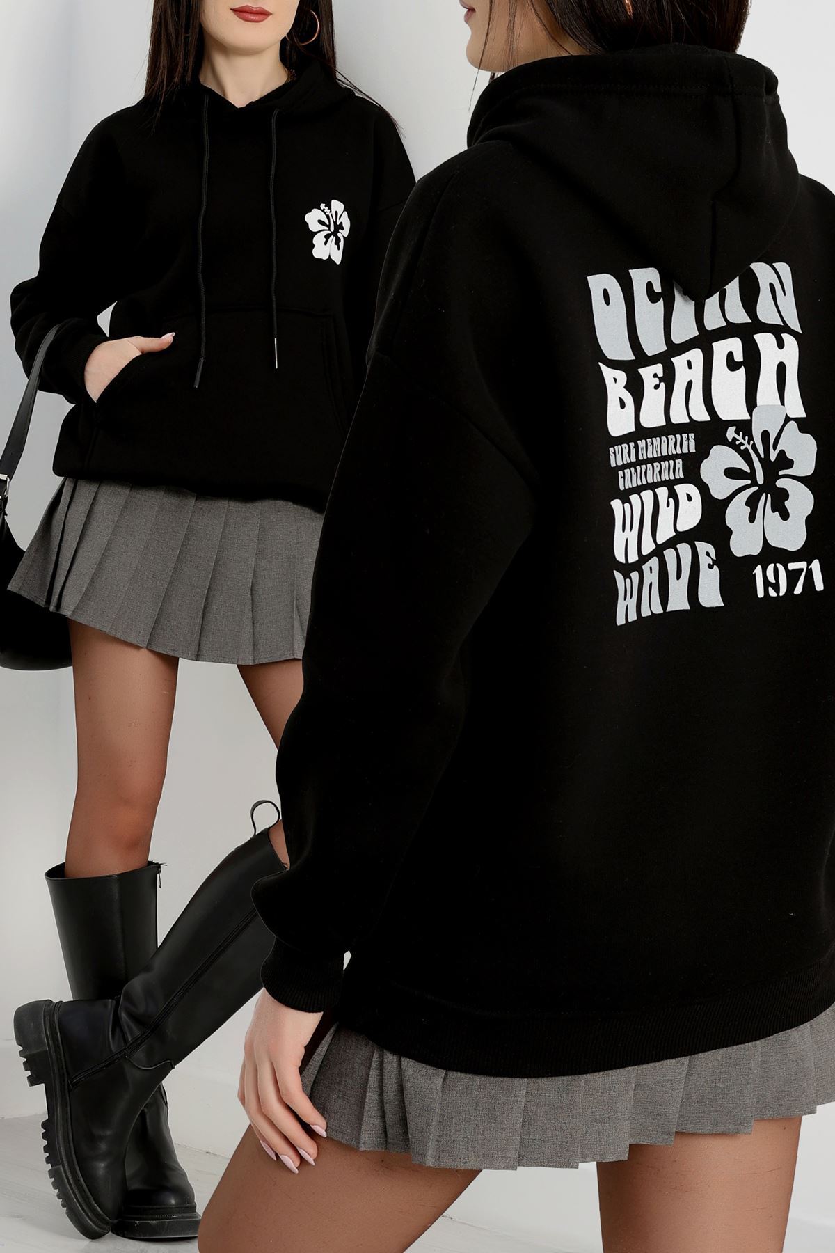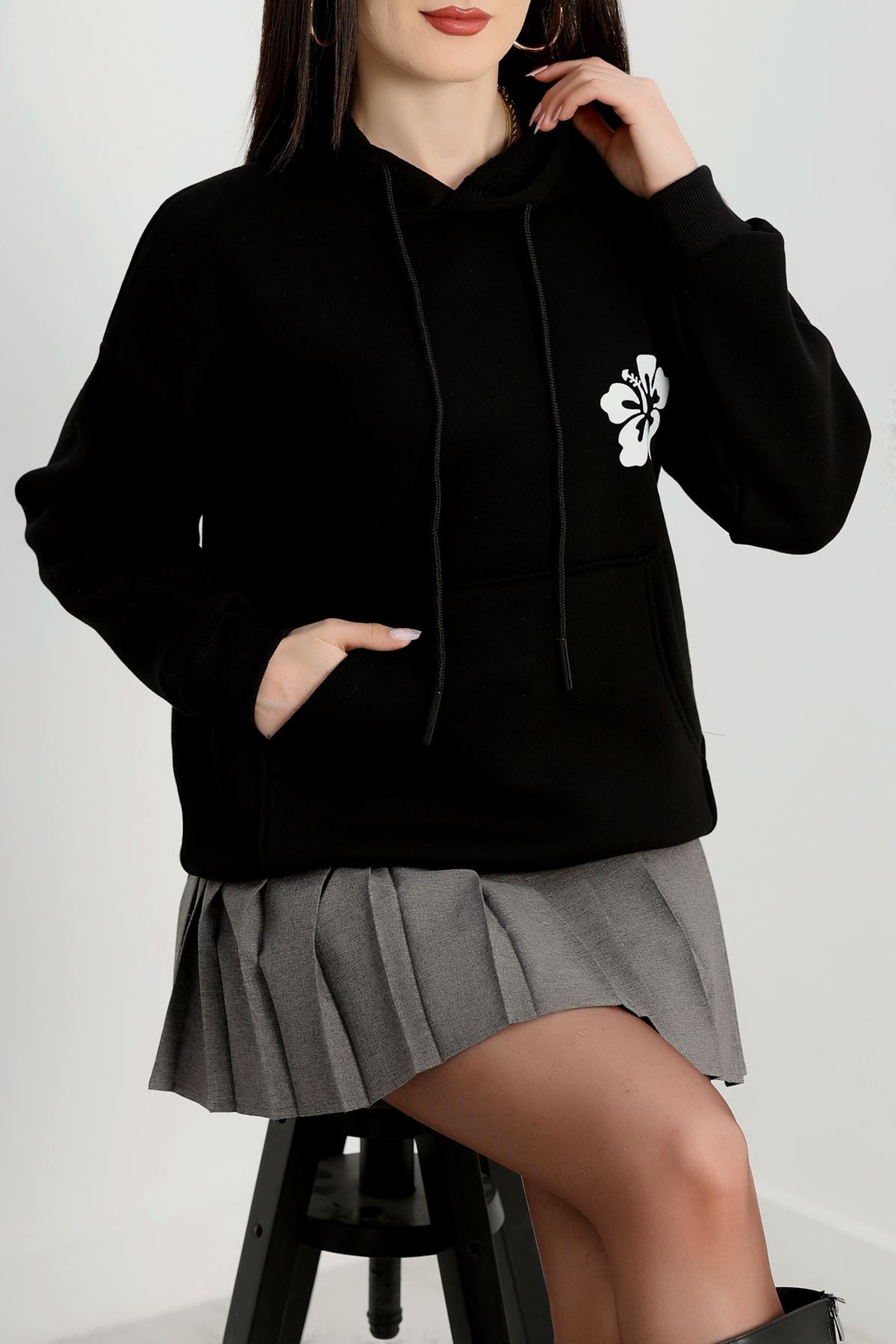 3 İplik Baskılı Sweat Siyah - 42244.1878.