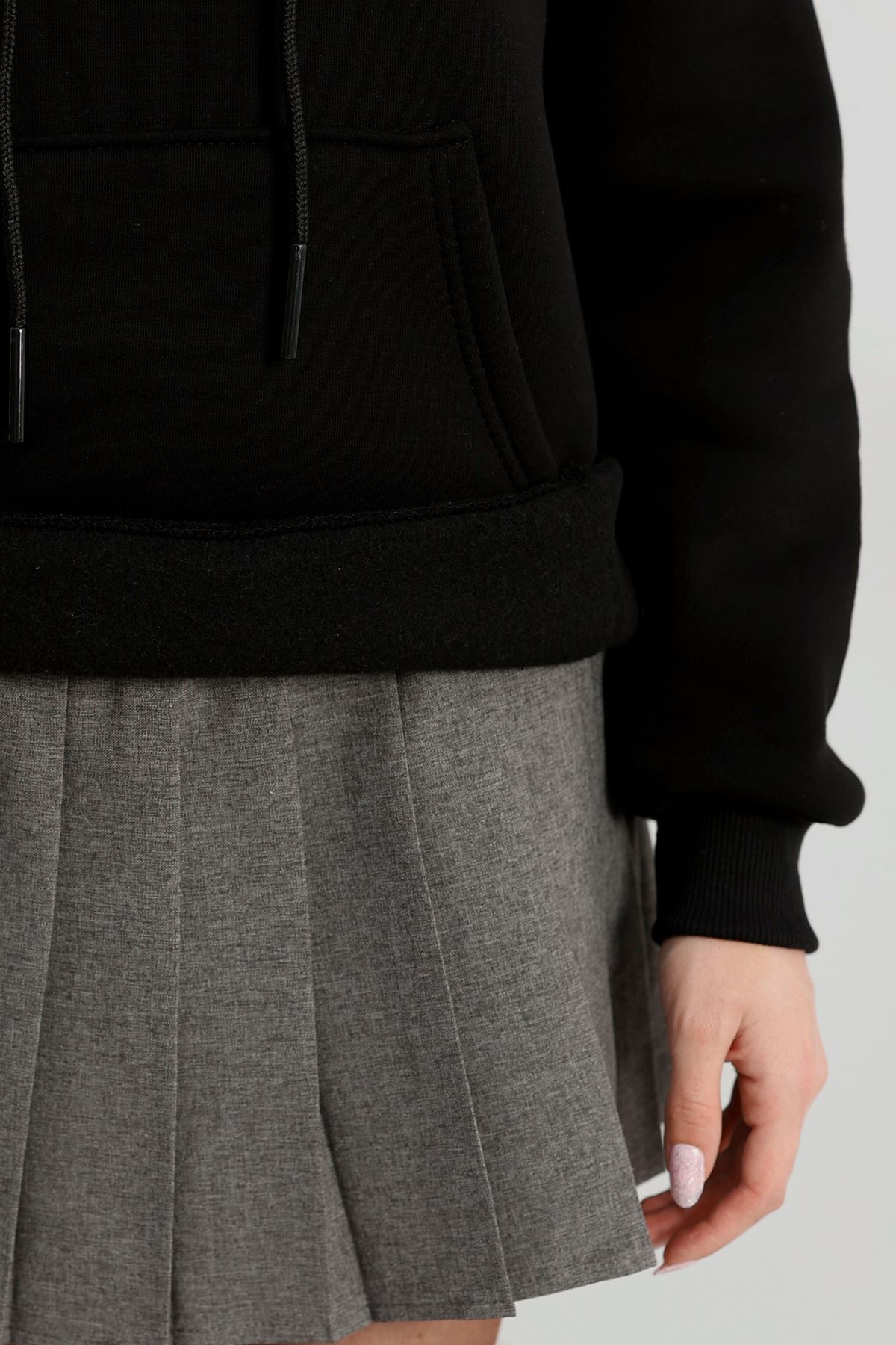 3 İplik Kanguru Cepli Kapşonlu Sweat Siyahekru - 42247.1878.