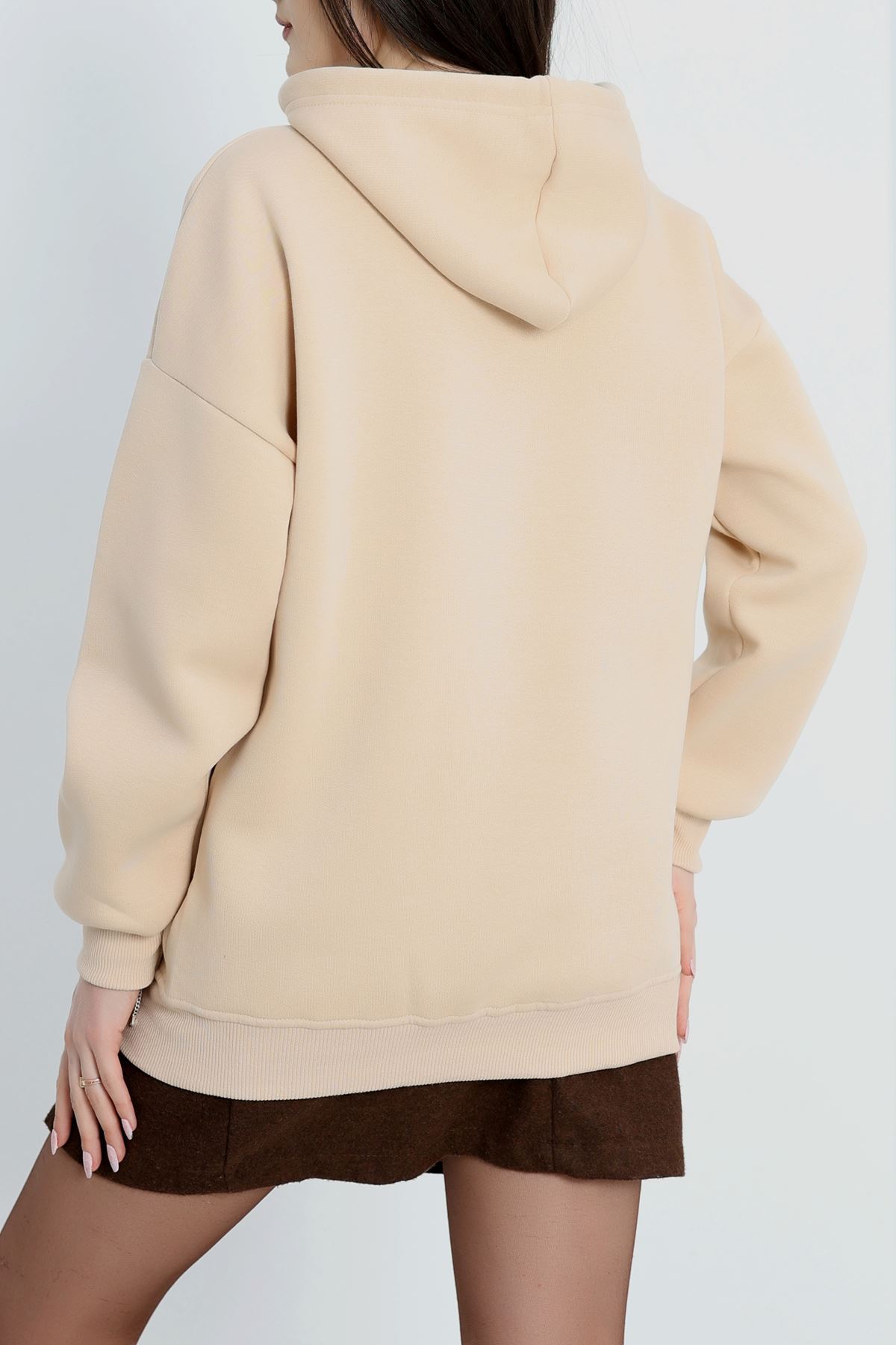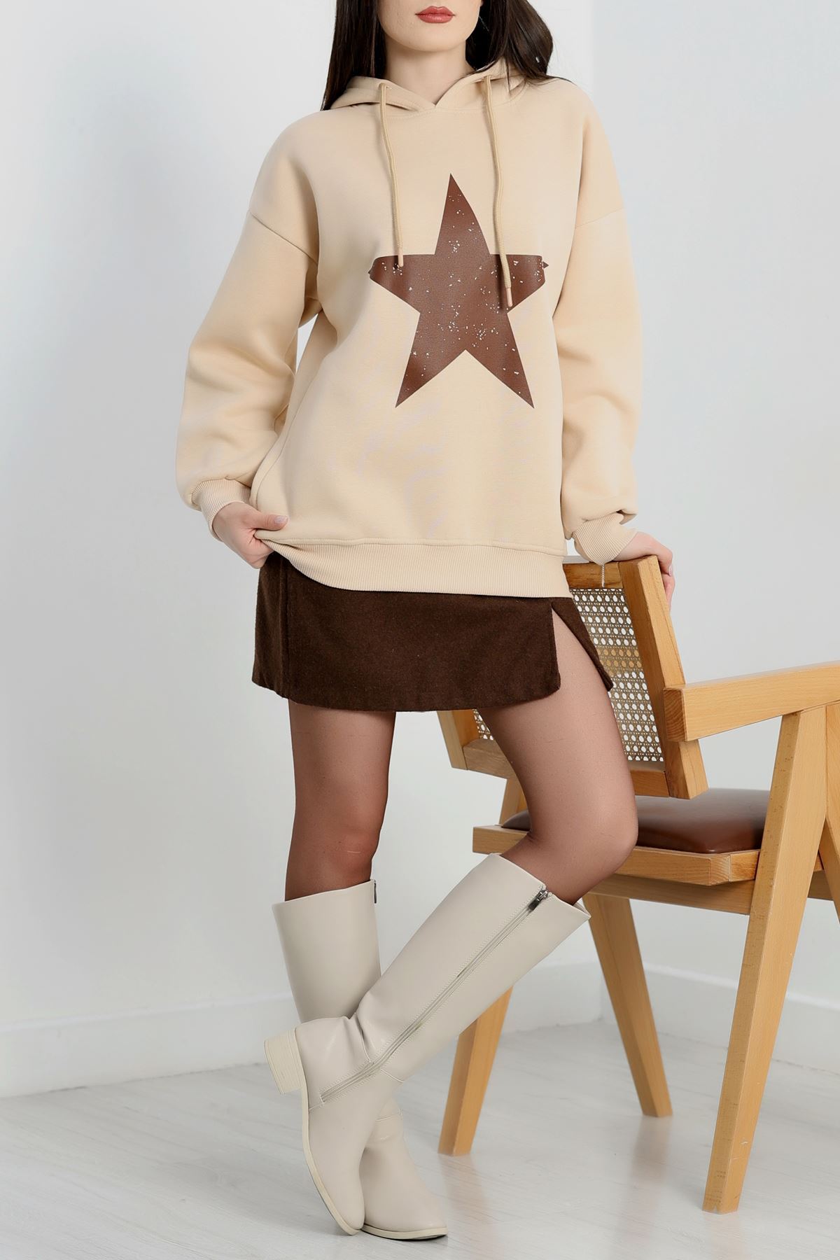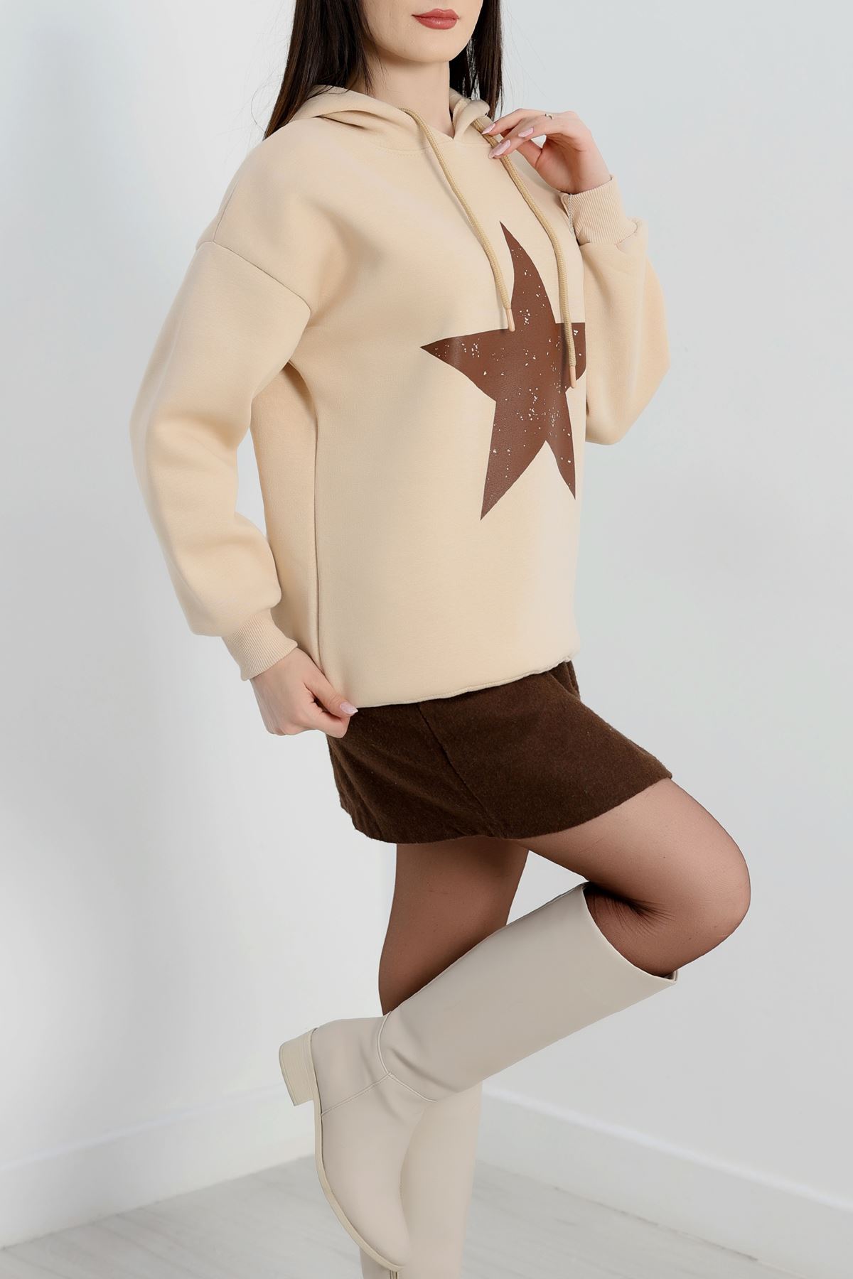 3 İplik Kapşonlu Baskılı Sweat Bejkahve - 42225.1878.
