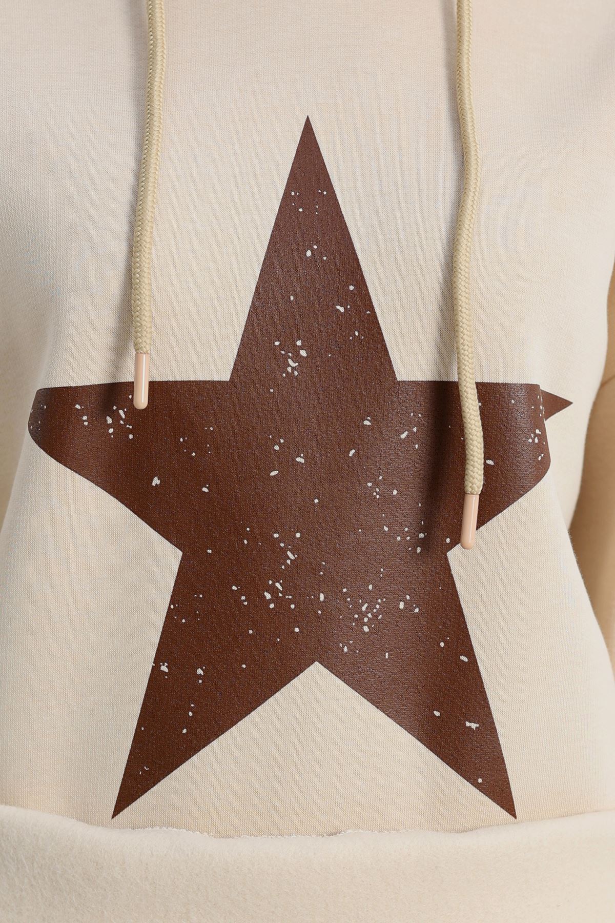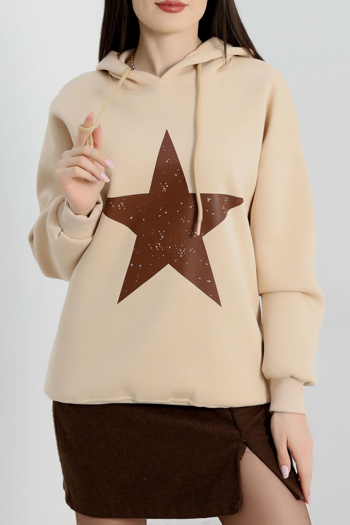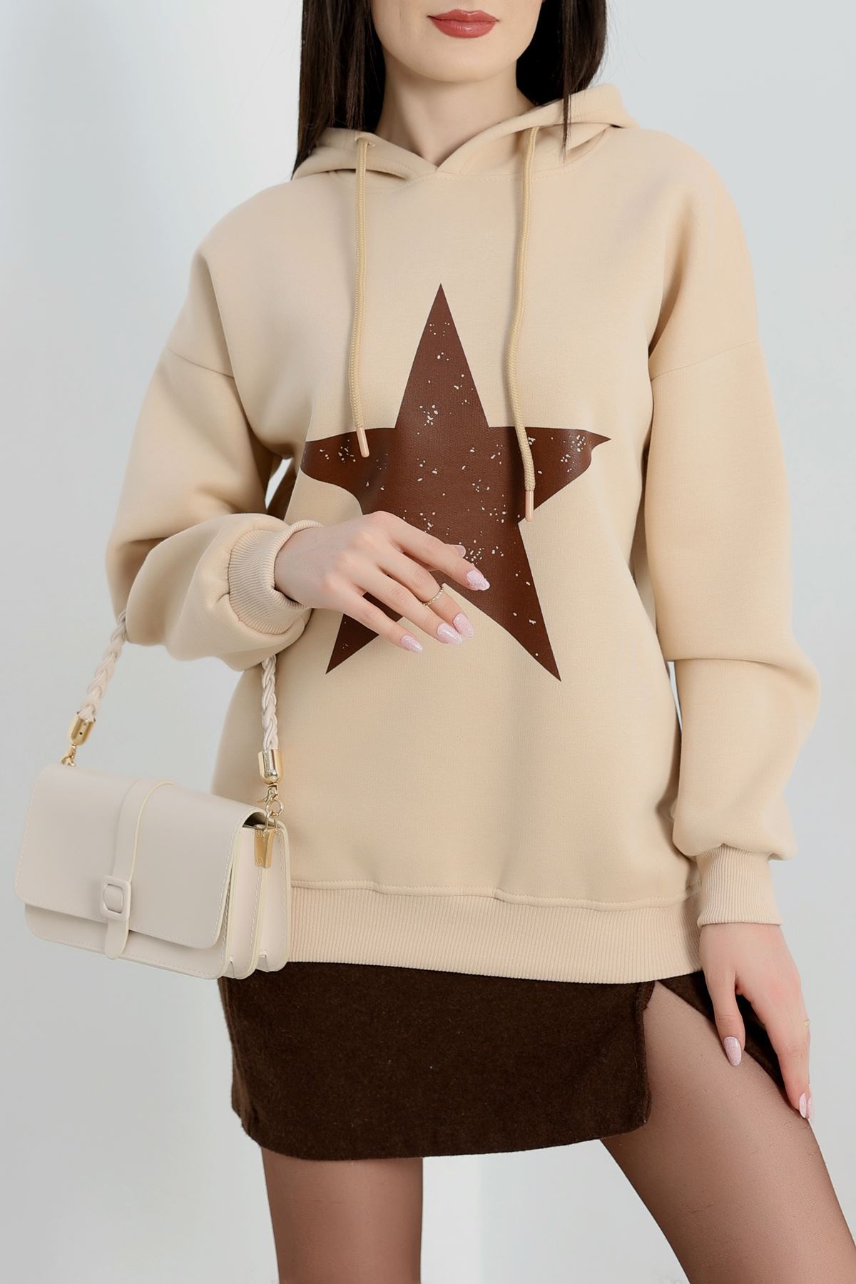 3 İplik Kapşonlu Baskılı Sweat Bejkahve - 42225.1878.